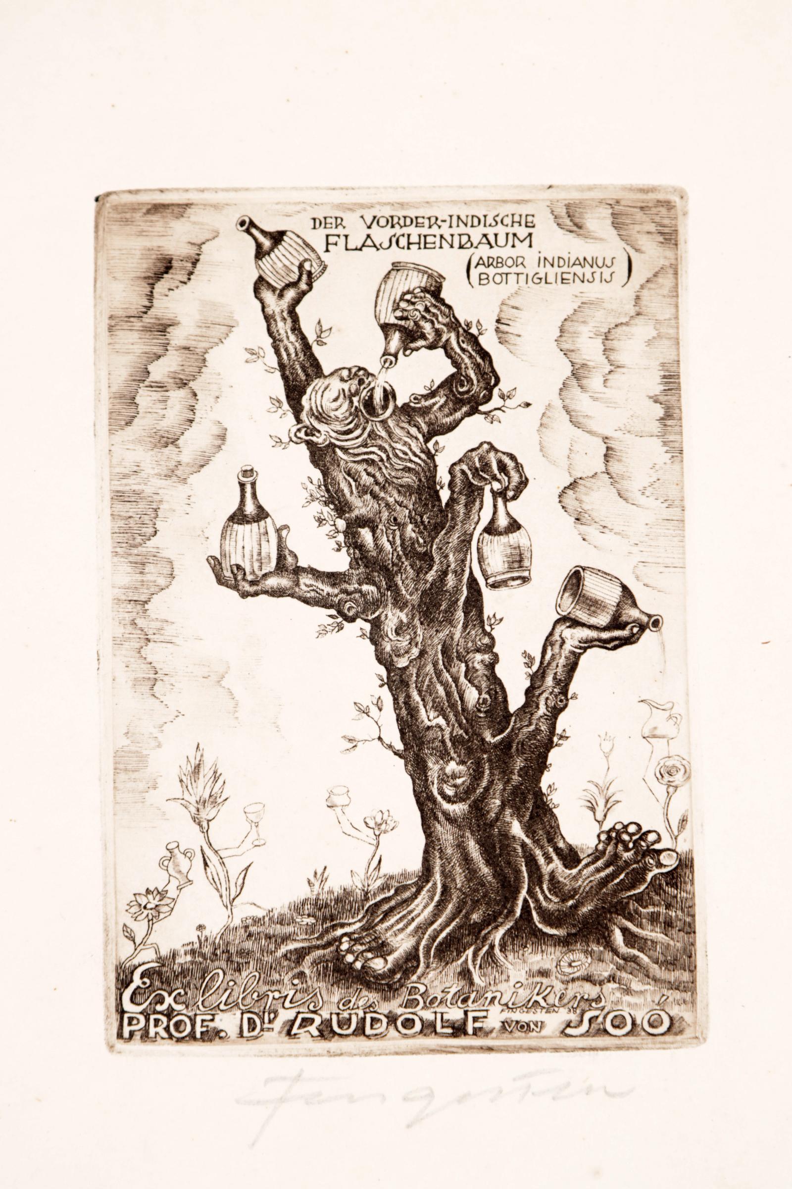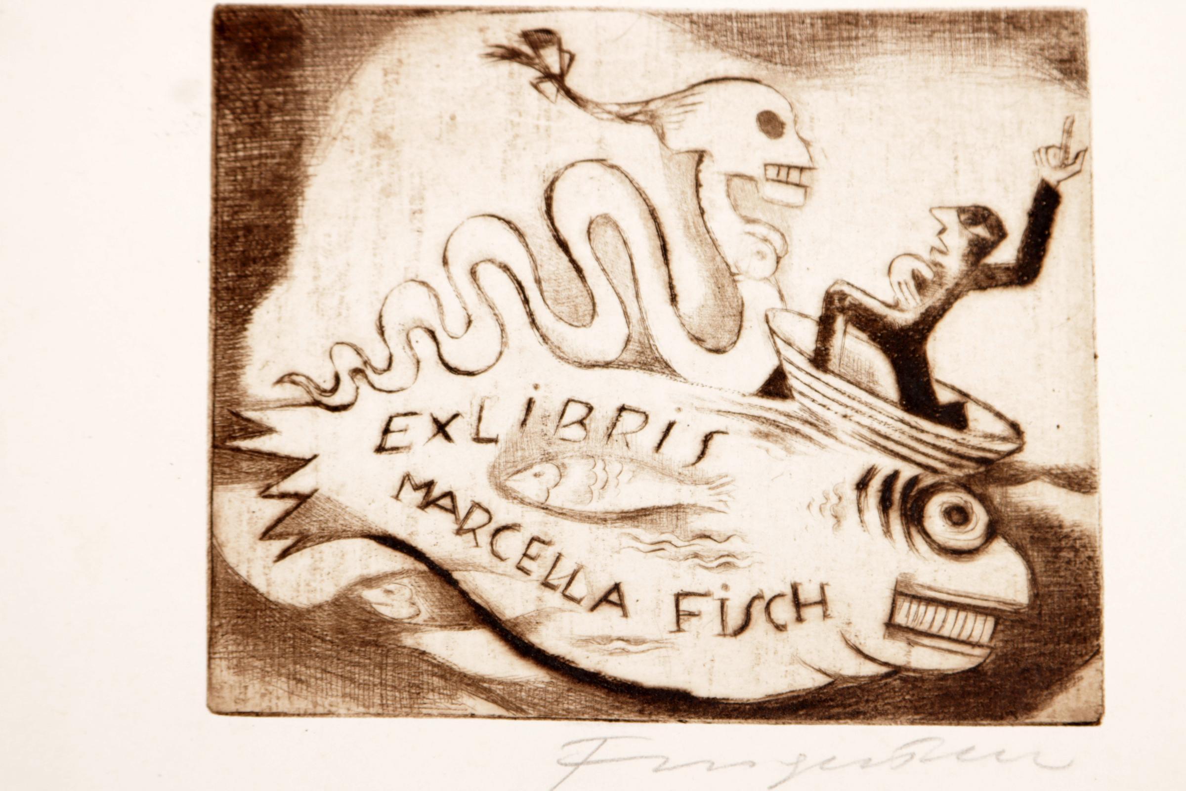 Fingesten, M, 3 exlibris (Kurt Diettrich (erotisch), Marcella Fisch, prof Rudolf von Soo), C3, gesigneerd, opgeplakt (geweest)