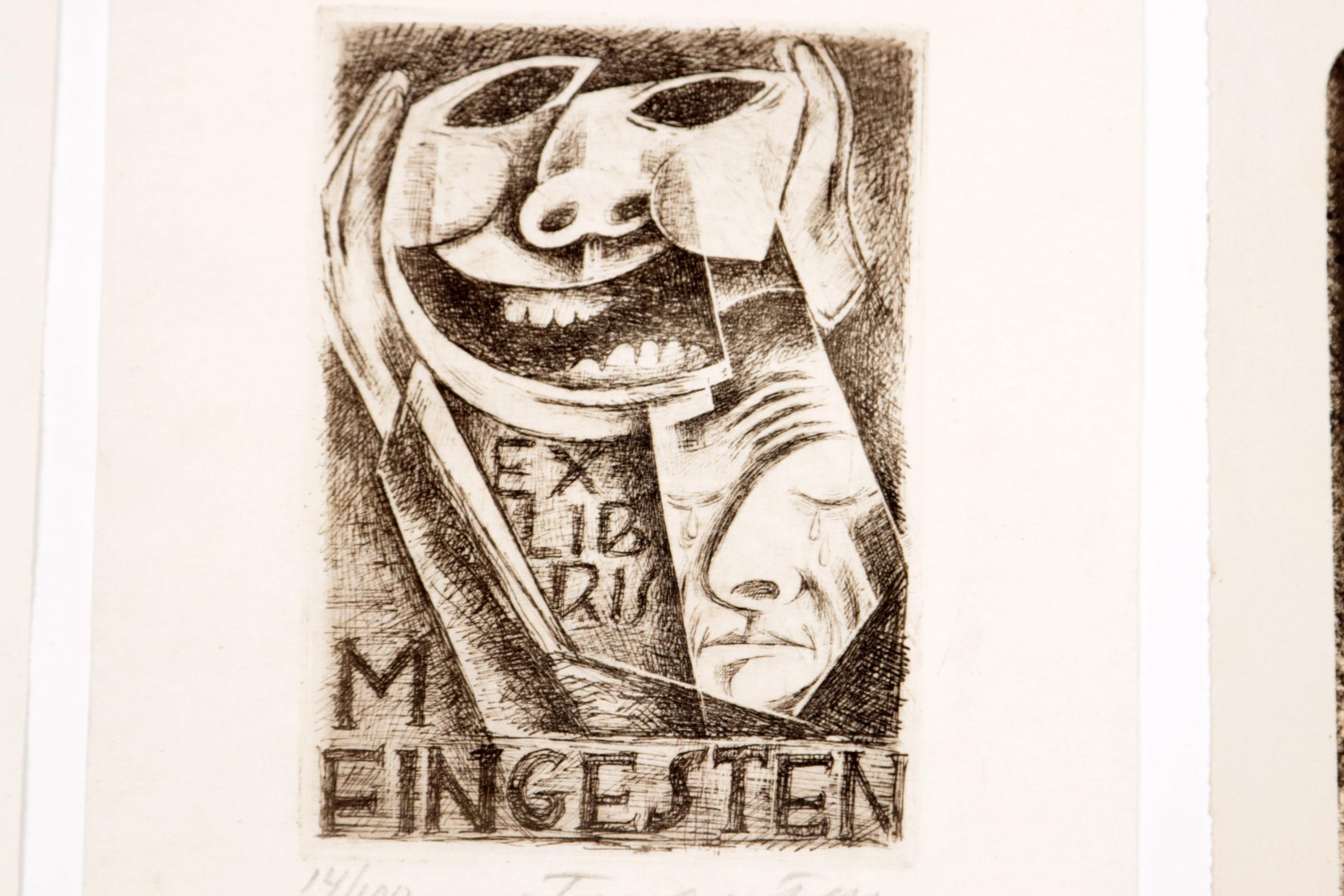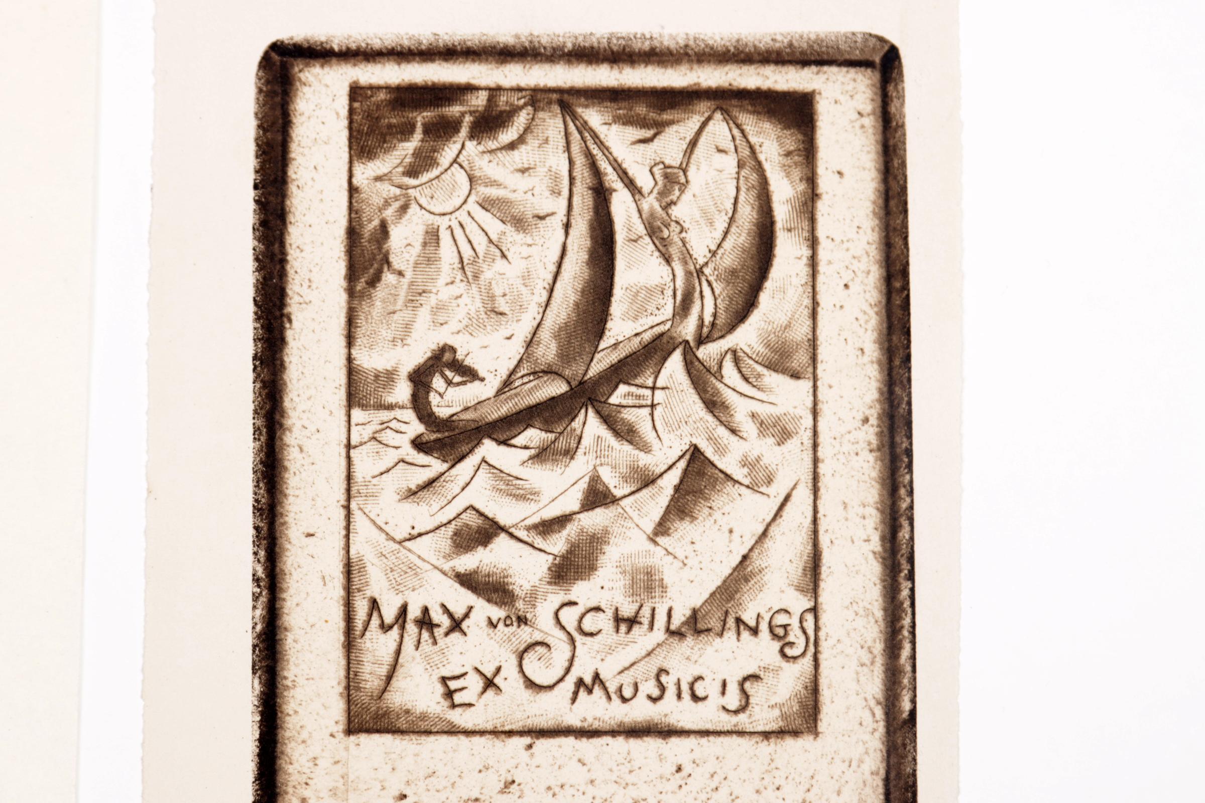 Fingesten, M, 3 exlibris (Mantero, Max von Schilling, M. Fingesten), C3, gesigneerd, opgeplakt (geweest)