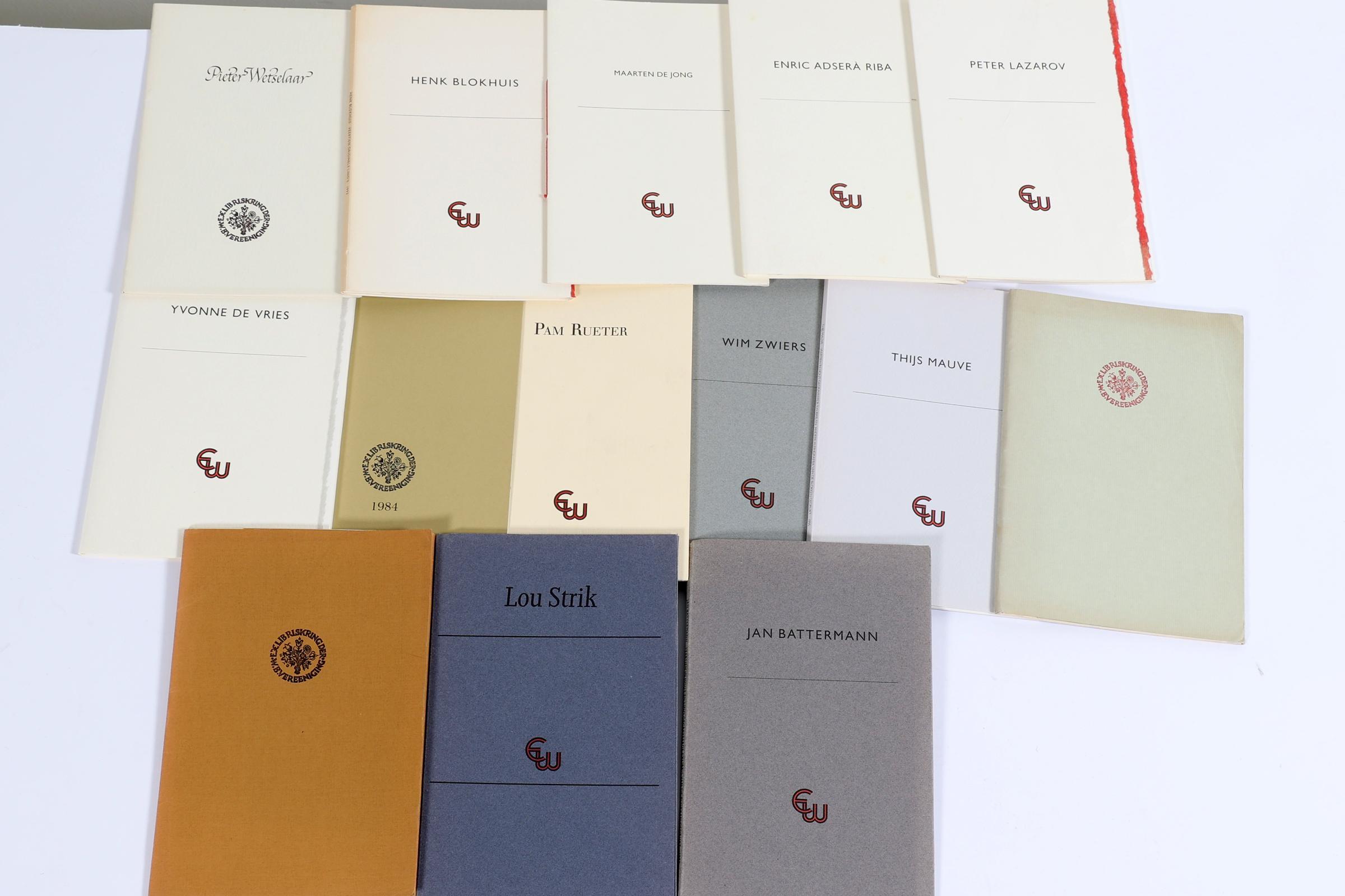 collectie van 14 jaarpremies van 'Exlibriswereld', alle met plm. 10 - 12 stuks originele grafiek, diverse technieken. O.a. Blokhuis, Maarten de Jong, Wetselaar, Yvonne de Vries, Rueter, Mauve, Zwiers, Adsera Riba.