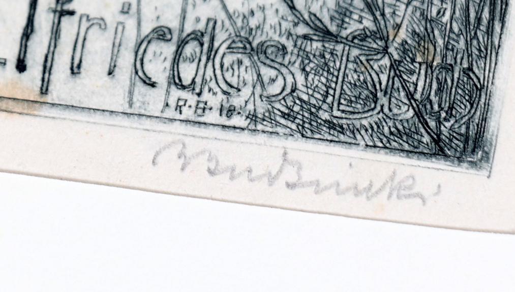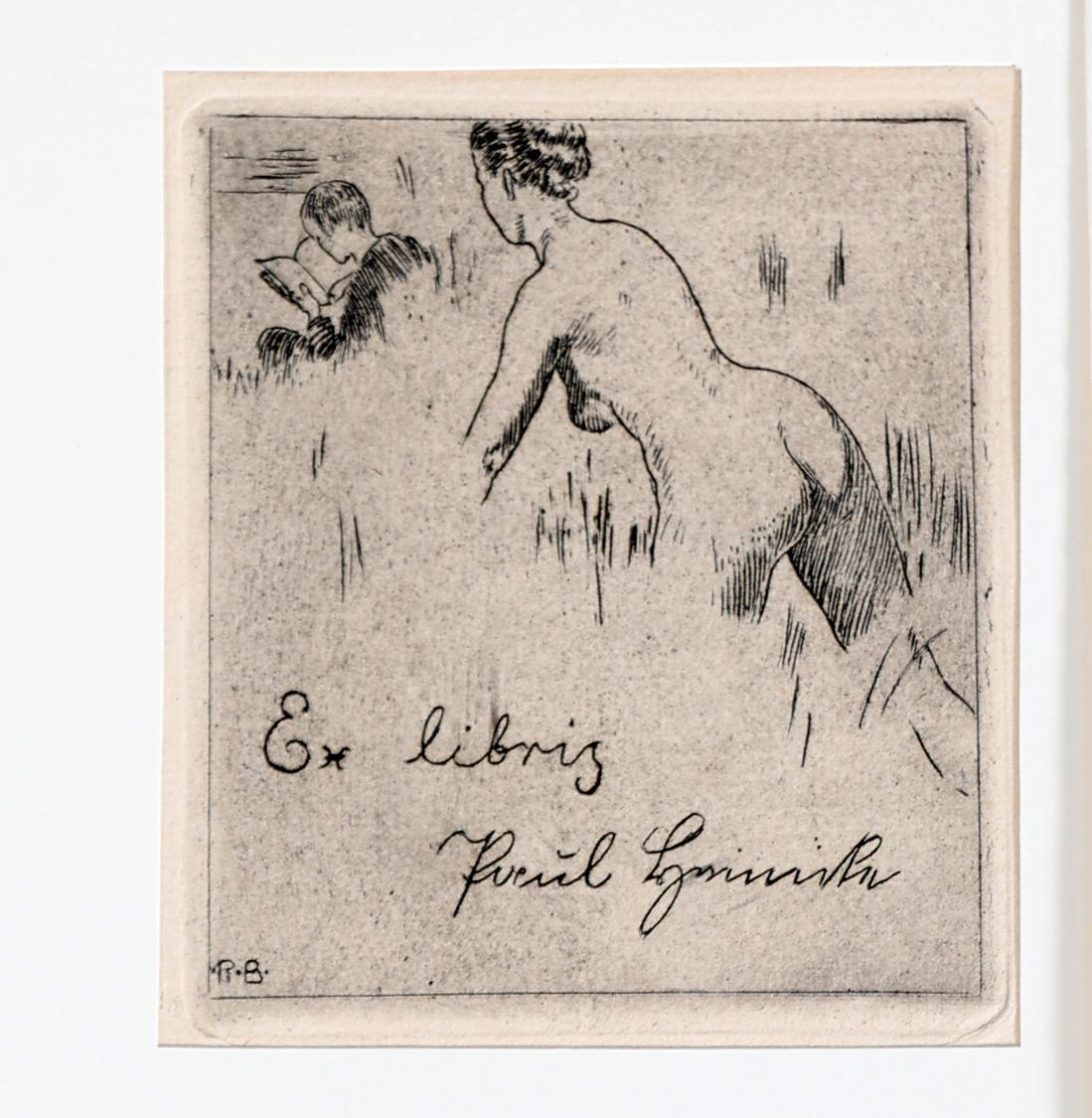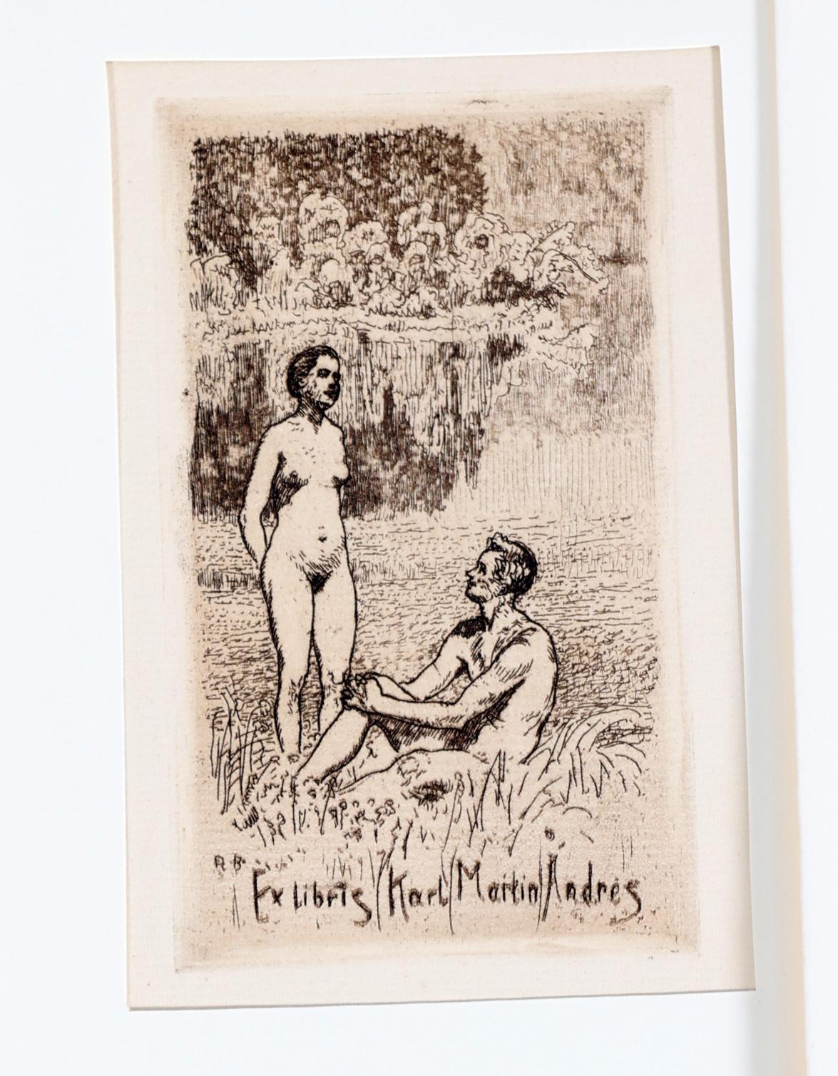 Budzinski, R., 13 exlibris (12 x C3, 1 x X3), 2 x gesigneerd, opgeplakt / in passe-partouts. Voor o.a. Hasse, Andres, Elfriede, Heinike, Lenze, Heeren.