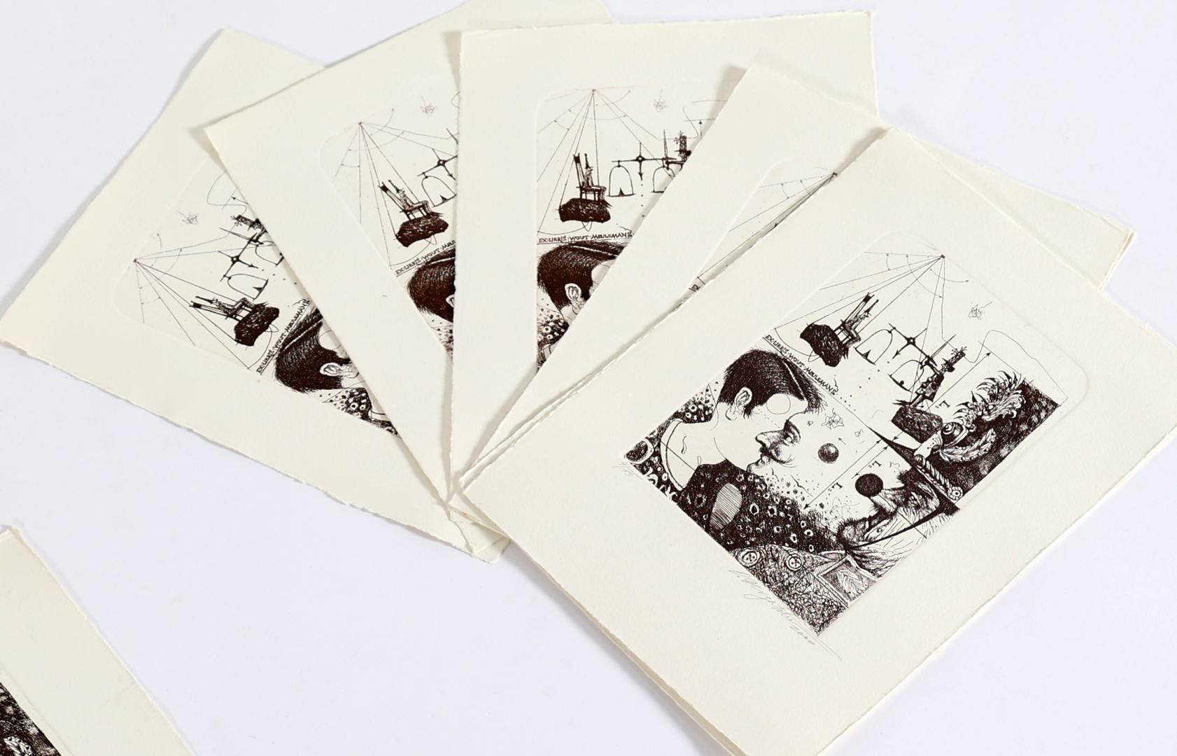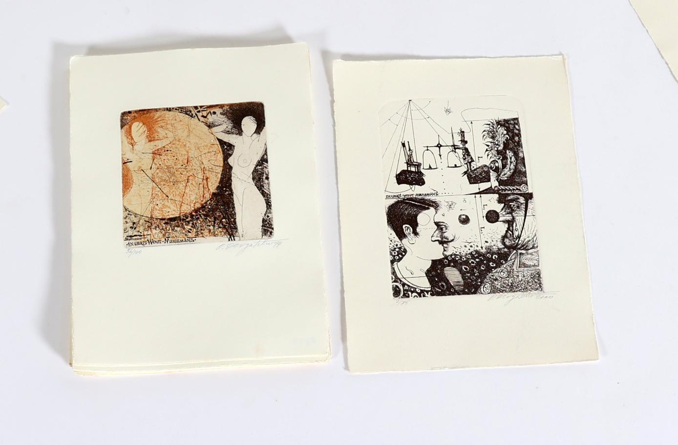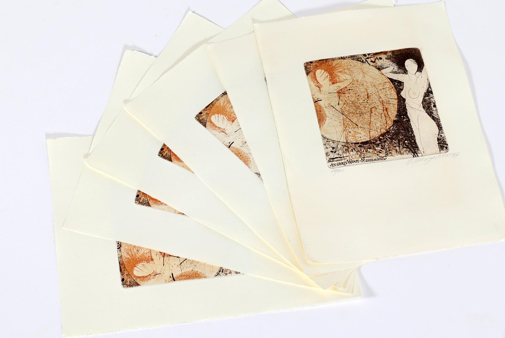 Dergachov, O., 2 exlibris voor Meulemans (1999 - Phryne, 2000 - evenwicht), C3, genummerd en gesigneerd, plm. 45 stuks (restoplagen)