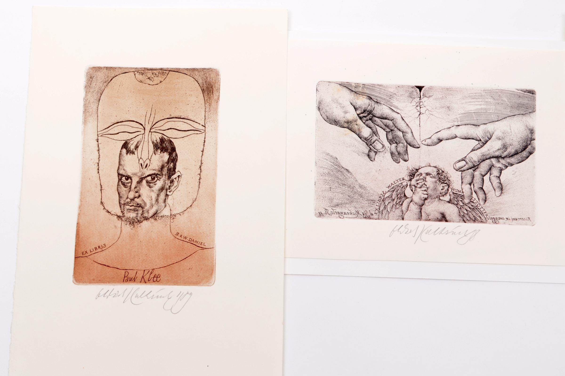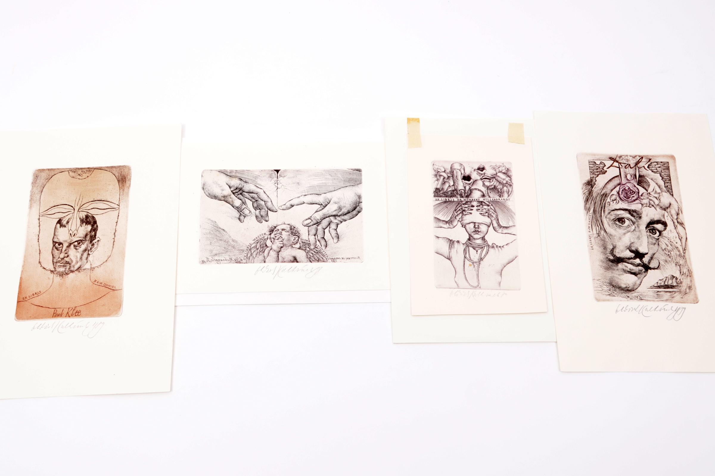 Kulhanek, Oldrich, 4 exlibris, C3, gesigneerd. Voor Daniel (Dali), Daniel (Klee), Hillerbrandt (opgeplakt), Humplstotter (opgeplakt)