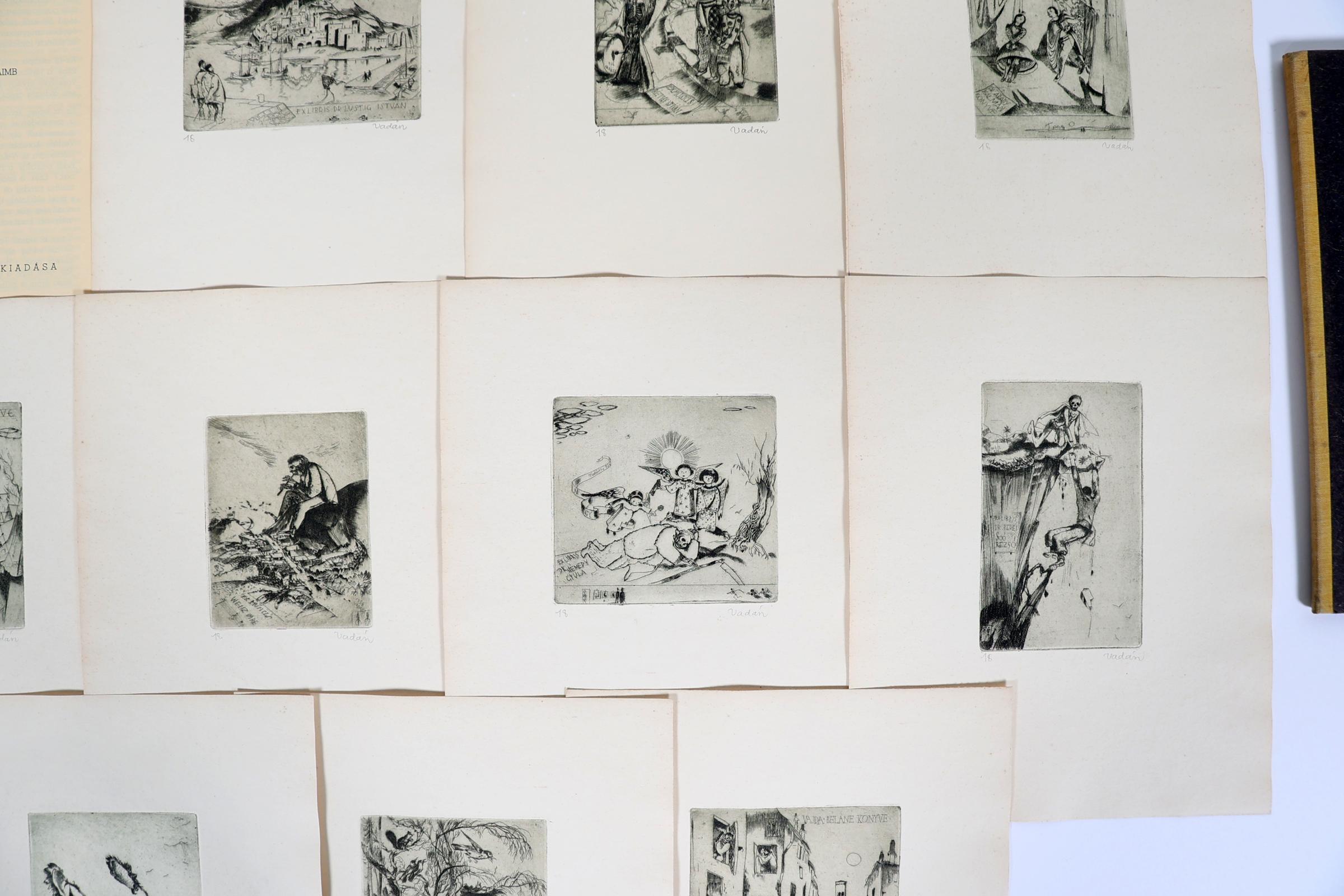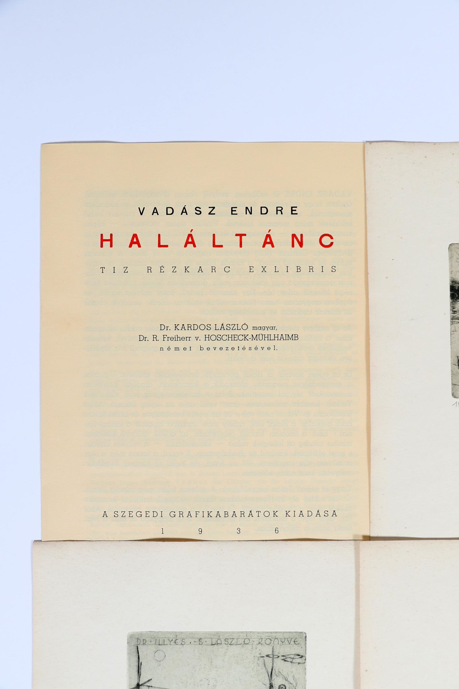 Vadasz, E.,'Halaltanc', 1936, A Szegedi Grafikabaratok Kiadasa, map met 10 etsen (dodendans), alle genummerd en gesigneerd, tekst o.a. in Duits. Etiket gevouwen geweest.
