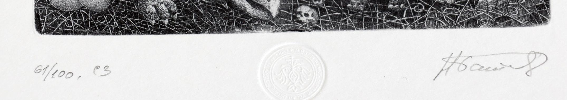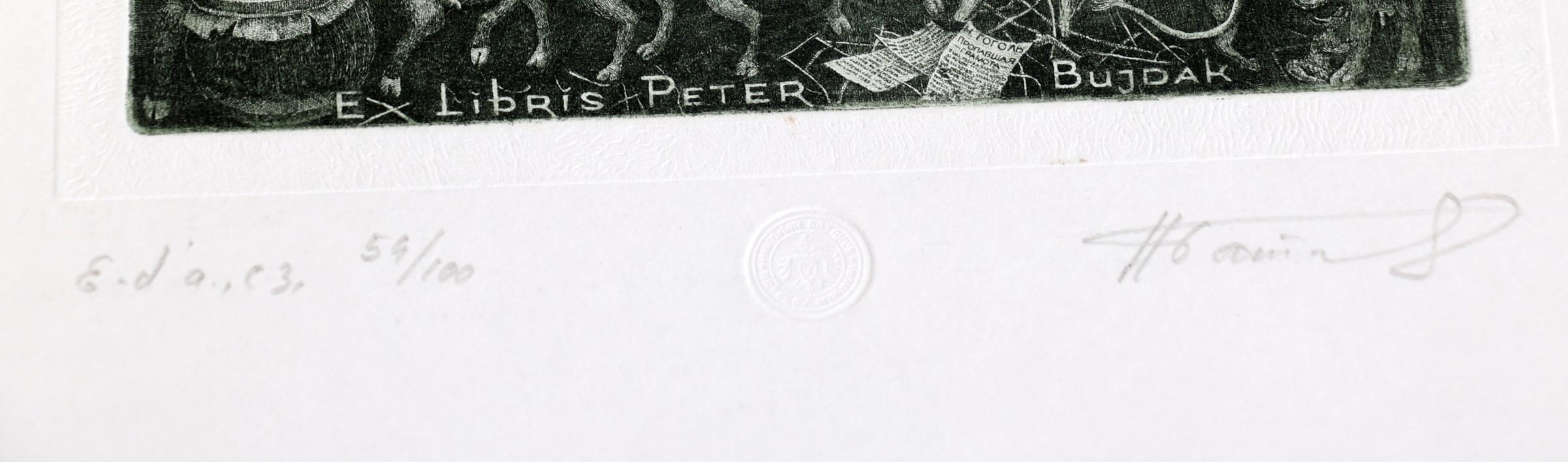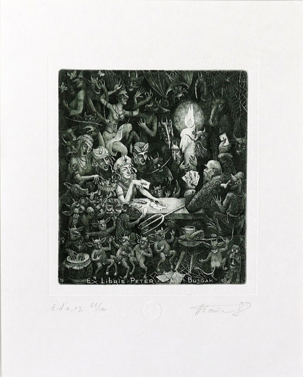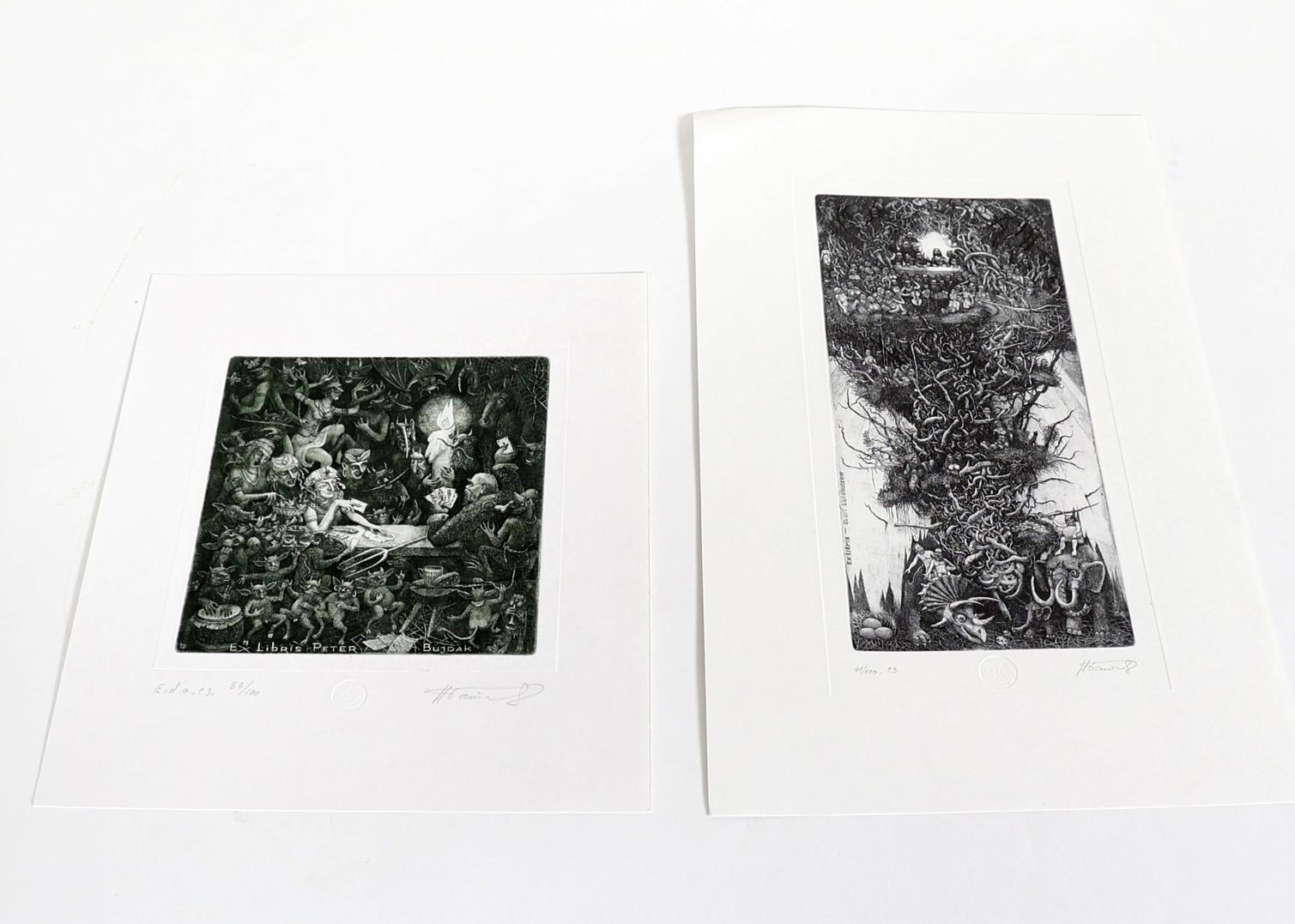 Batakov, N., 2 exlibris, (1. E.Veldhuizen, C3, 223x103 mm, genummerd en gesigneerd, 'tree of life'), 2. Peter Bujdak, 135x130 mm, C3, genummerd en gesigneerd, 'heksensabbath')