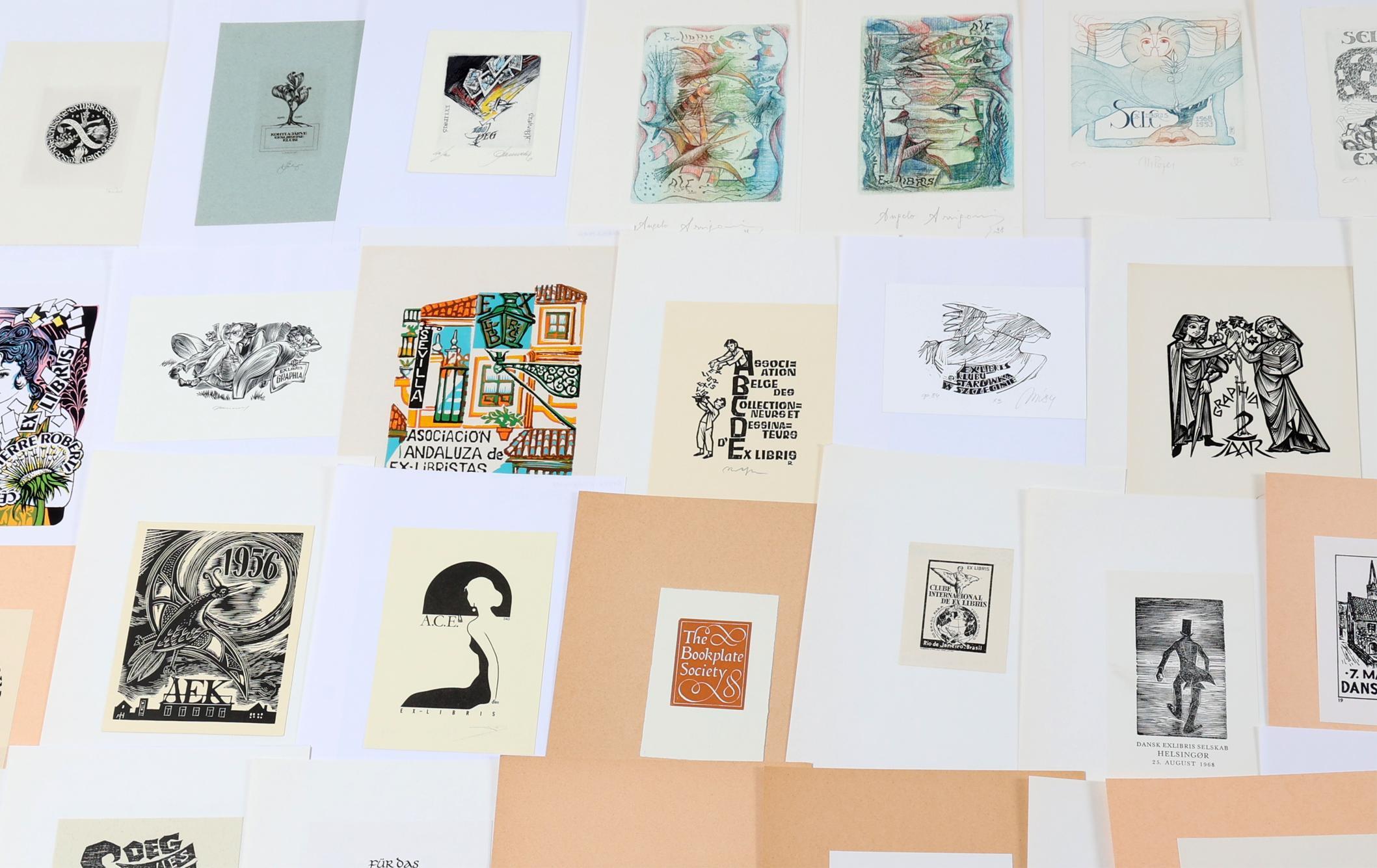 collectie van plm. 60 exlibris, thema: verenigingen / clubs. Plm. 50 x hoogdruk / vlakdruk, rest diepdruk.