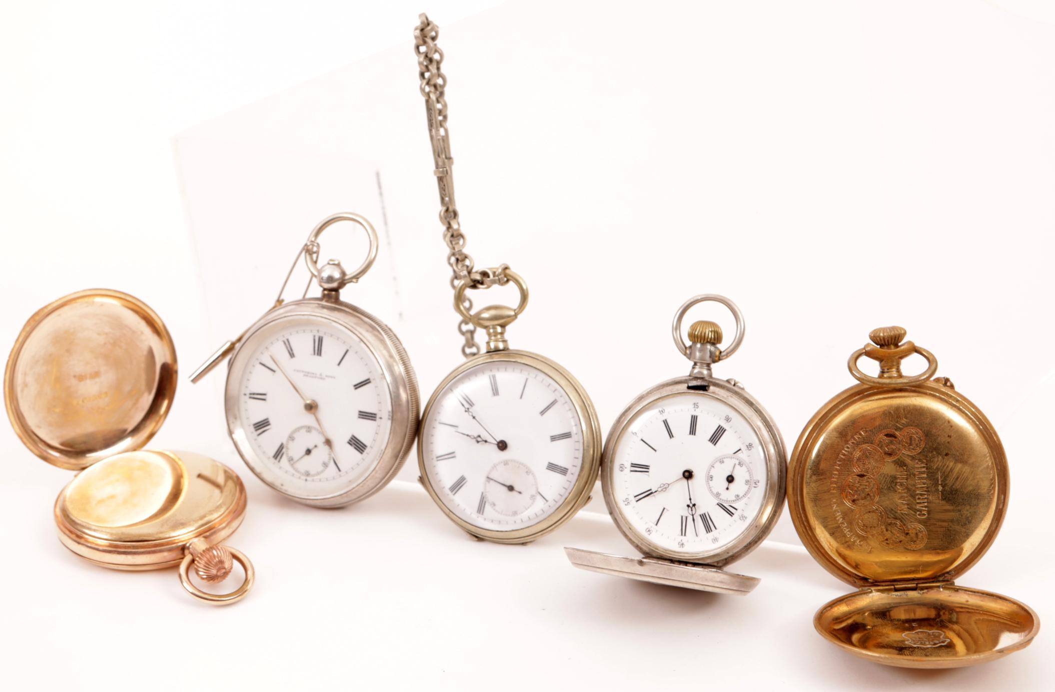 Koop met vijf diverse vintage zakhorloges, w.o. Fattorini & Sons Bradford.