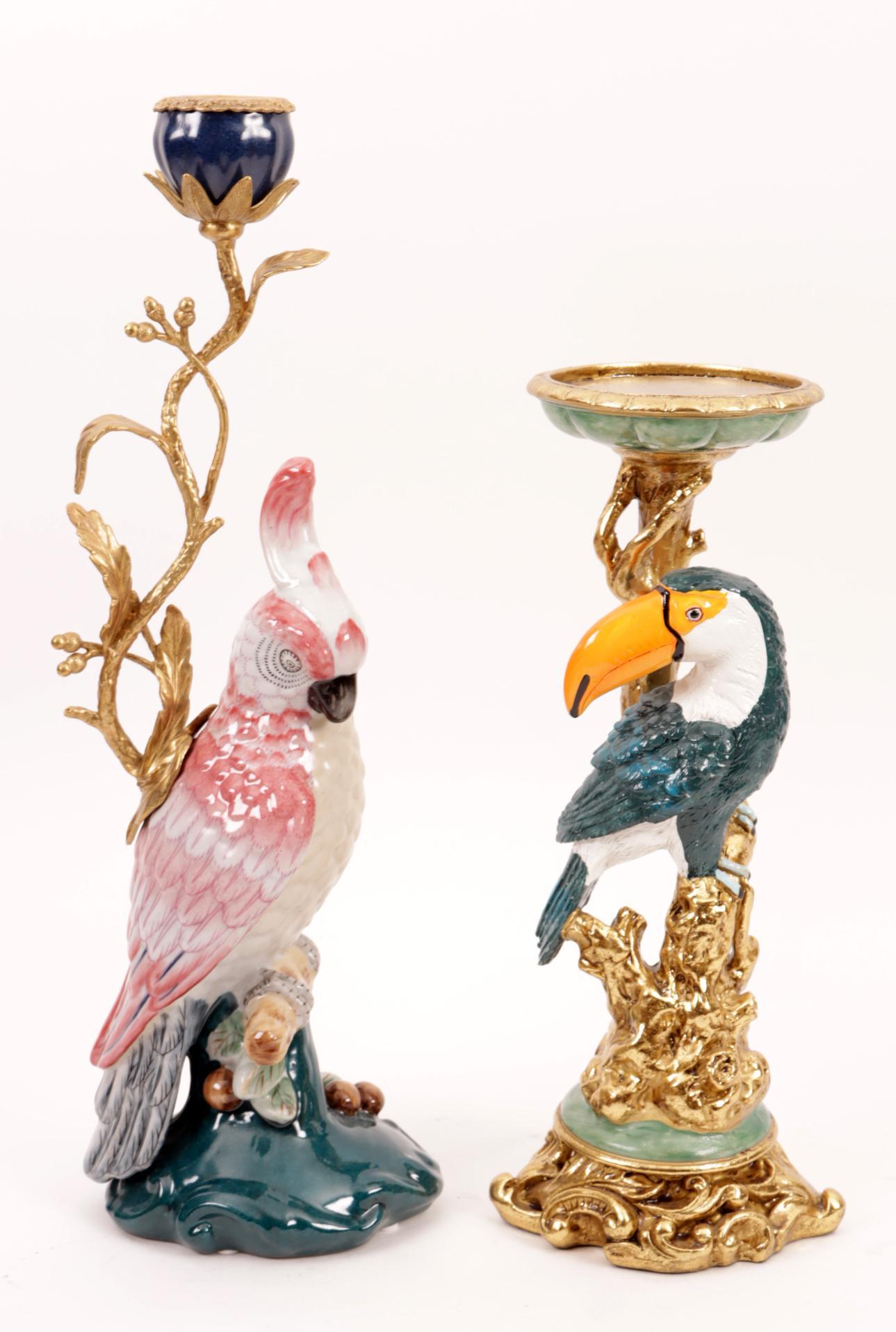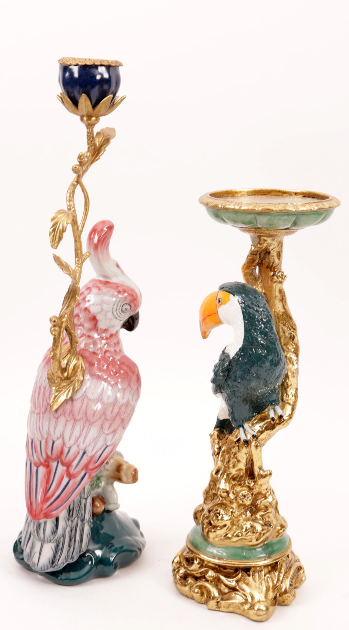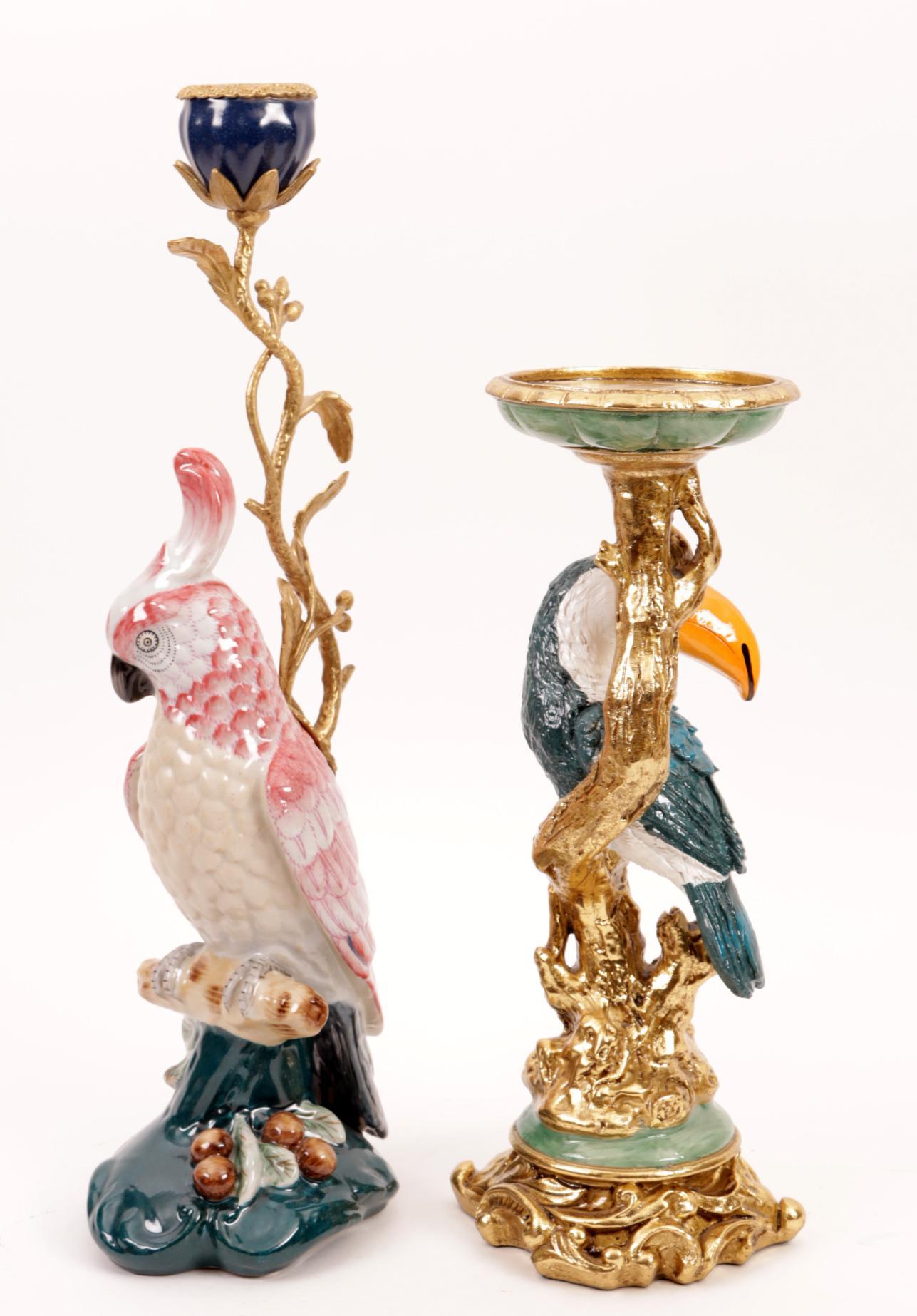 Koop van een porseleinen en een kunsthars kandelaar i.v.v. vogels