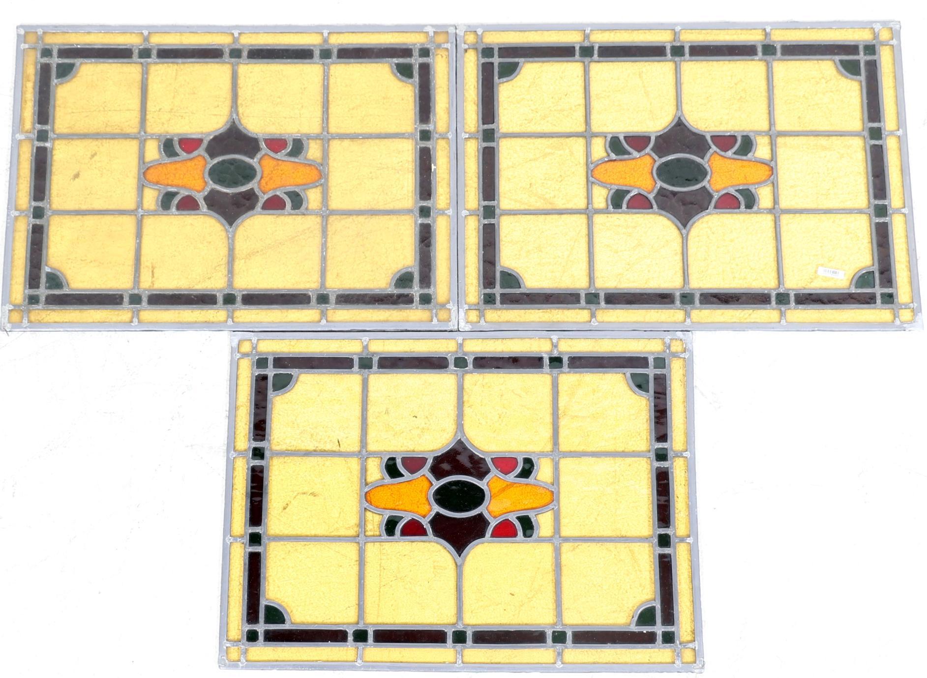 Koop van 3 glas-in-lood ramen, h.59 x b.43 cm.