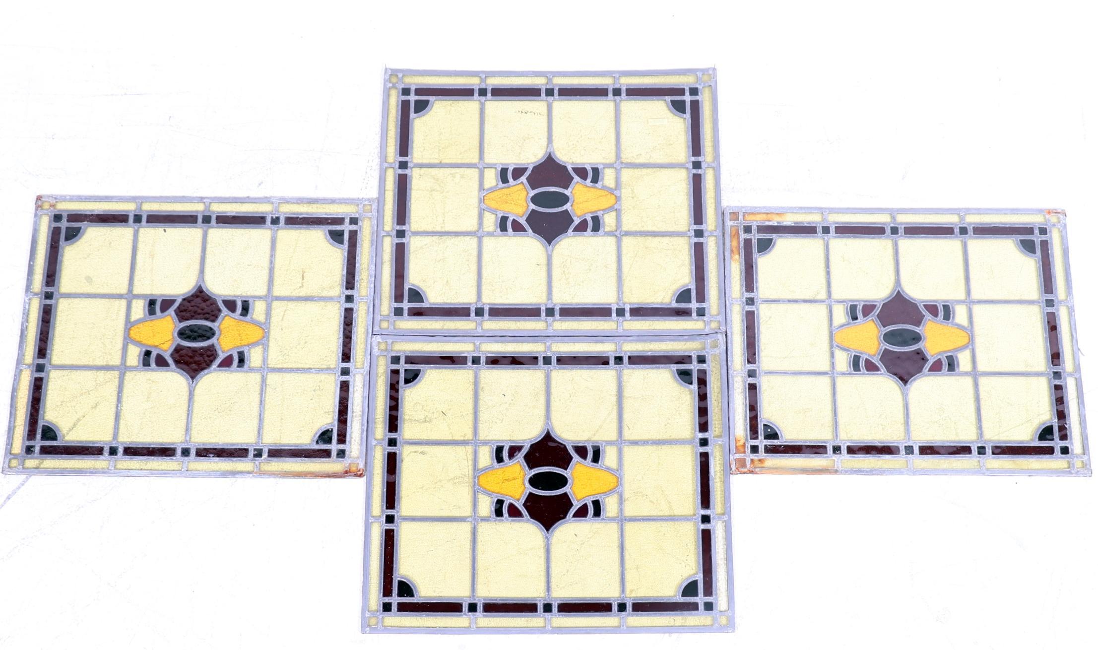 Koop van 4 glas-in-lood ramen, h.58 x b.48 cm.