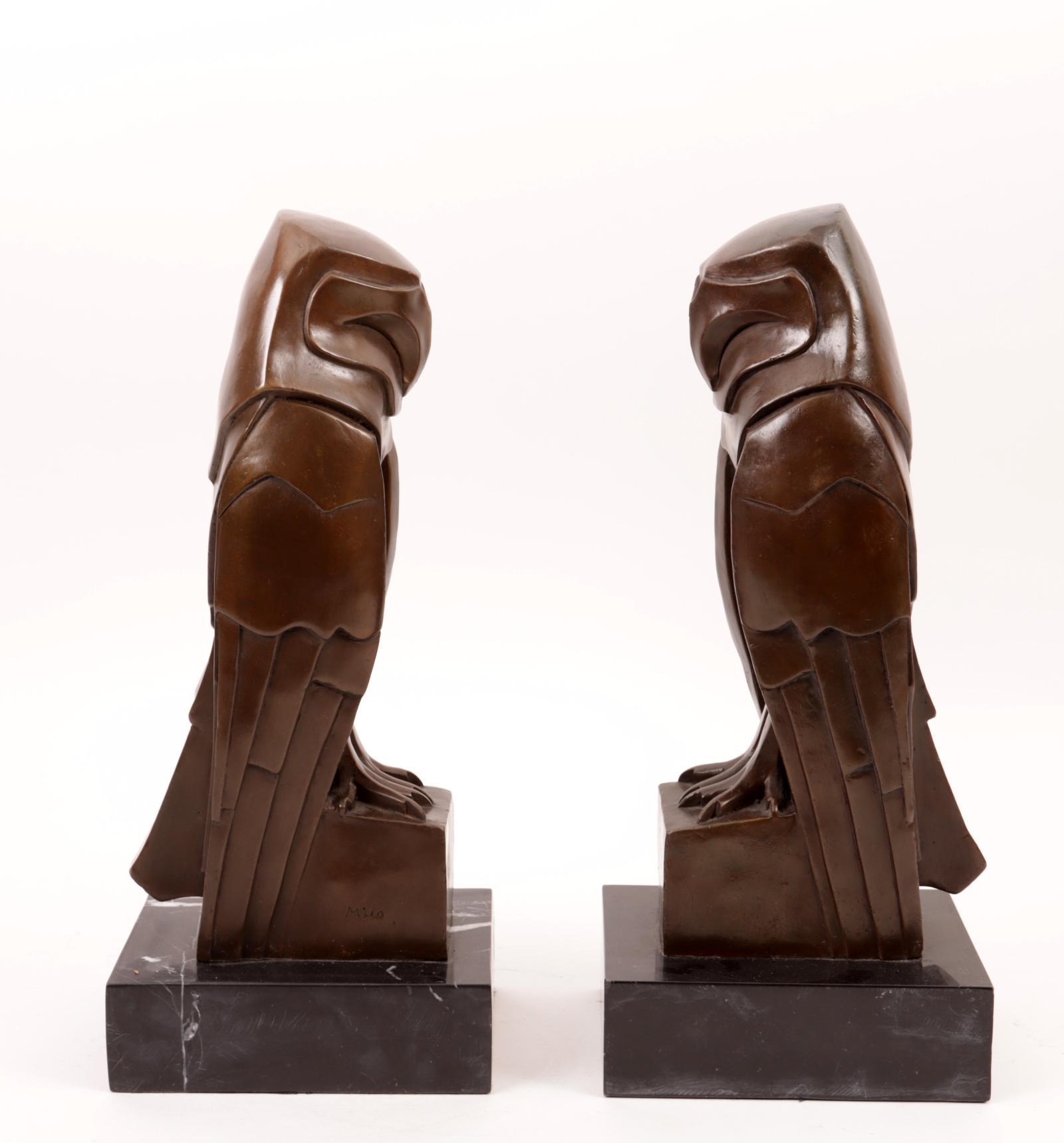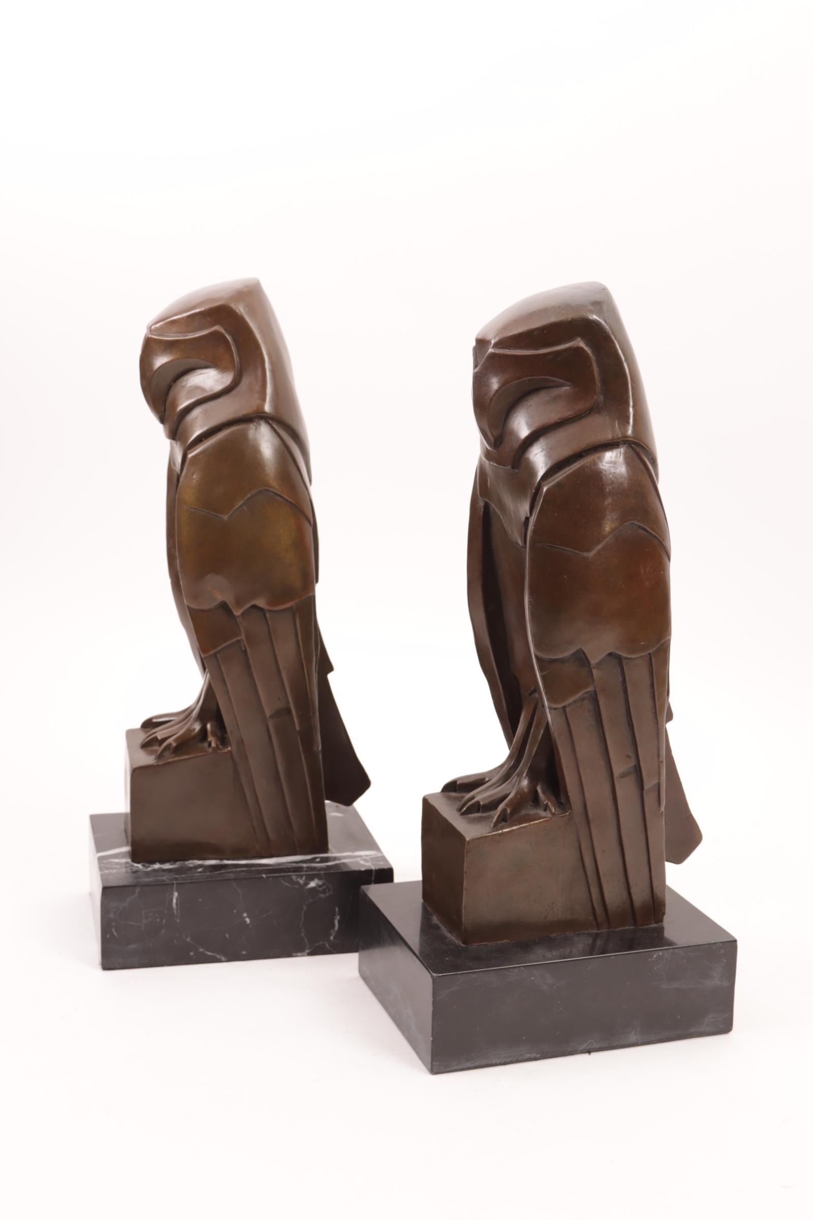 2 Bronzen Art Deco-stijl boekensteunen i.v.v. adelaars, h.38 cm.