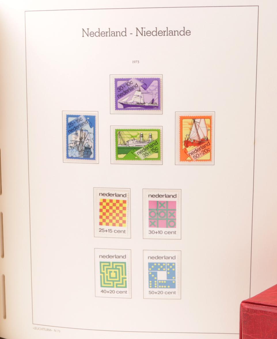Postzegels: 4 Luxe Leuchtturm albums in cassettes. 2 albums gevuld en compleet, 2 albums ledig.