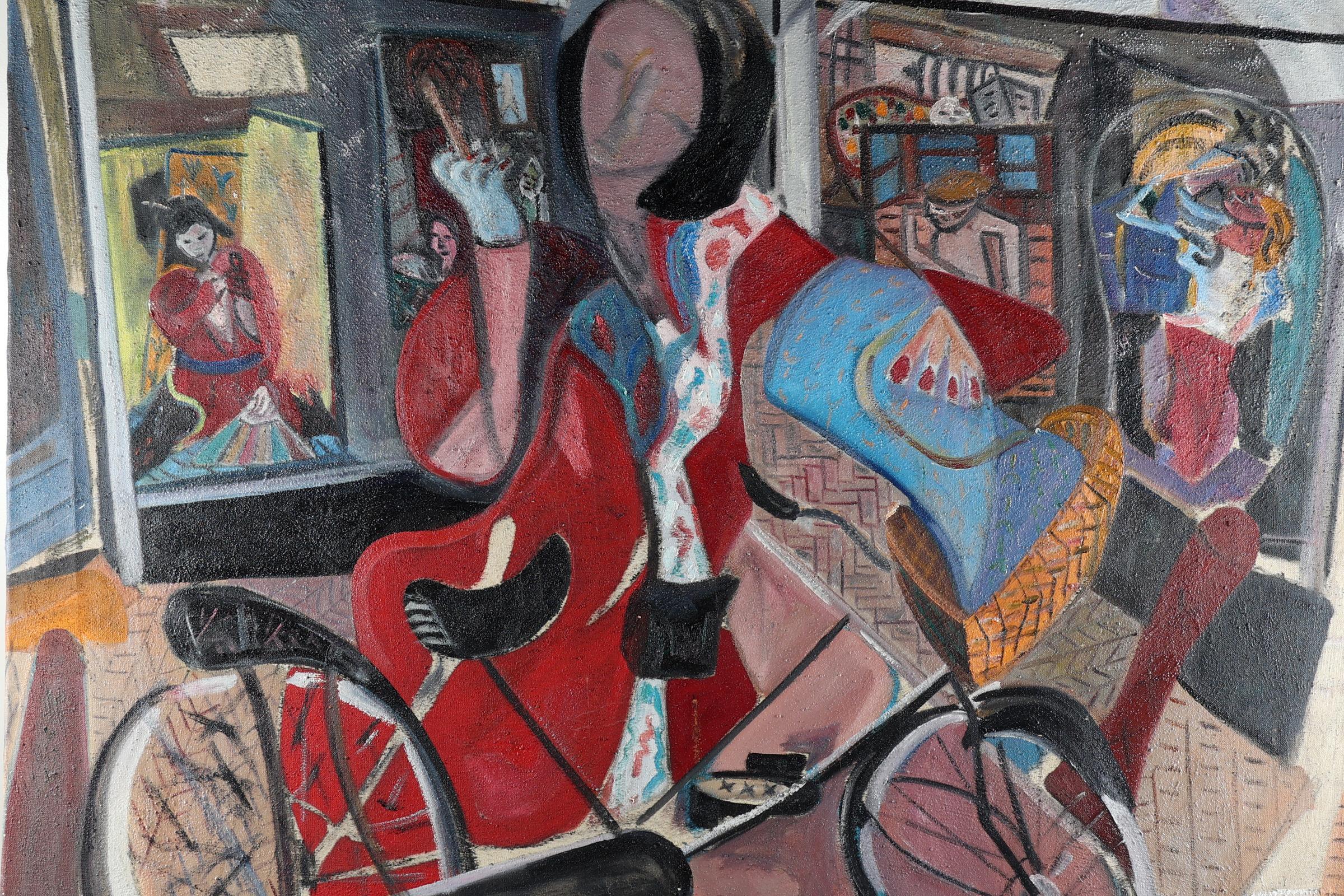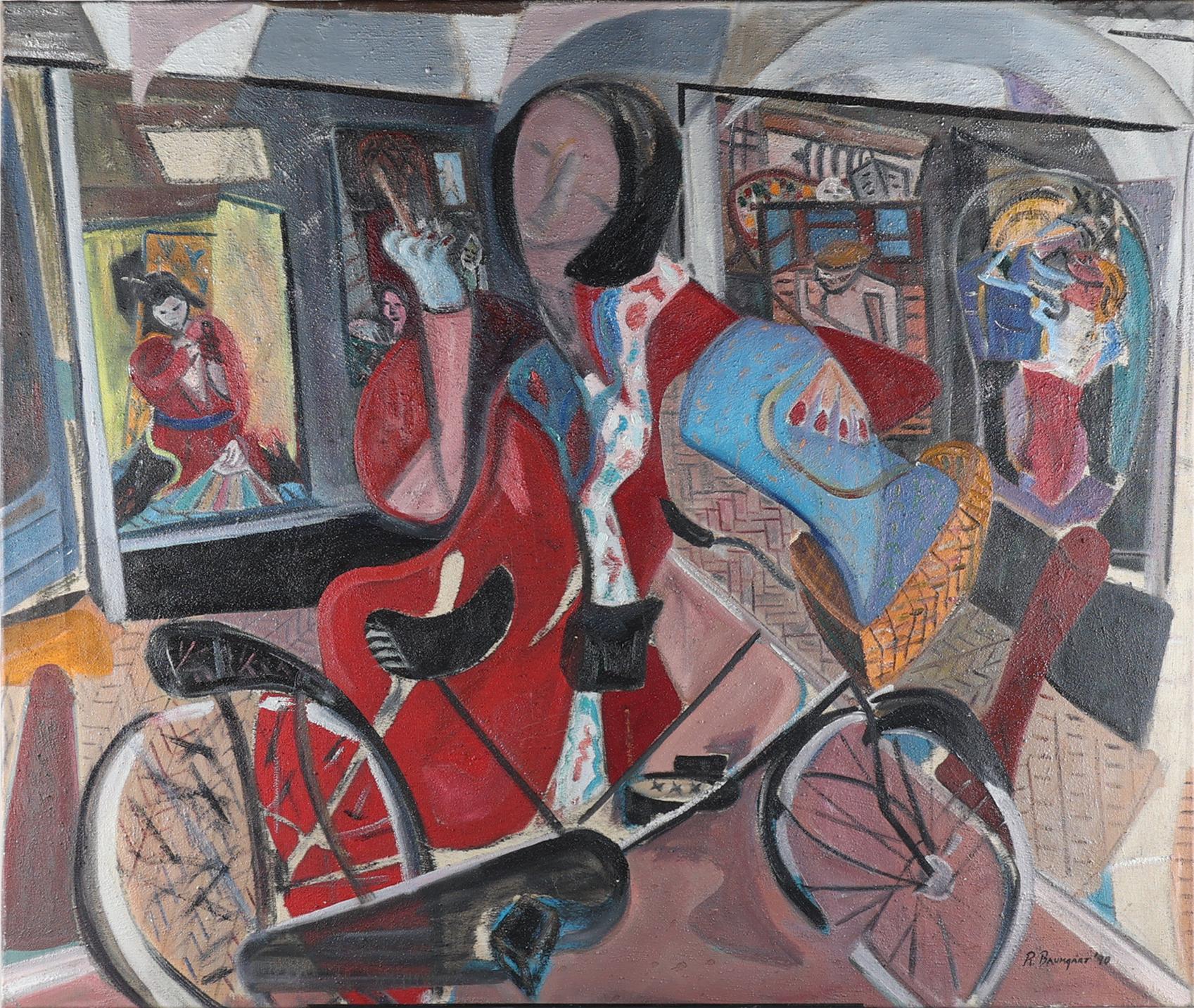 Richard Baumgart (1946), Gezicht op de Wallen te Amsterdam, olieverf op doek, 125,5 x 105,5 cm.