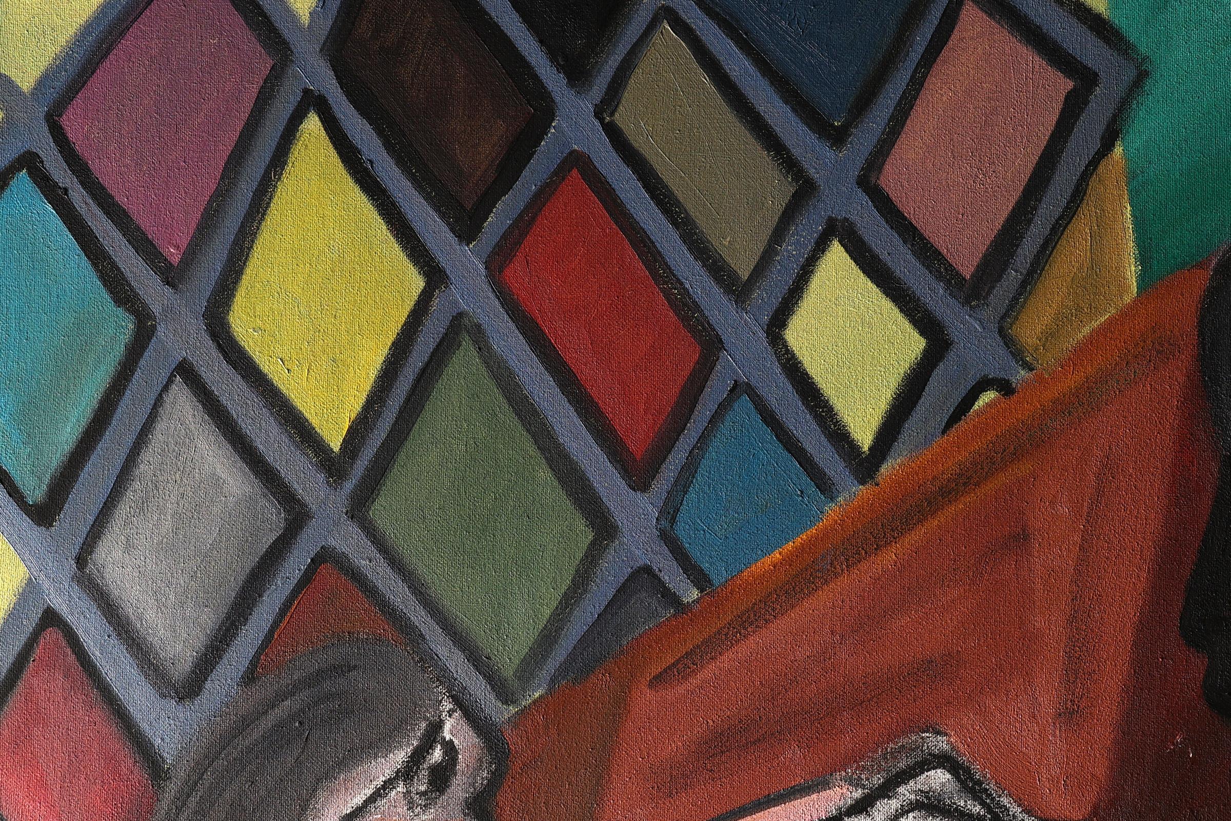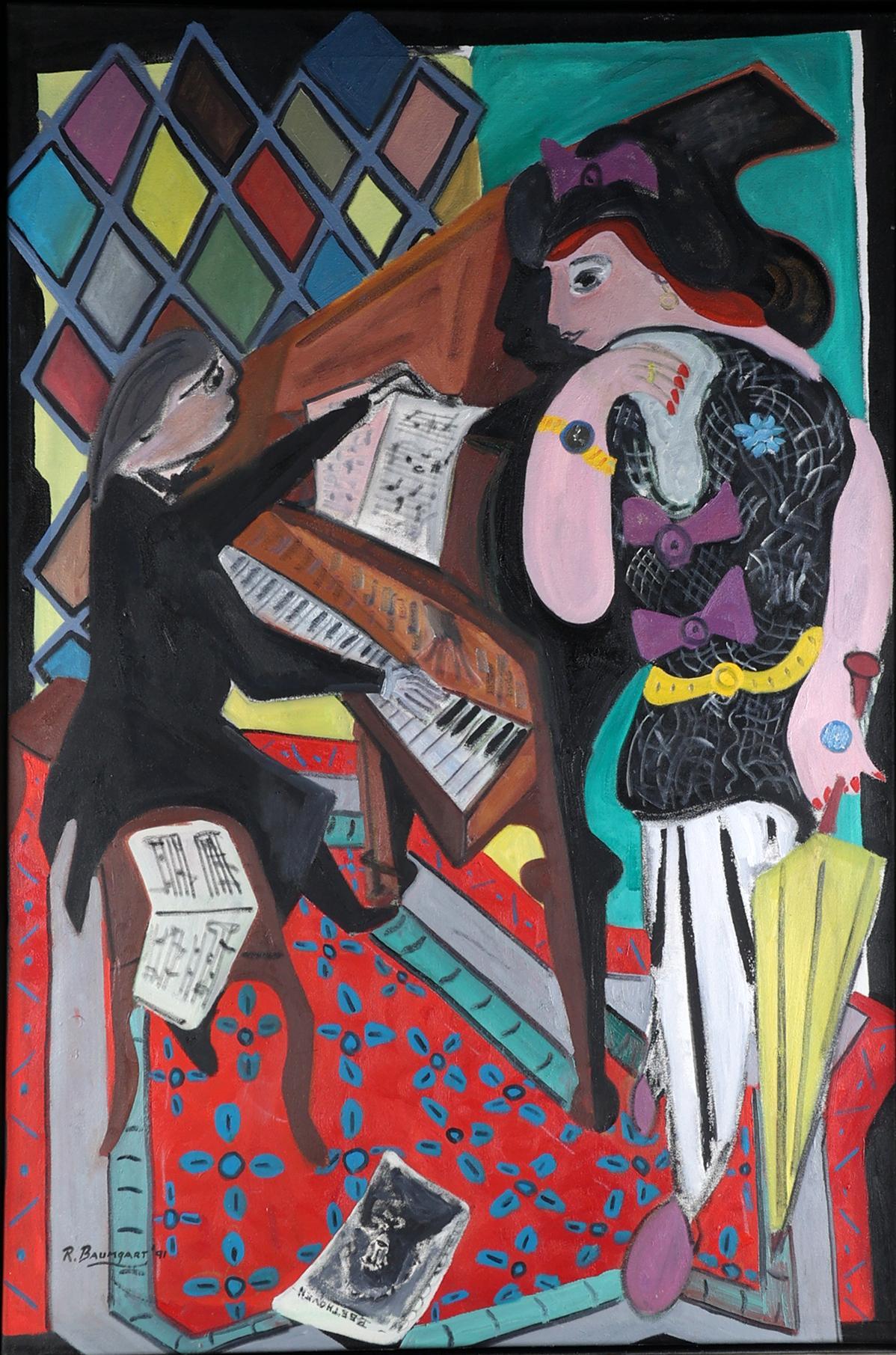 Richard Baumgart (1946), De Piano, olieverf op doek, gedateerd 1991, 120 x 78 cm.