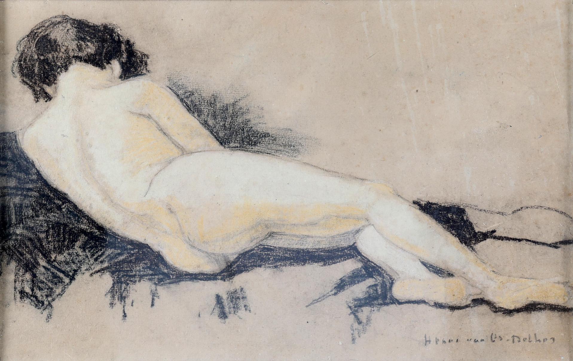 Henri van Os-Delhez (1880-1976), Naaktstudie, krijttekening, 20 x 31 cm.