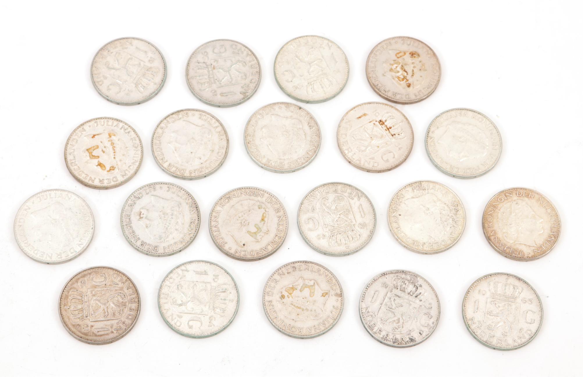 Koop muntstukken van 15 zilveren rijksdaalders en 20 guldens, totaal 354 gram