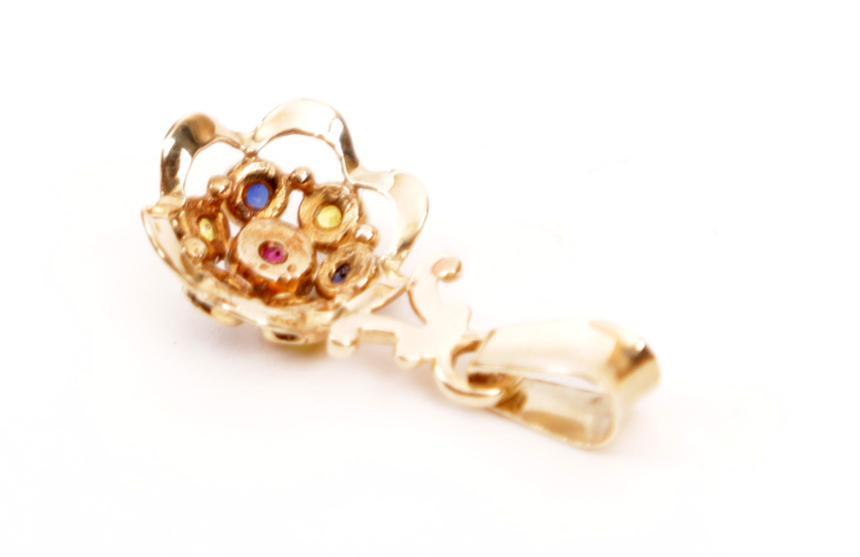 14 Kt. gouden hanger bezet met kleursteentjes, 1,4 gram