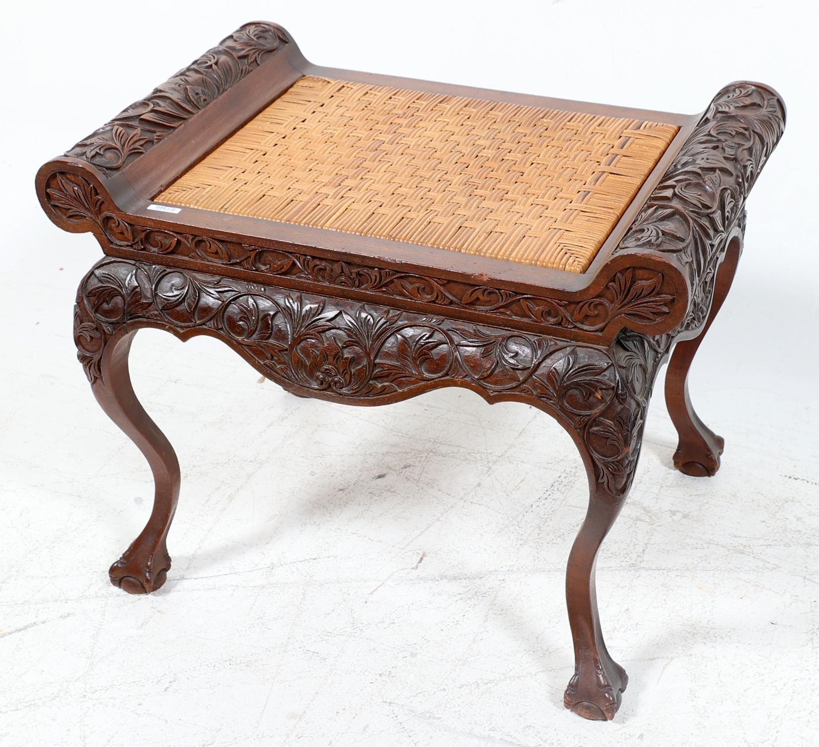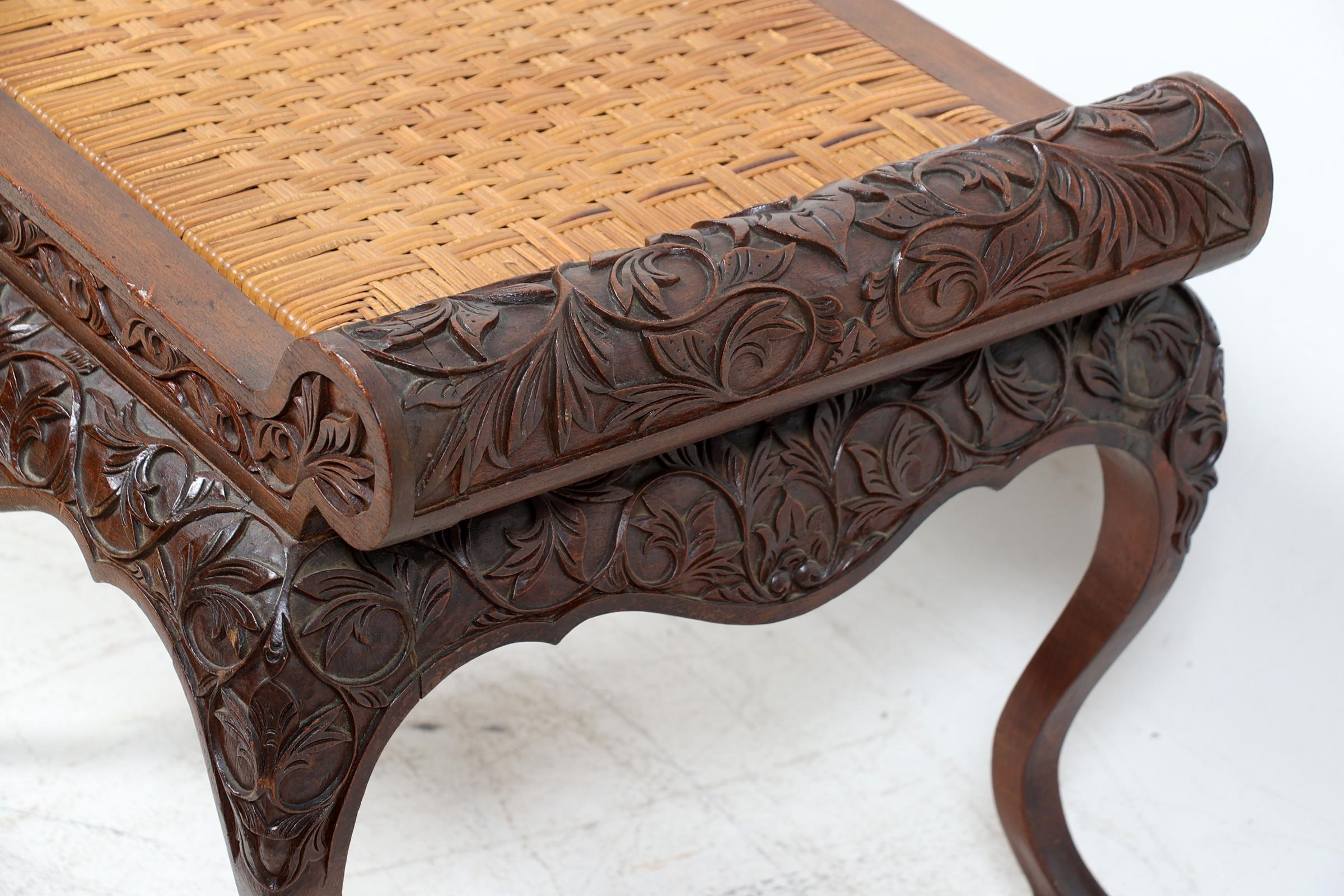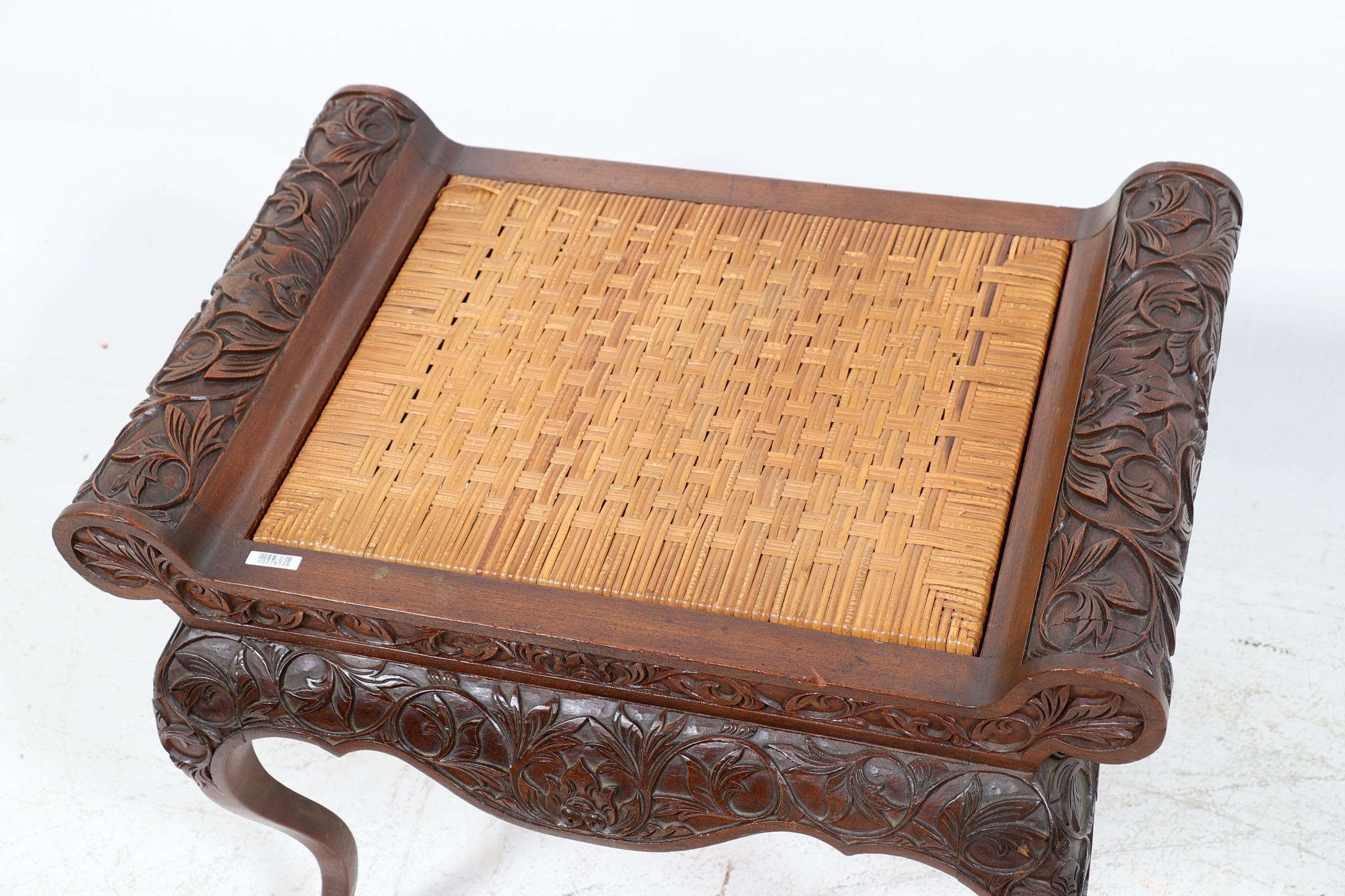 Rijkbewerkt teakhouten kruk, h.50 x b.70 x d.42 cm.