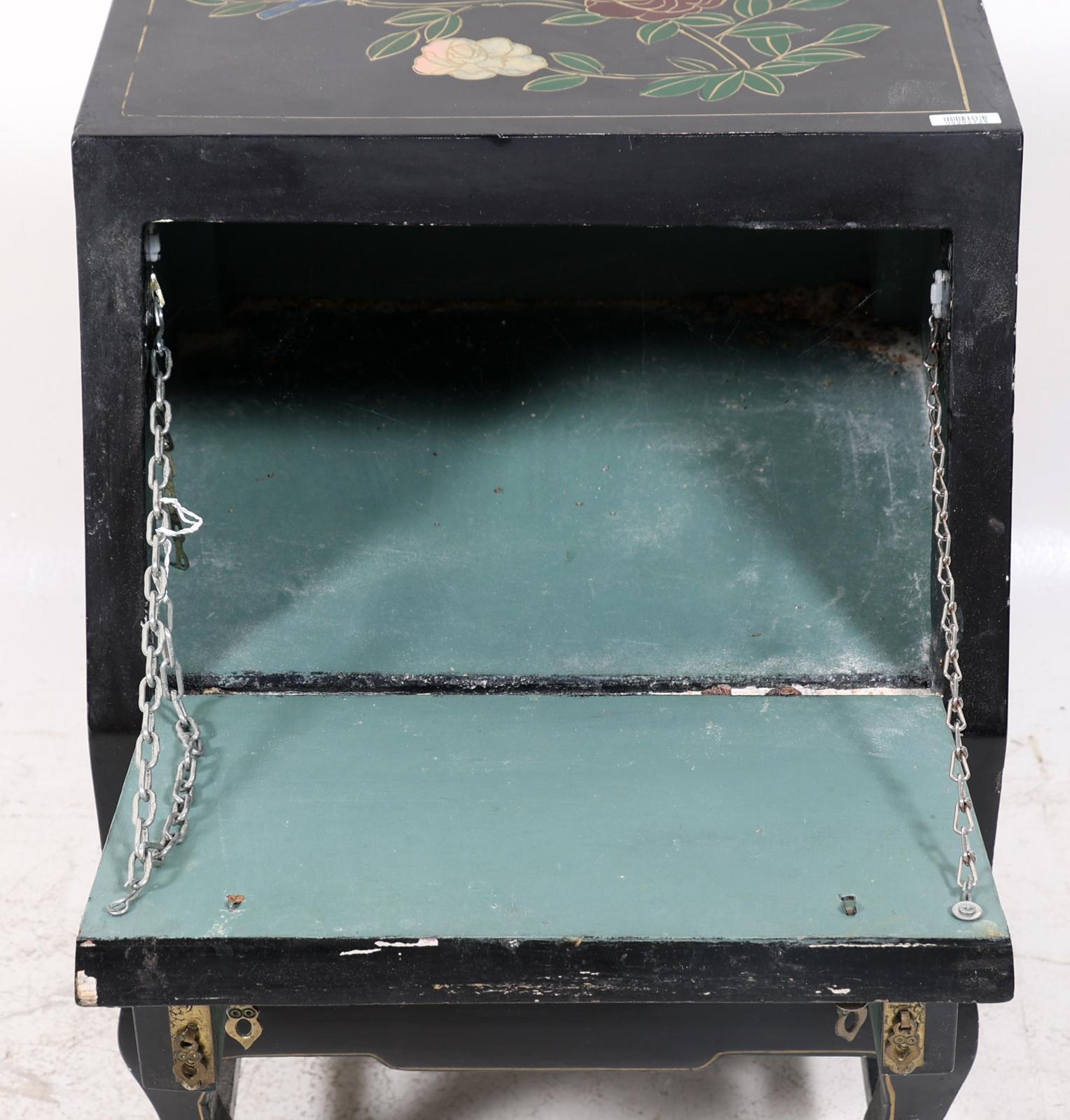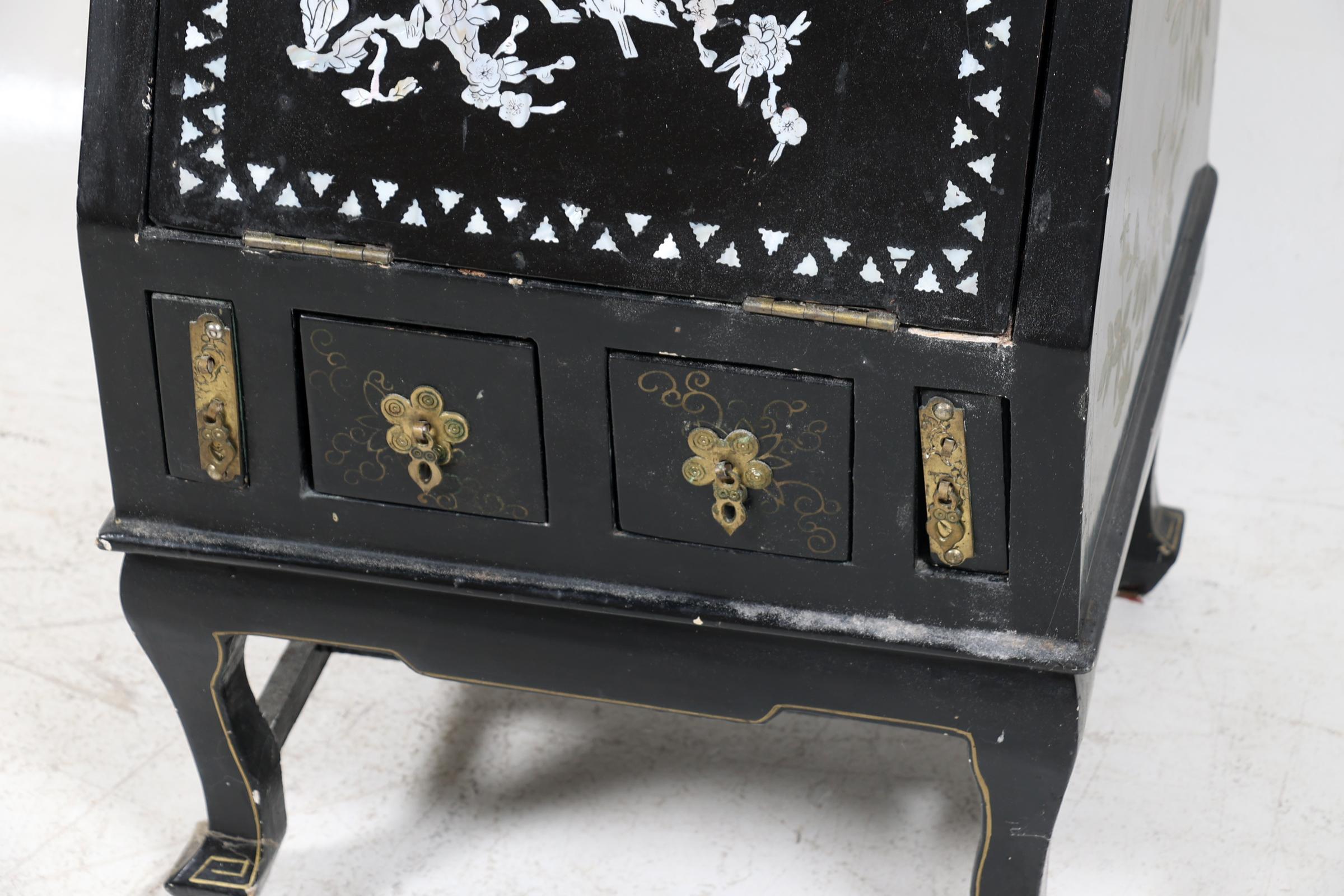 Chinees lakwerk miniatuur kast met klep sluiting, h.67 x b.45 x d.42 cm.