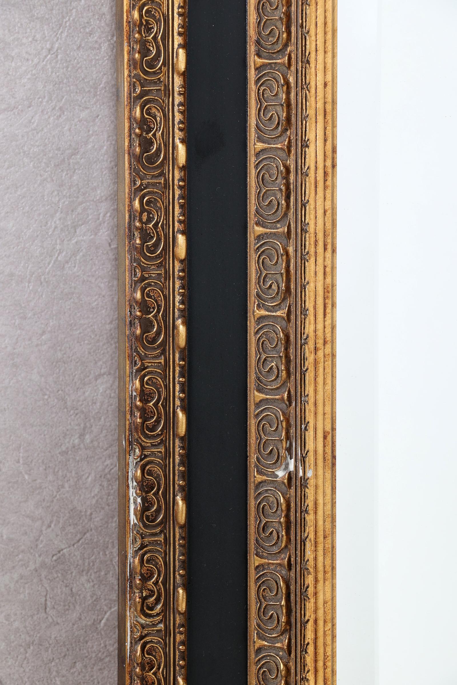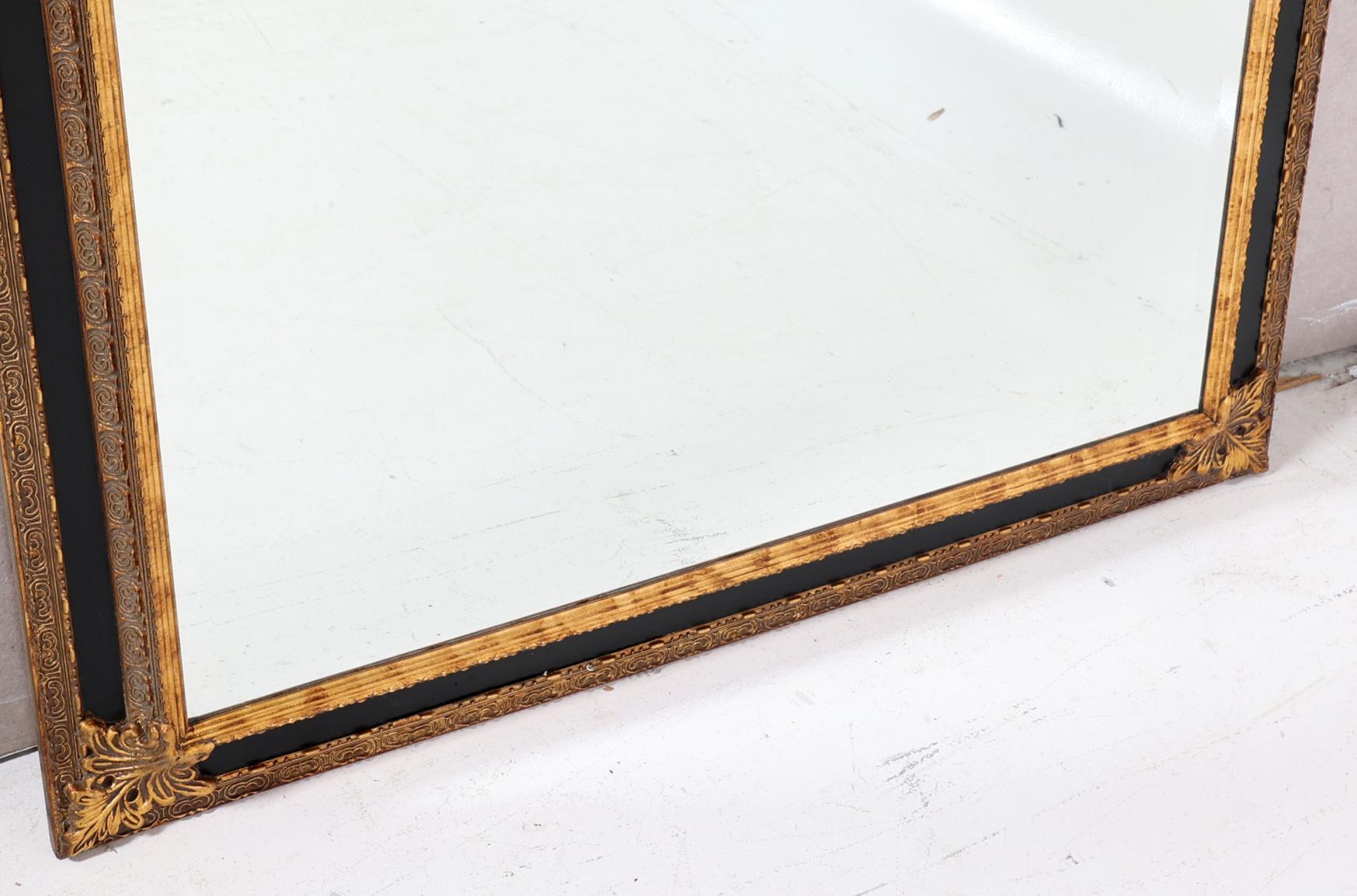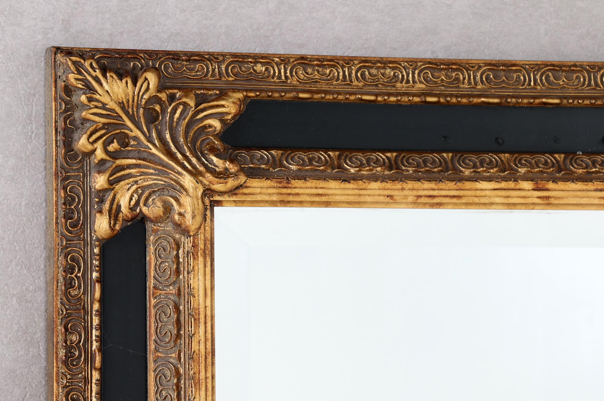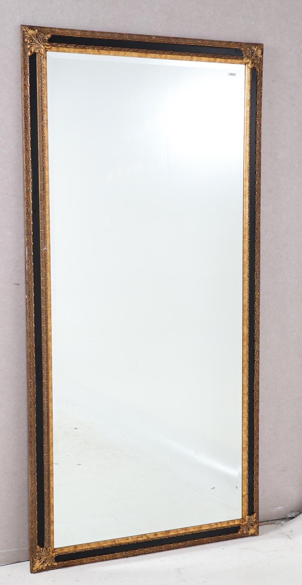 Geslepen spiegel in zwart/goudkleurige lijst, 196 x 96 cm.