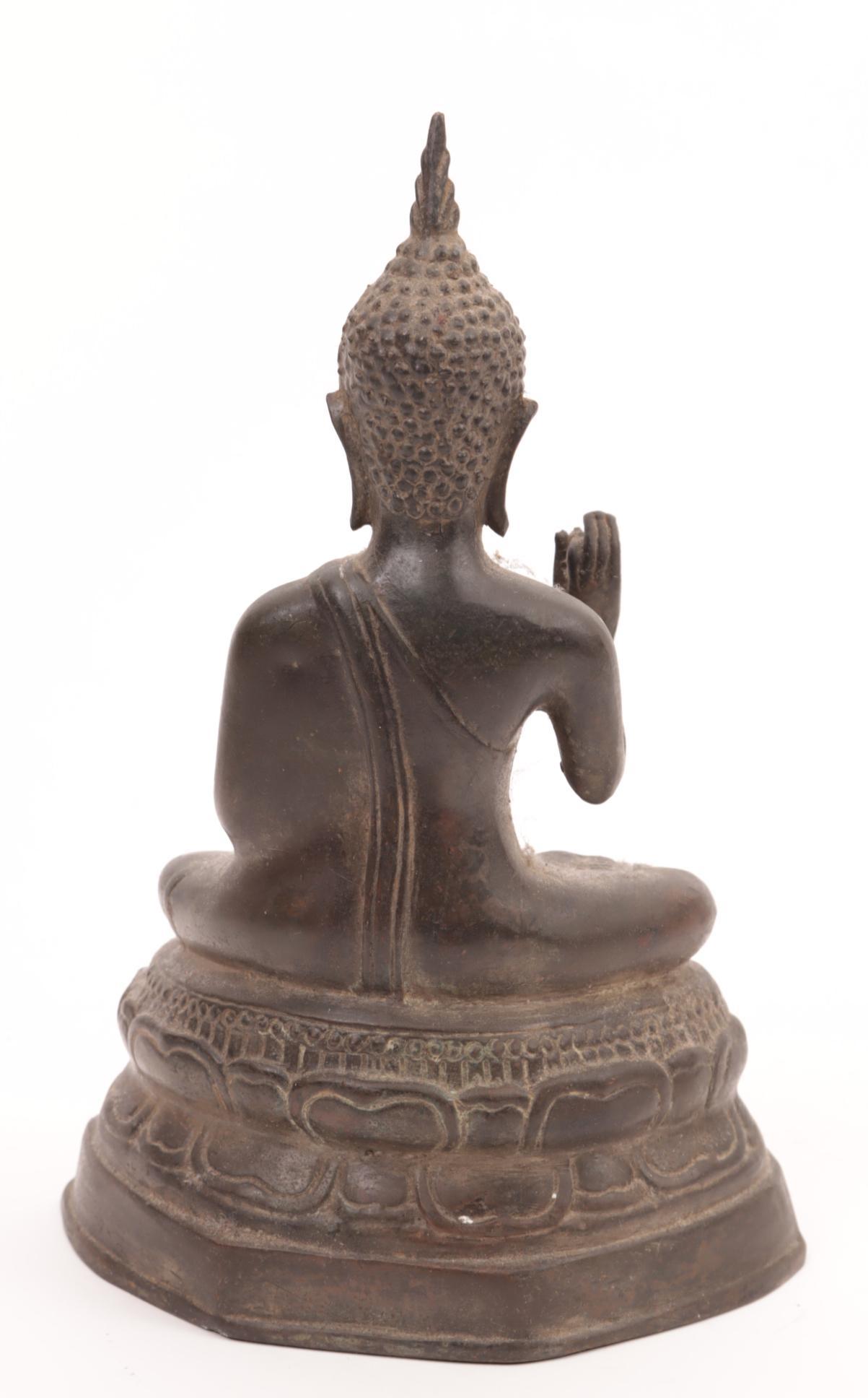 Bronzen beeld van een zittende Boeddha, h.24 cm.