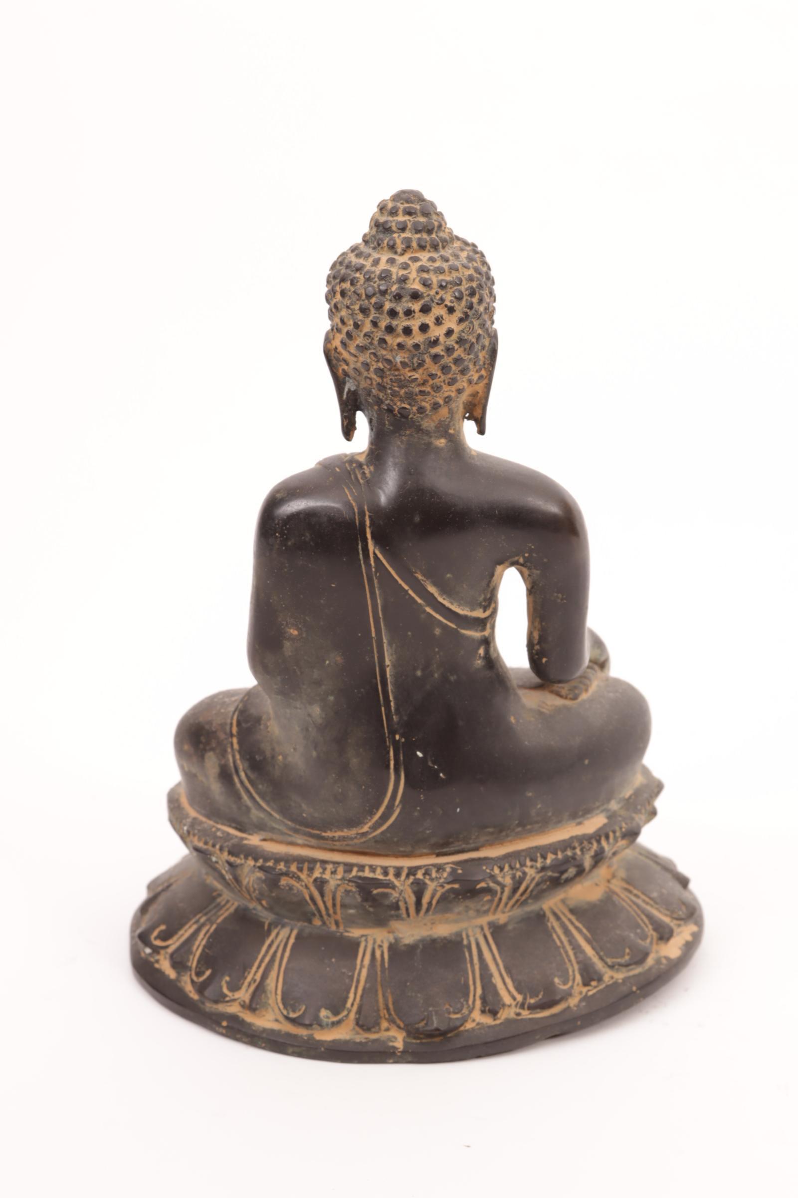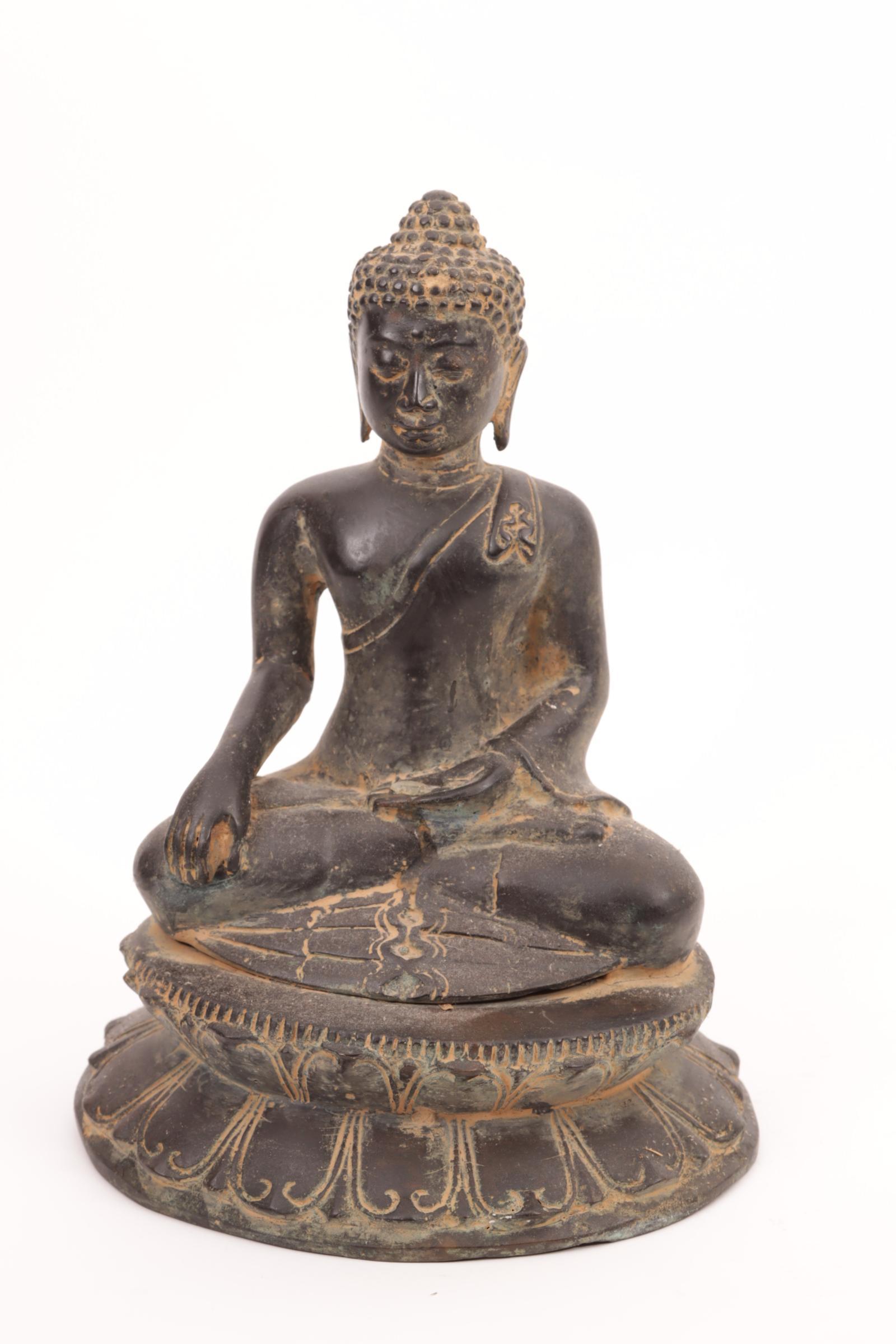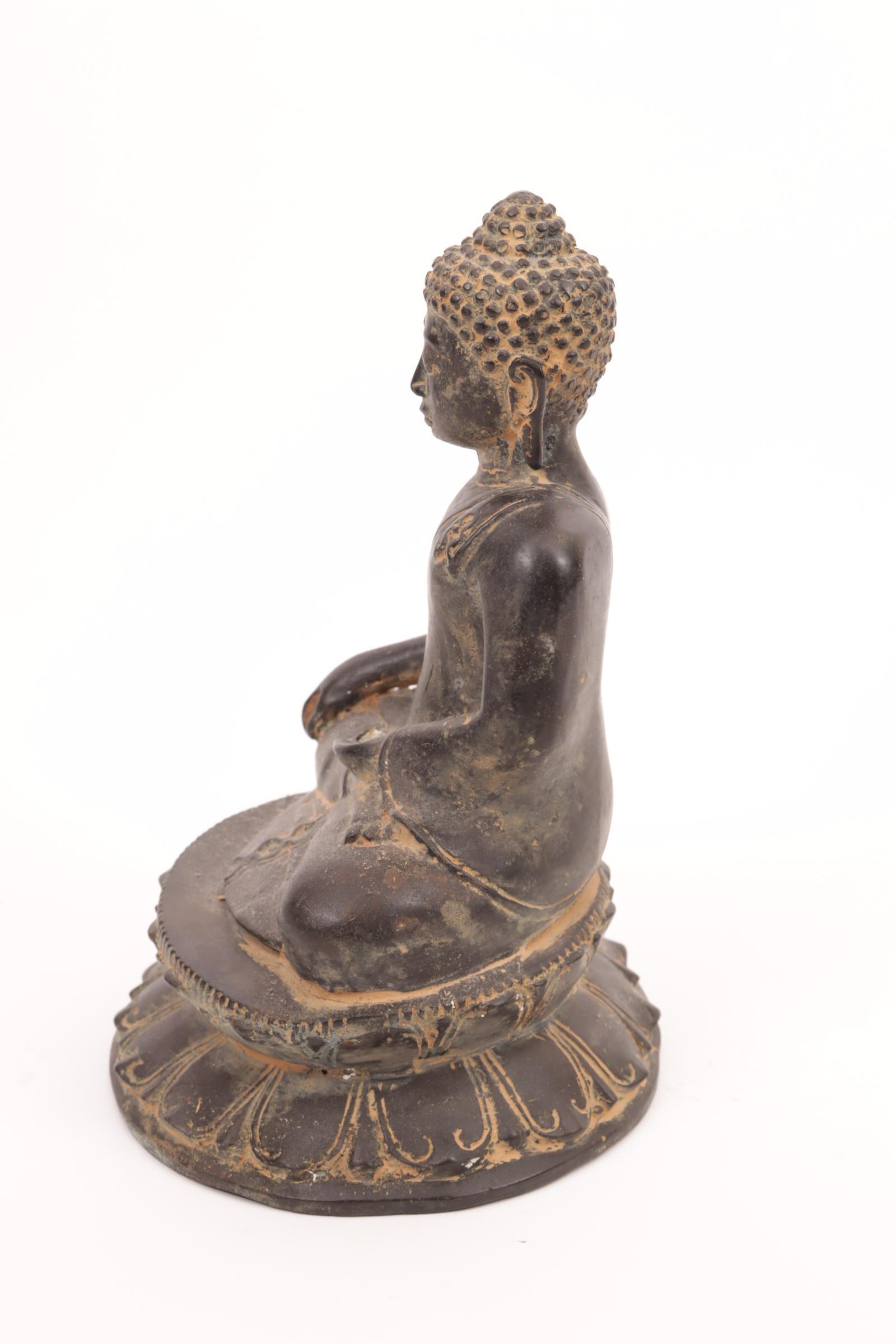 Groen gepatineerd beeld van een zittende Boeddha, h.24 cm.