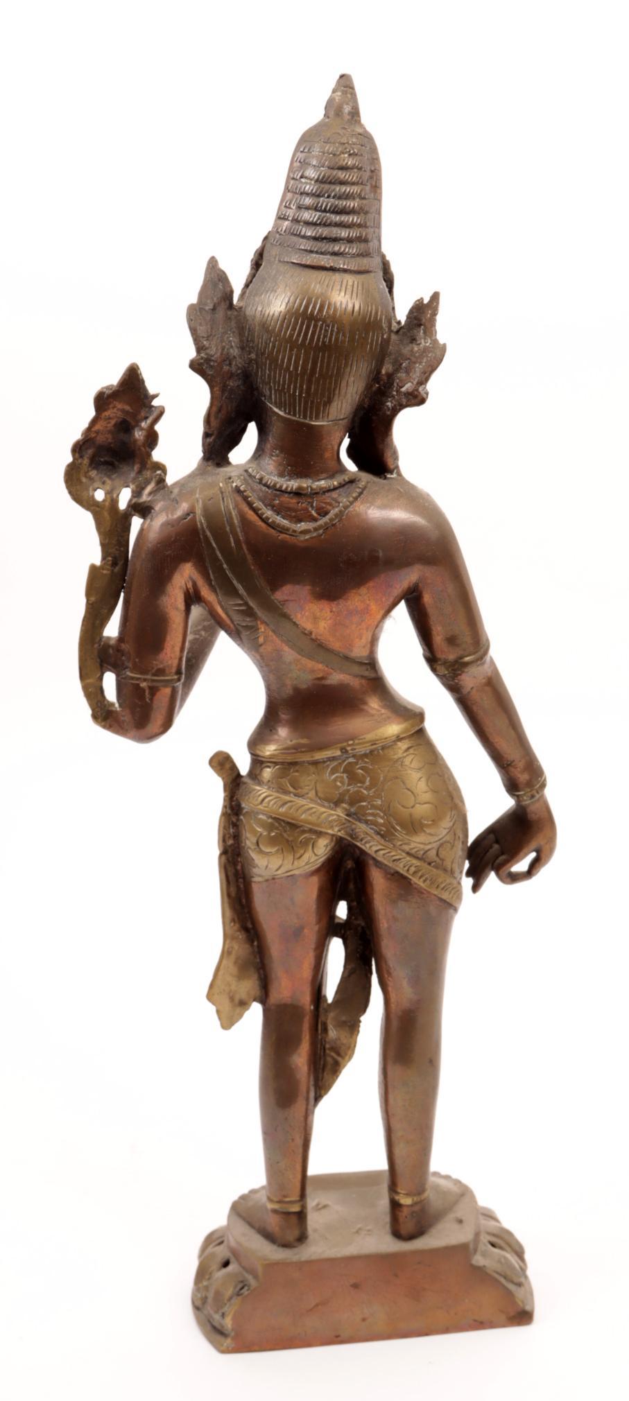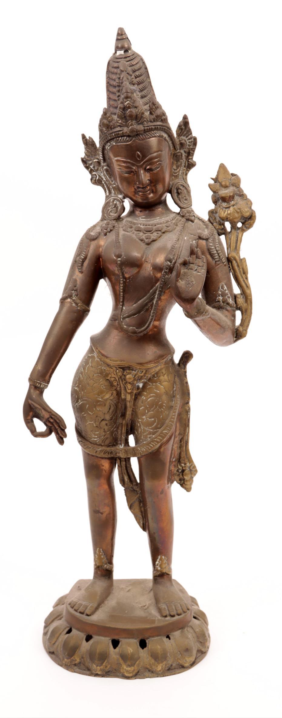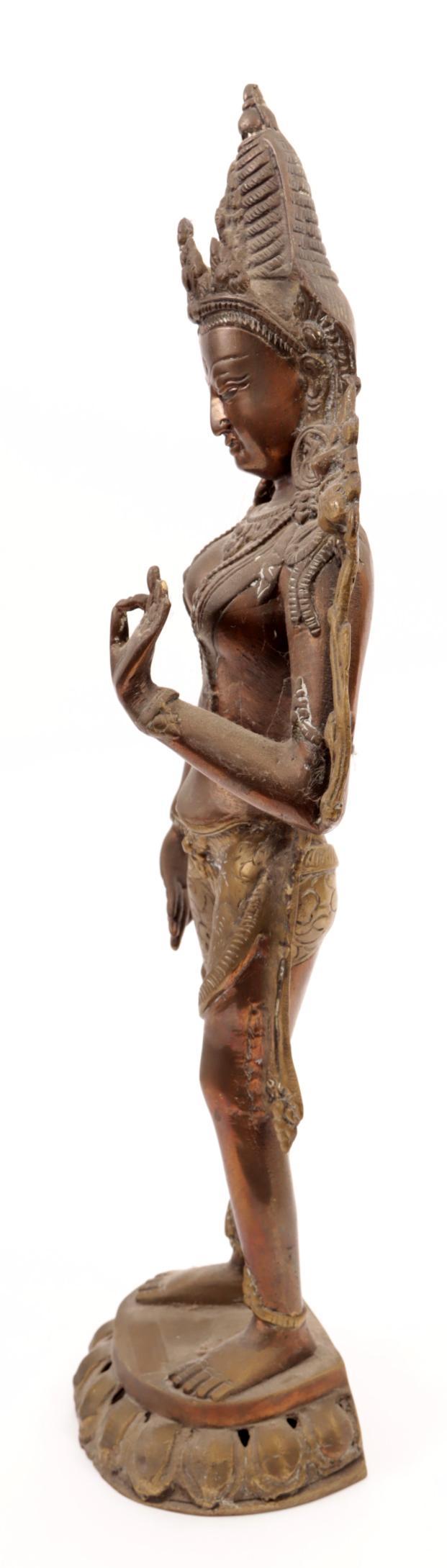 Koperen beeld van een staande Tara, h.43 cm.