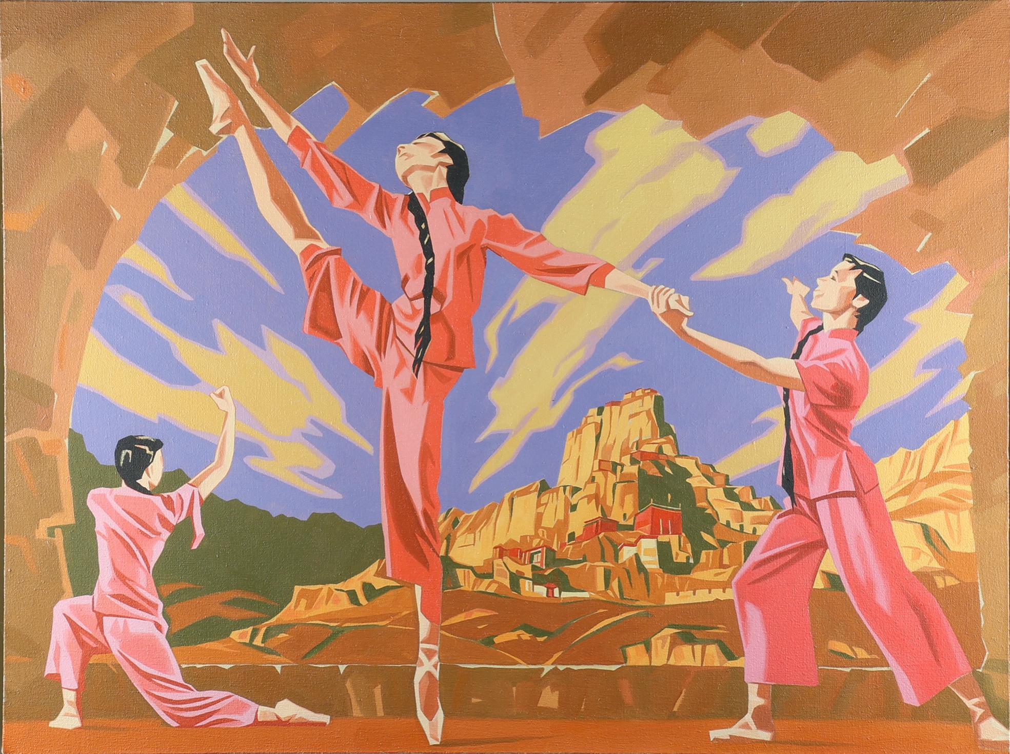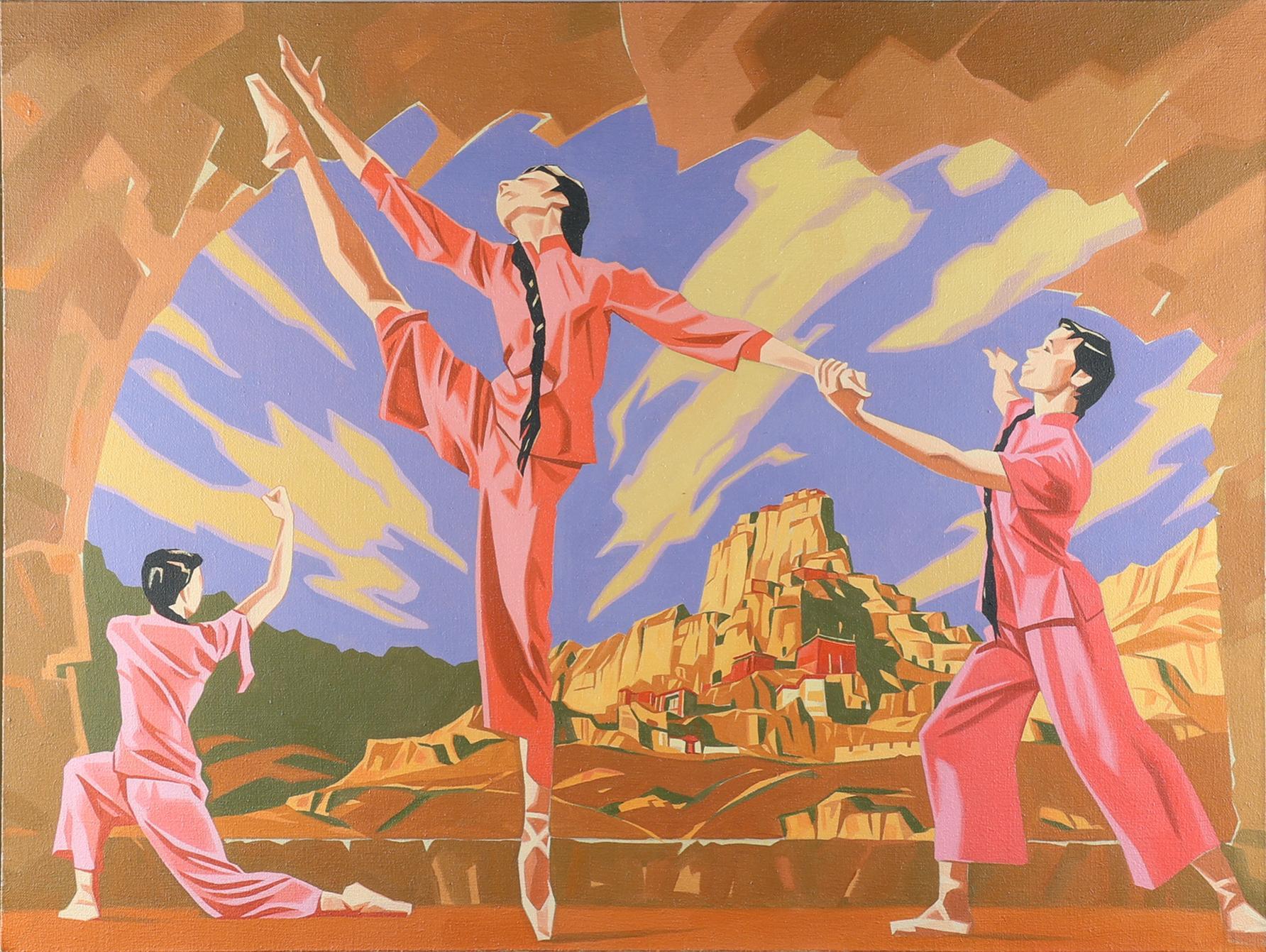 Zhang Bin (1966), Yangbanxi, Opera, acryl op doek, gedateerd 2000, 80 x 60 cm.