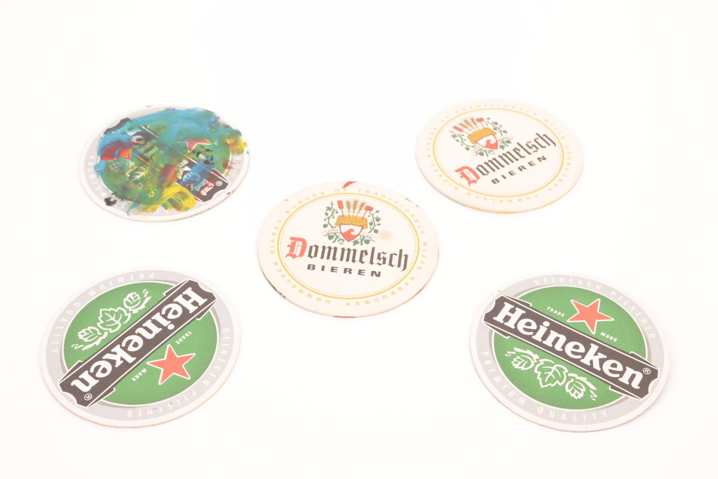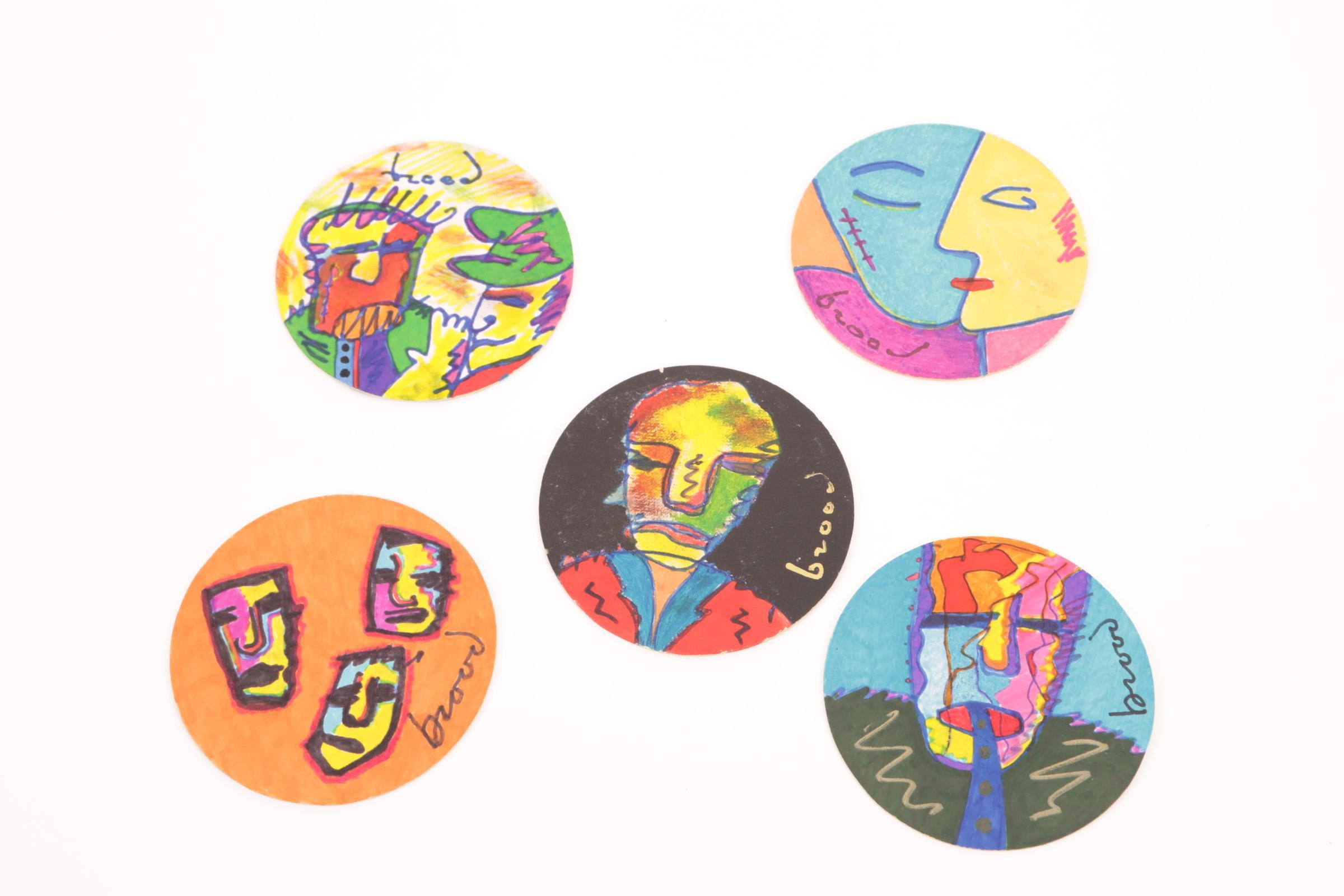 Herman Brood (1945-2001), vijf met de hand gekleurde bierviltjes