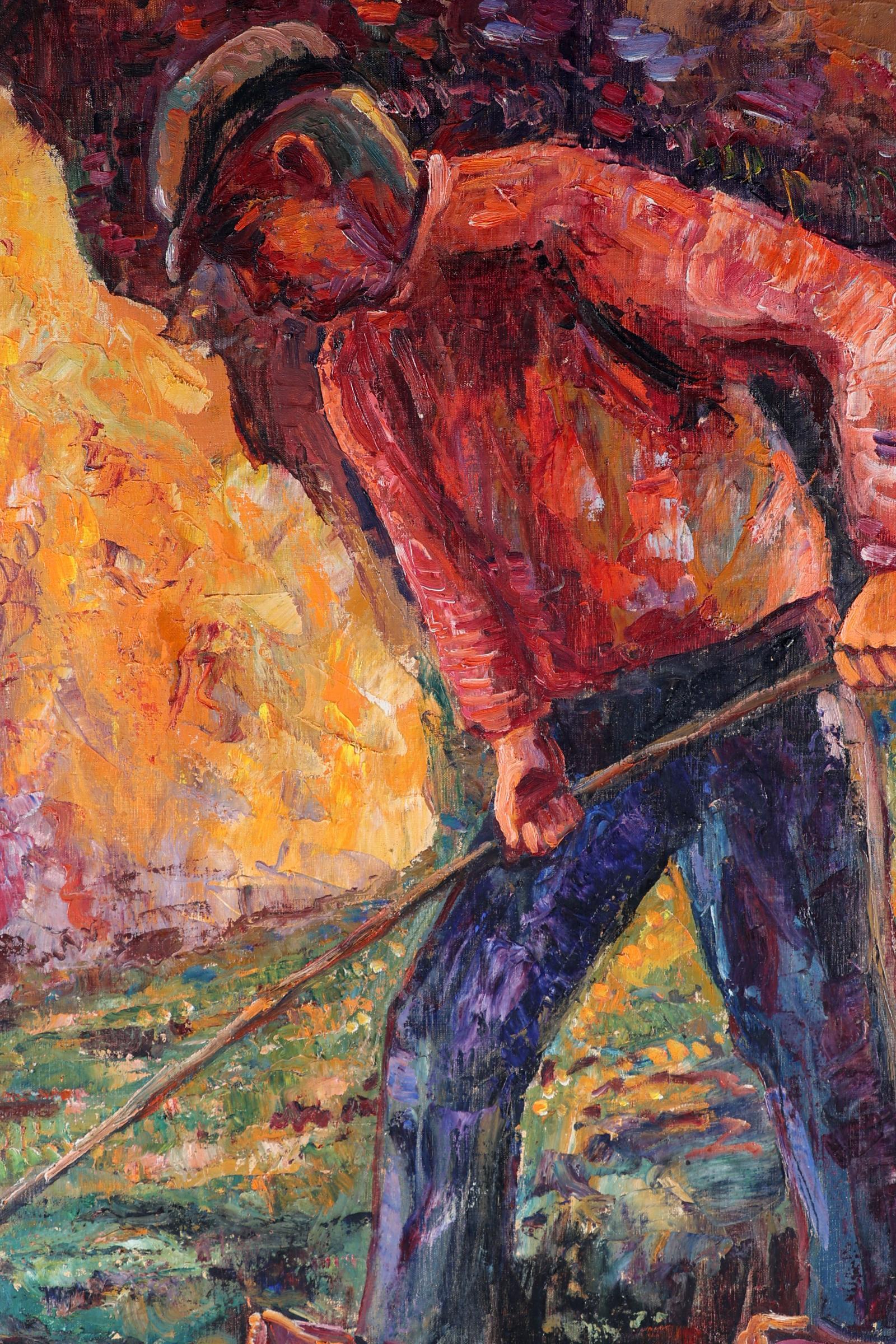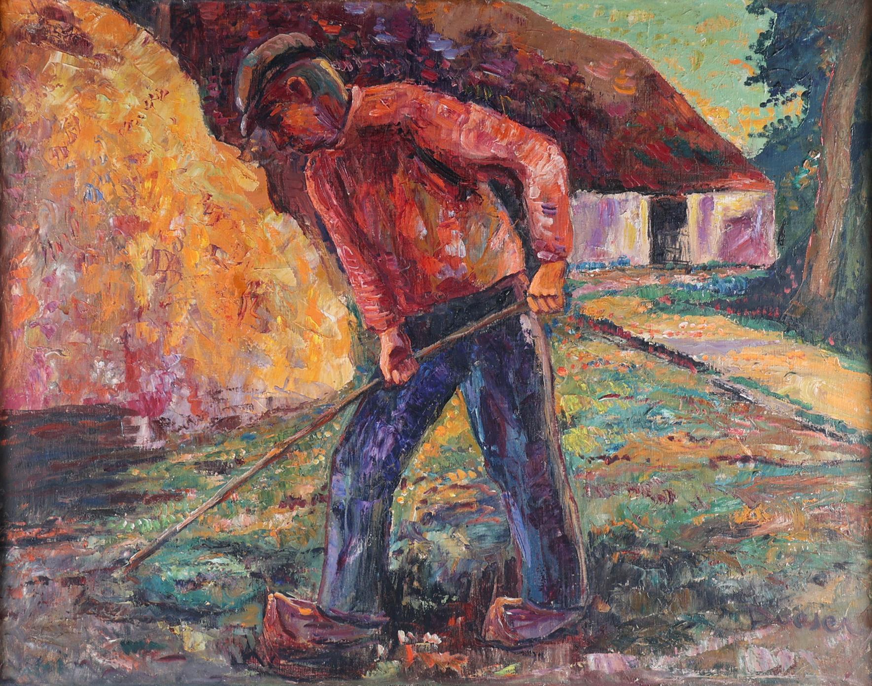 Jacobus Johannes (Jacobus) Doeser ( 1884-1970), Landarbeider voor boerderij, olieverf op doek, 100 x 80 cm., provenance particuliere collectie