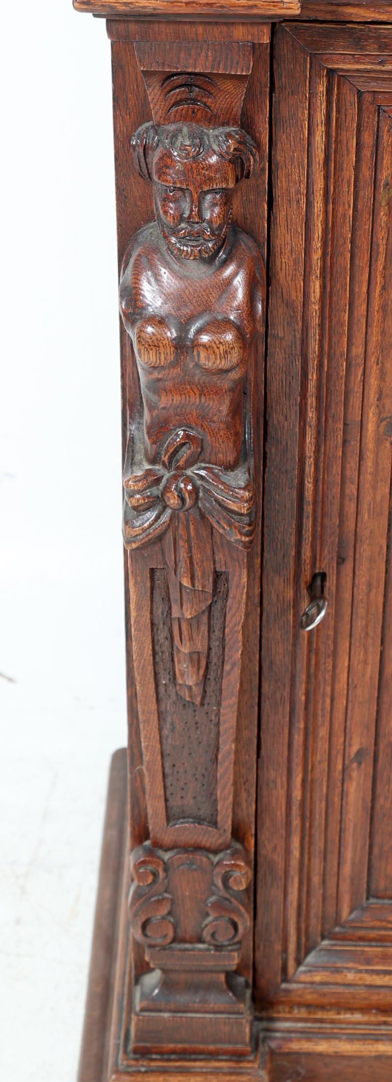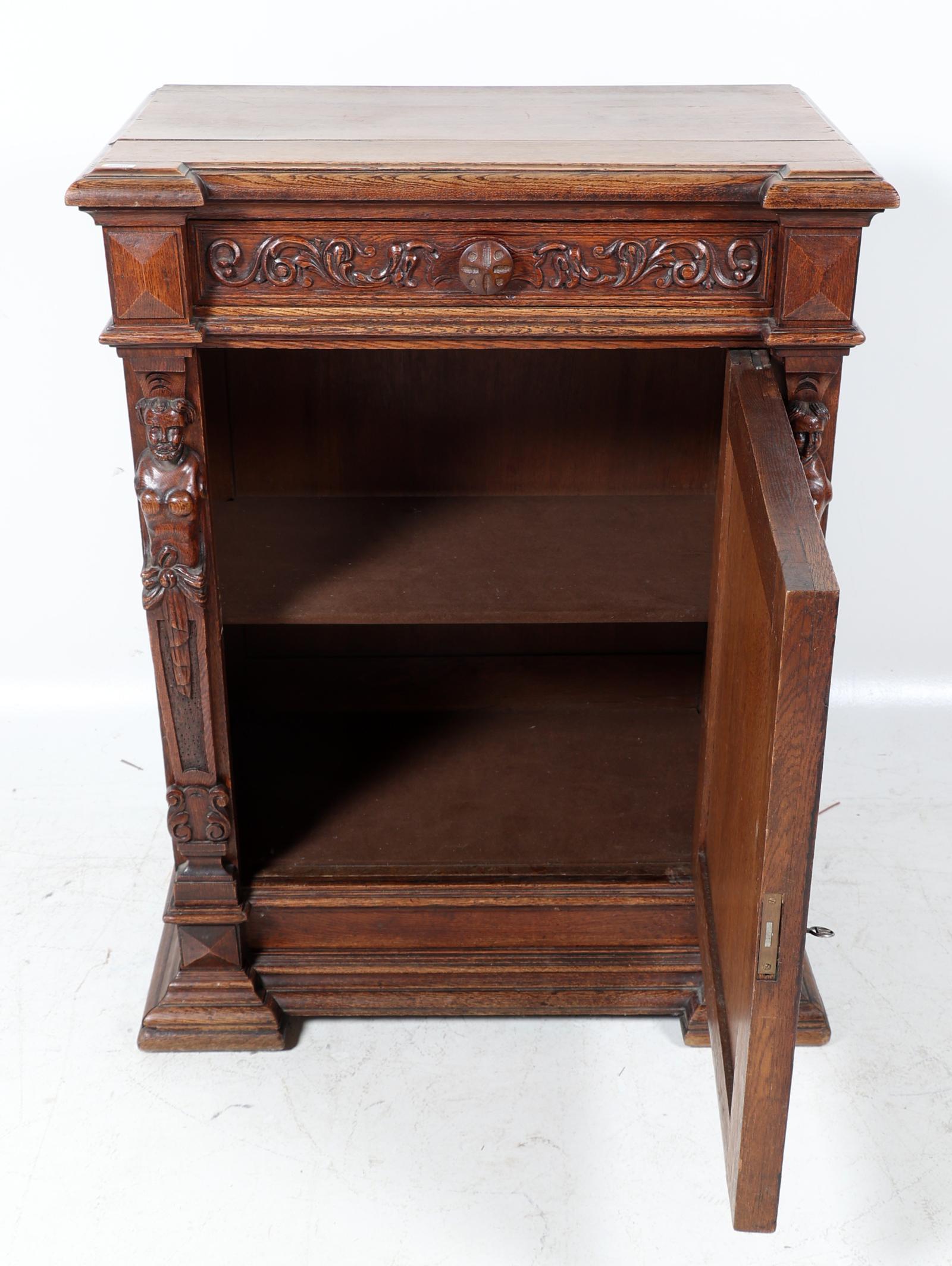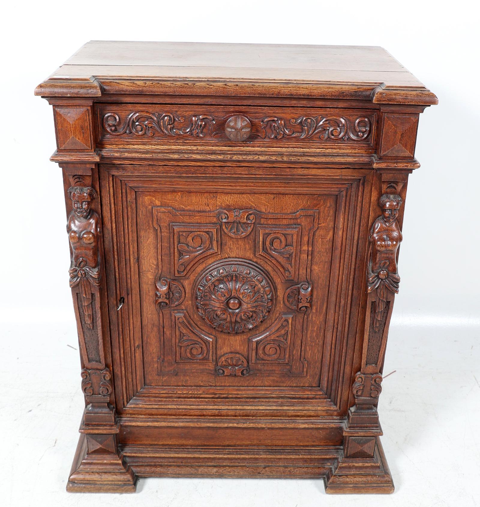 Eikenhouten 1-deurs kast met lade, h.107 x b.81 x d.50 cm.