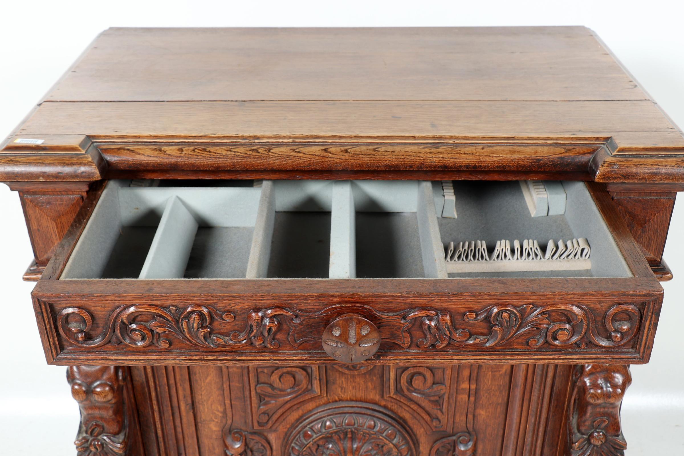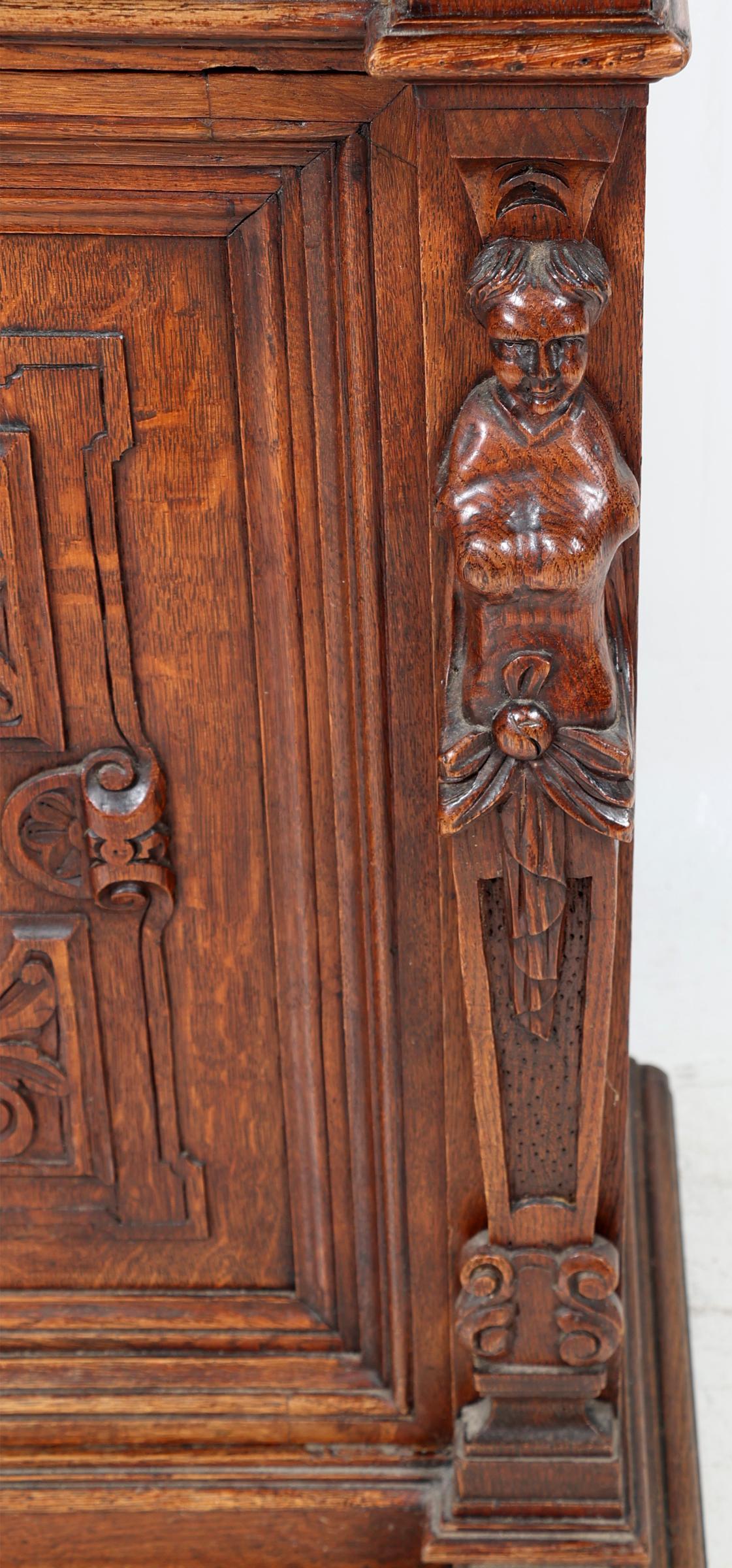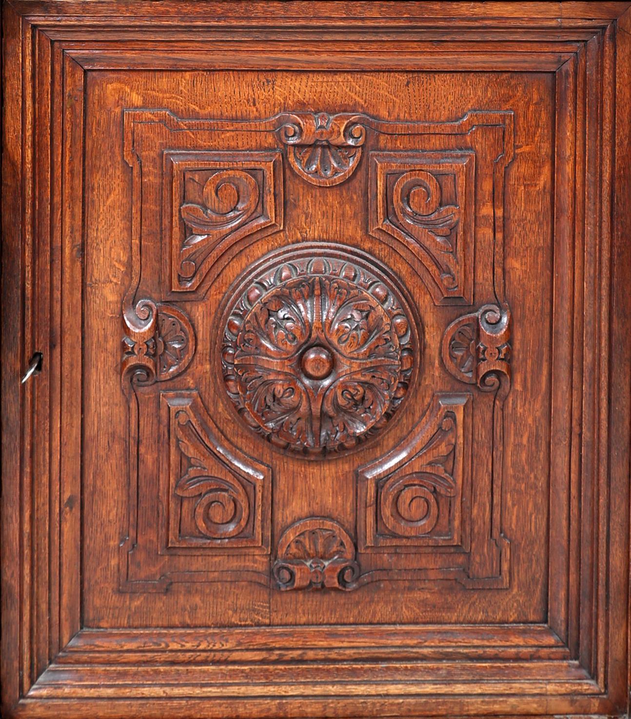 Eikenhouten 1-deurs kast met lade, h.107 x b.81 x d.50 cm.