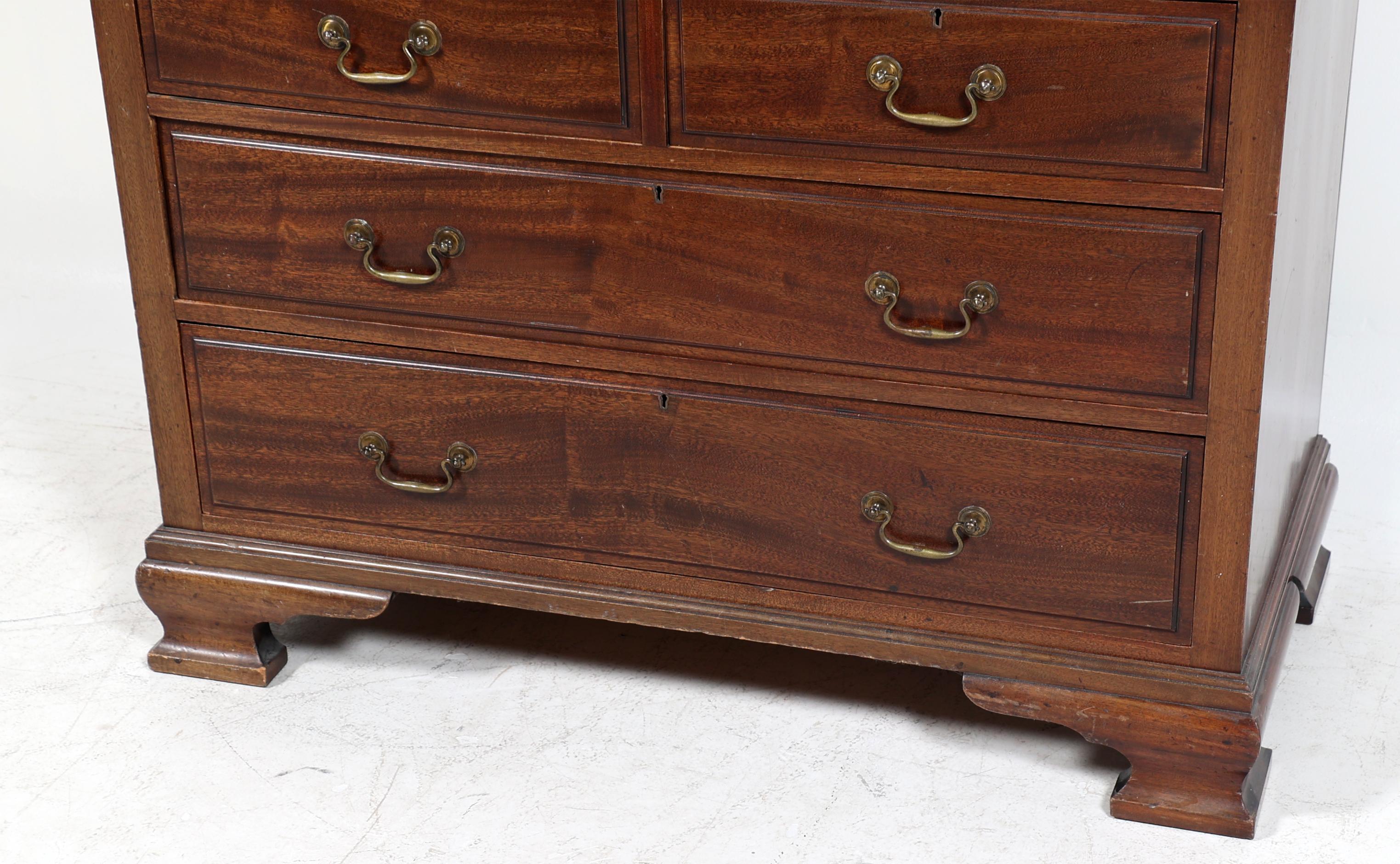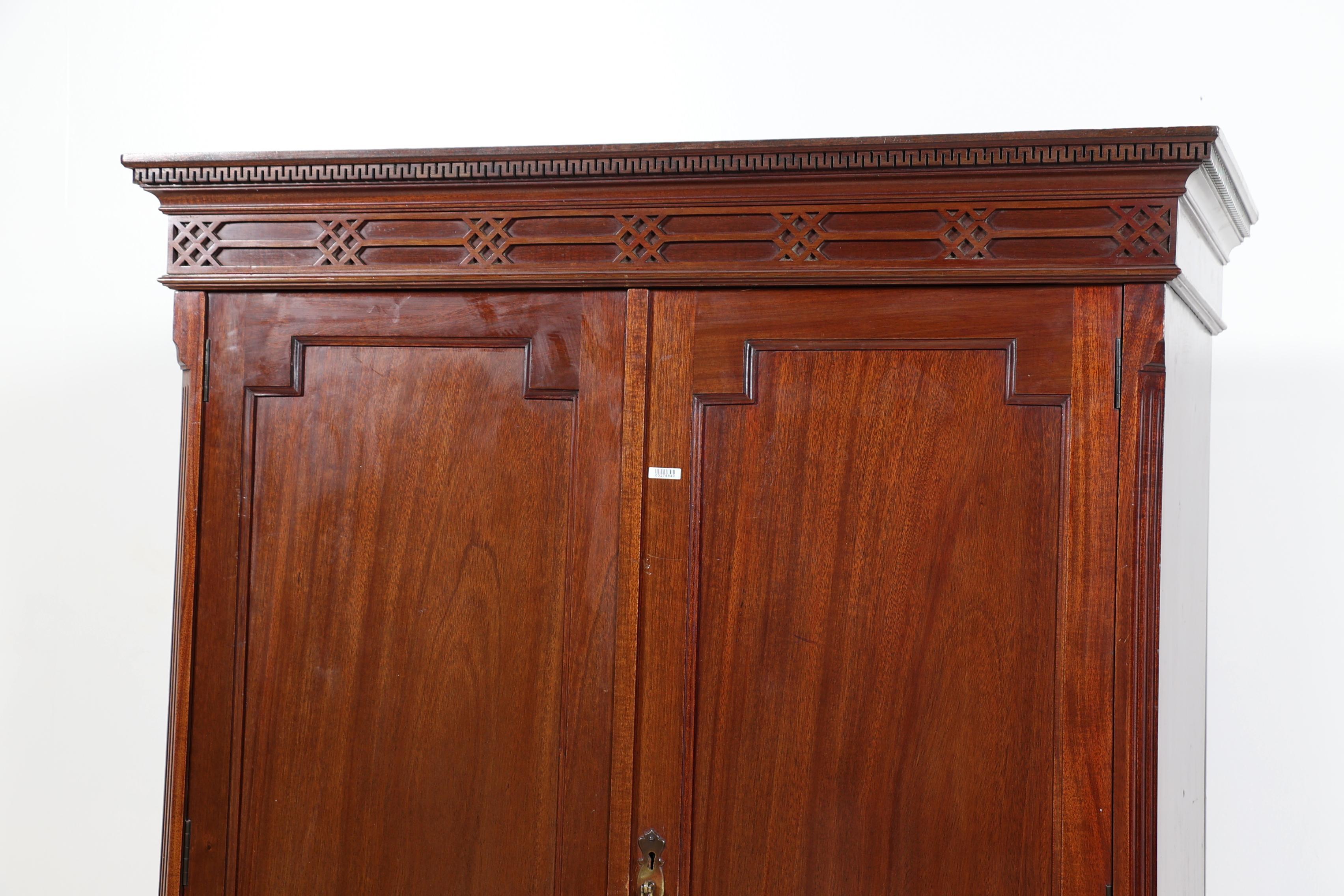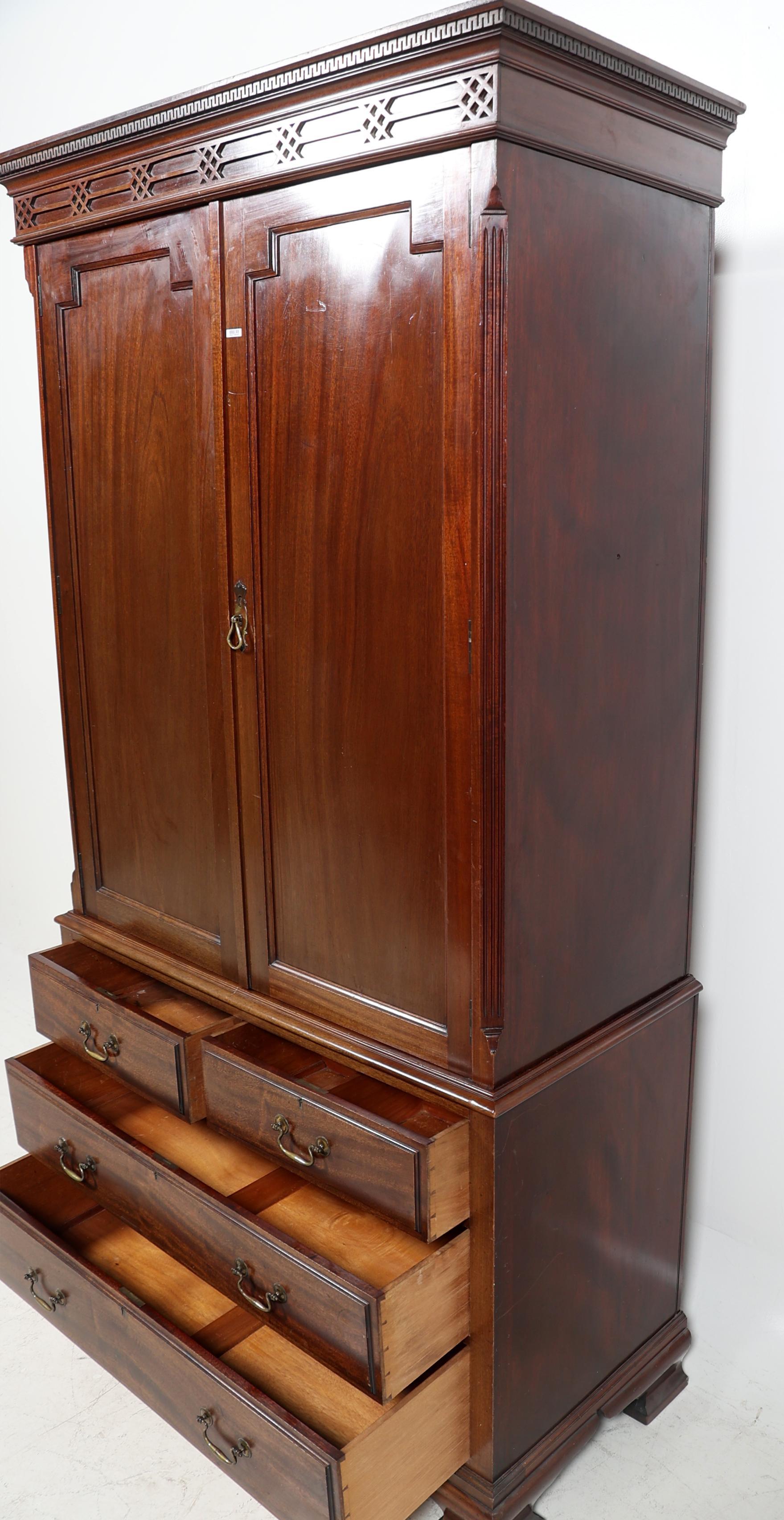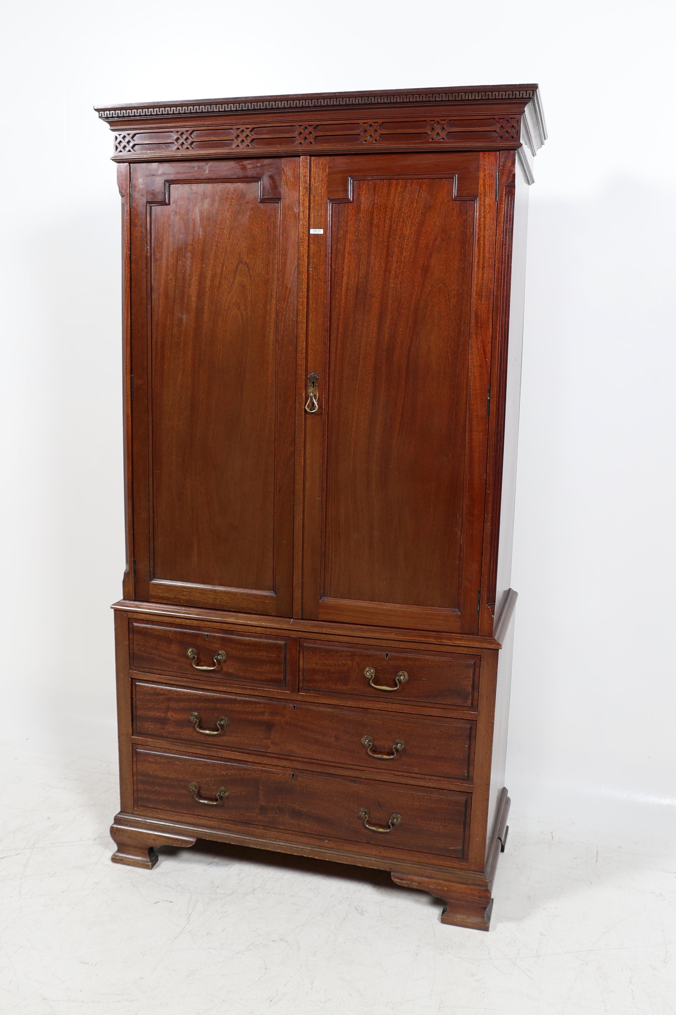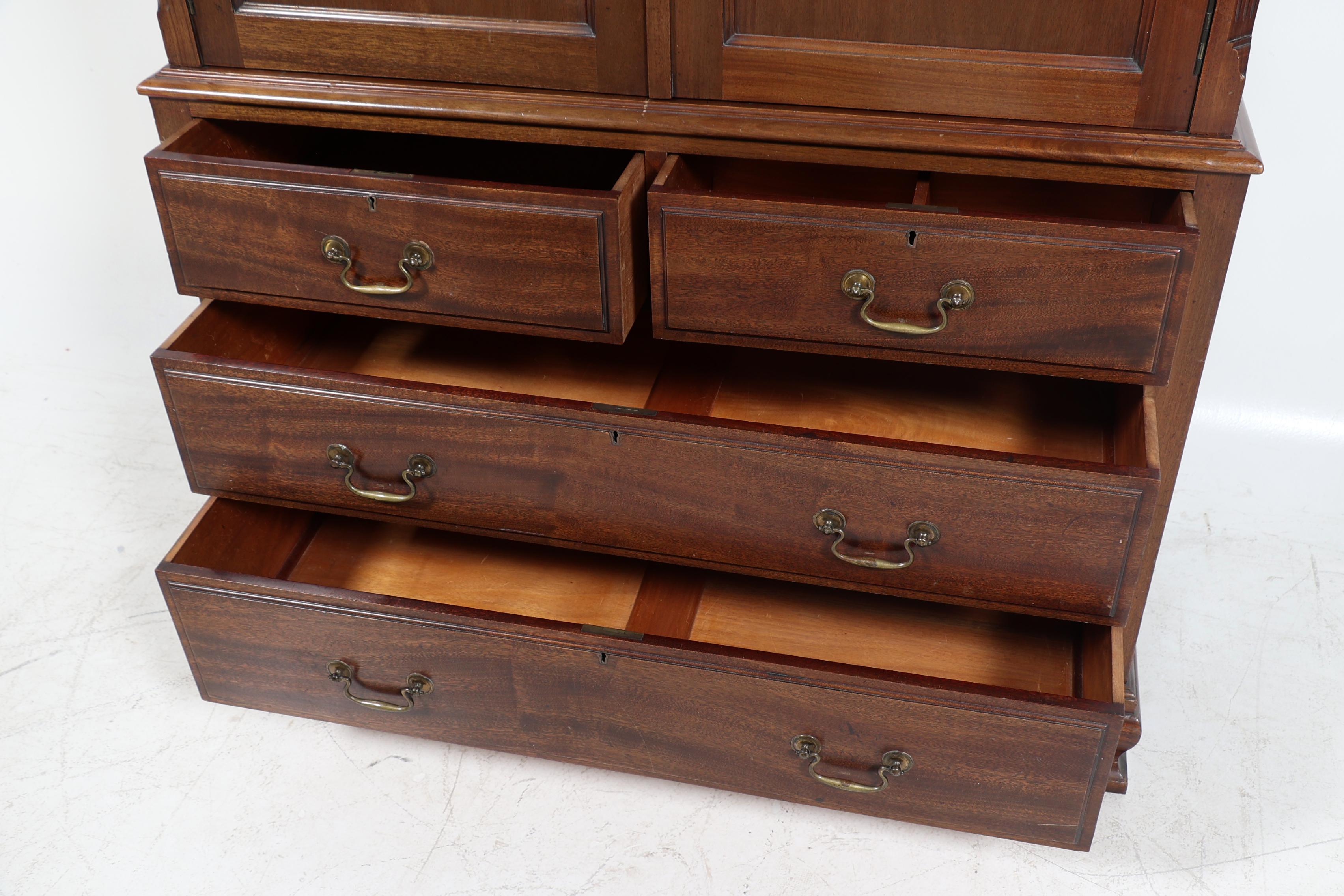 Notenhouten 2-deurs kabinet met 4 laden in de onderkast, h.208 x b.107 x d.52 cm.