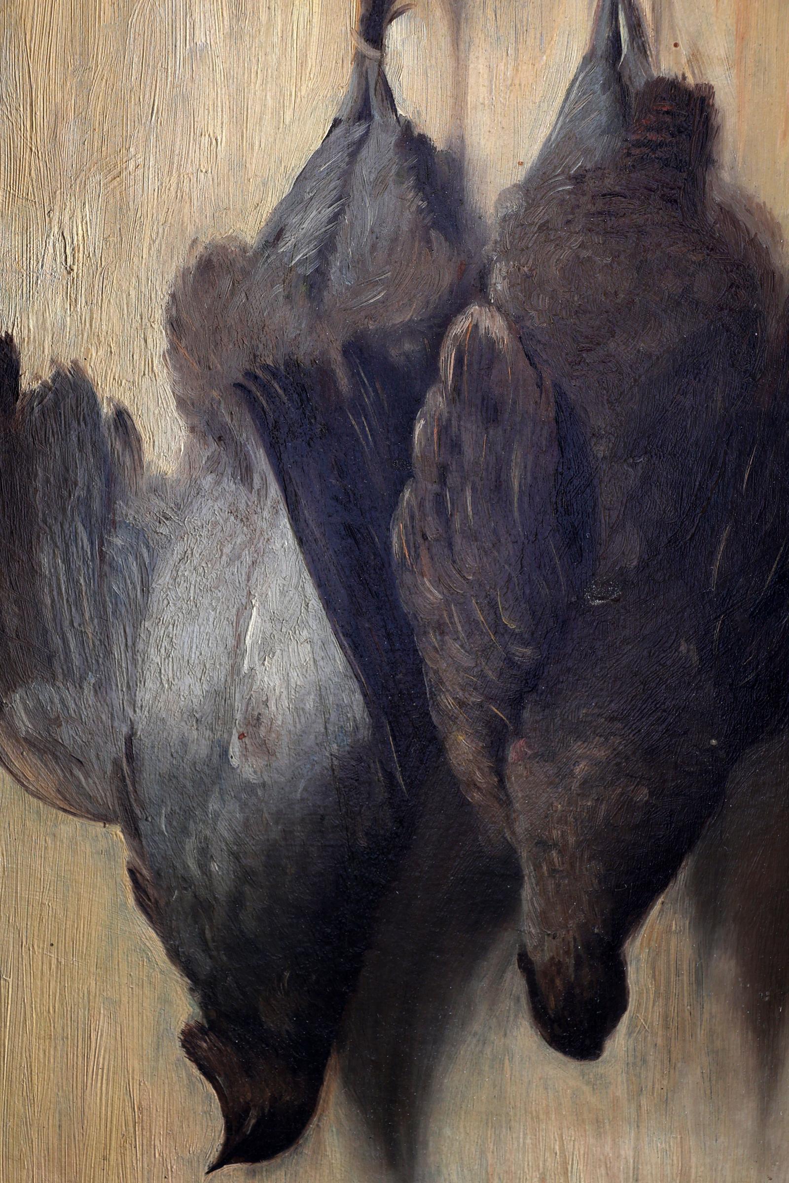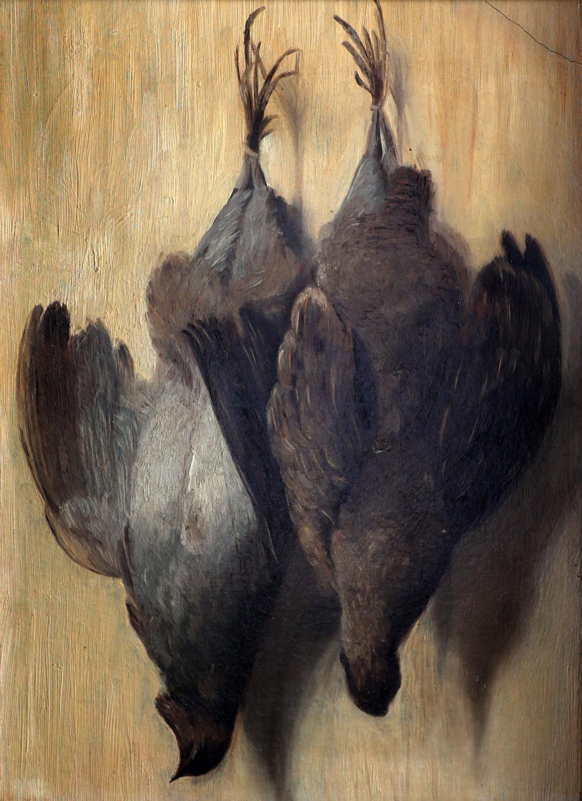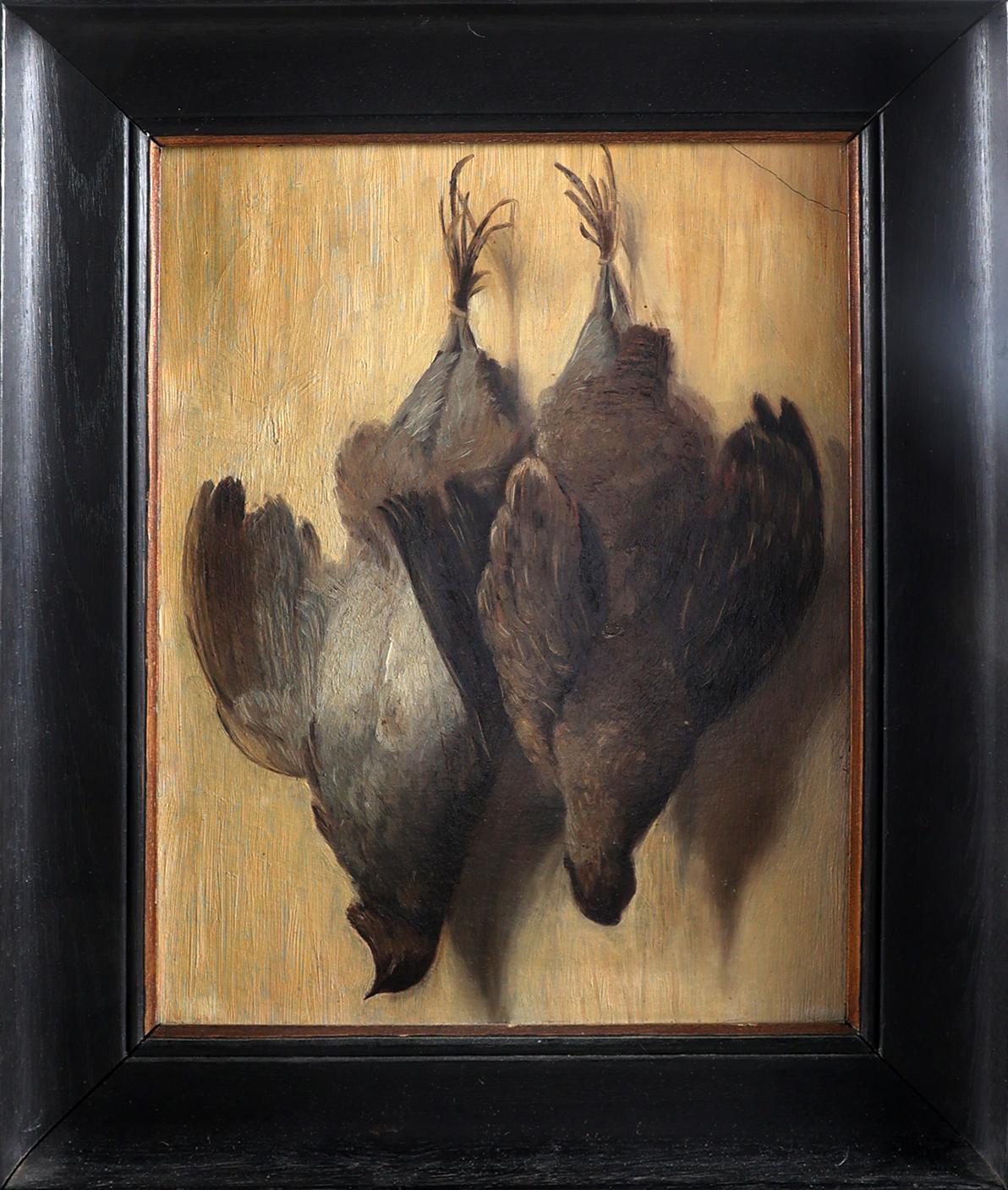 Onb. meester, Stel dode vogels, olieverf op paneel, 32 x 42 cm.(barst in paneel)
