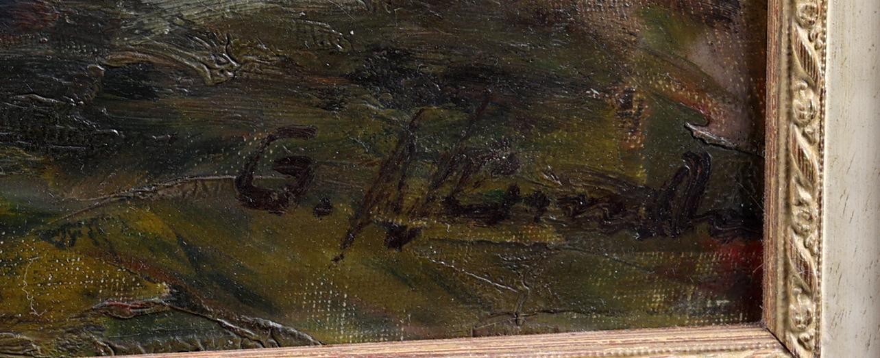 Ond. gesigneerd, Landschap langs de kust, olieverf op doek, 72 x 102 cm. (matige staat)