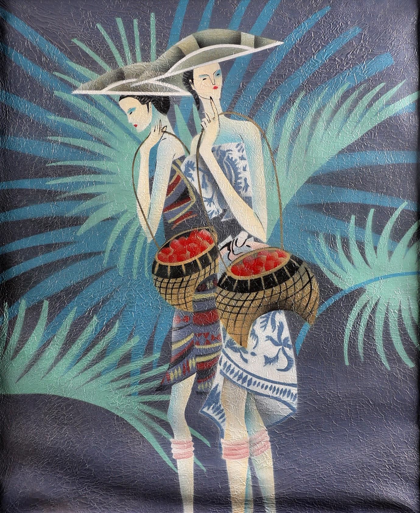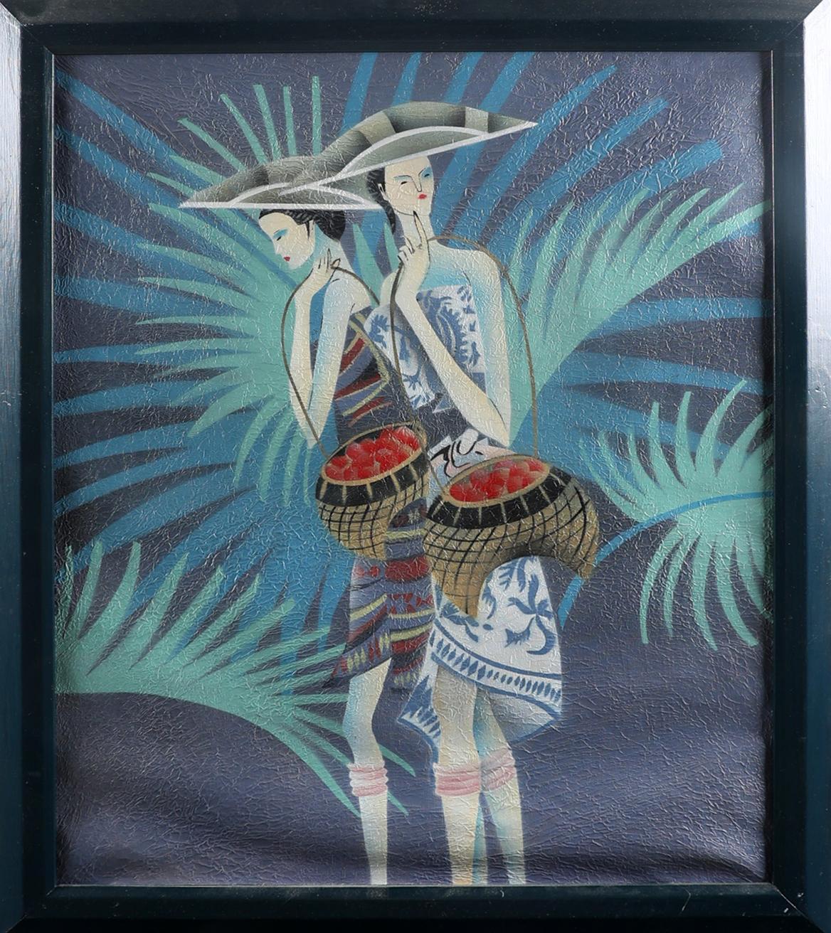 Onb. meester, Twee Oosterse dames, olieverf op doek, 50 x 60 cm.