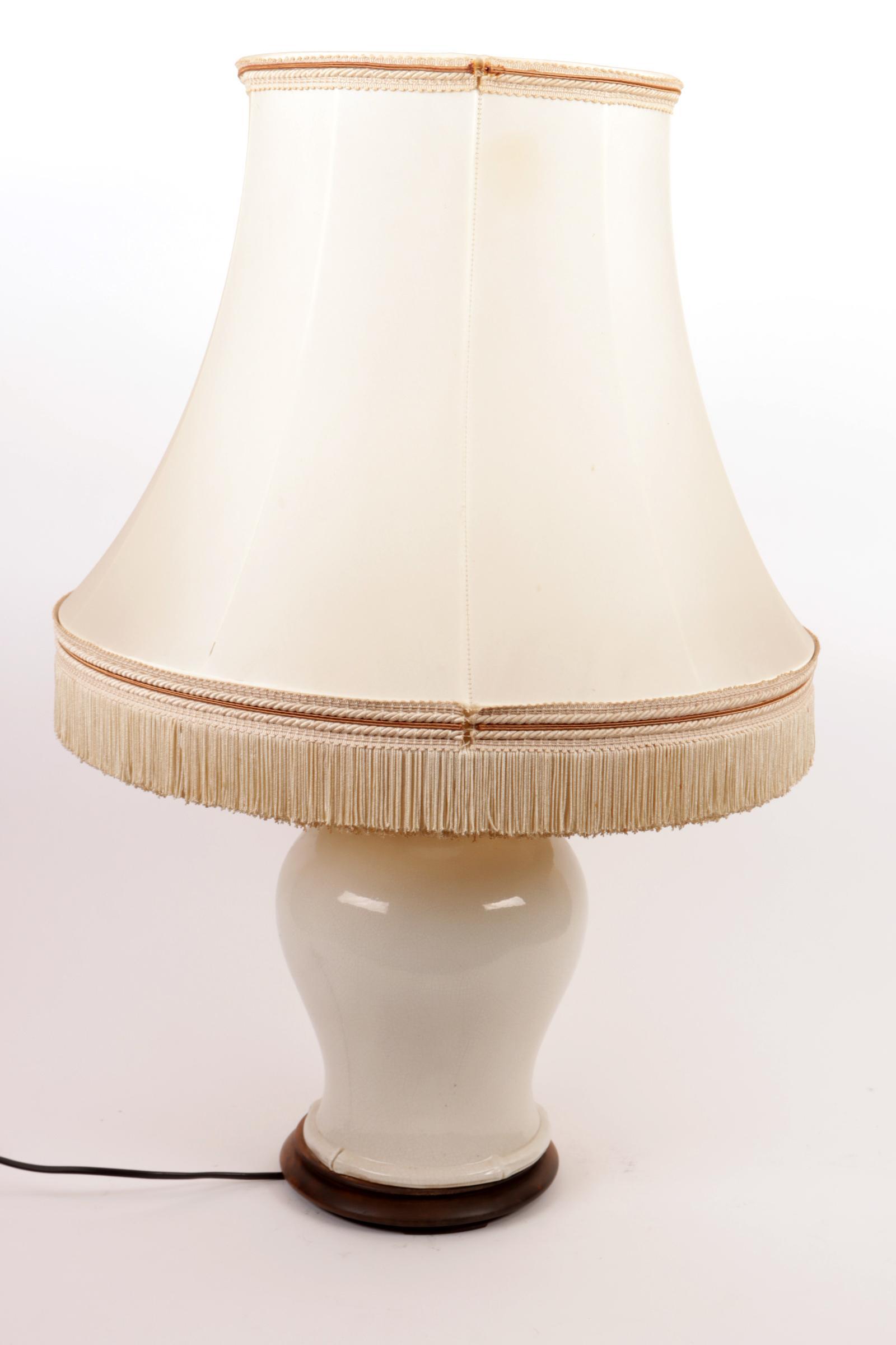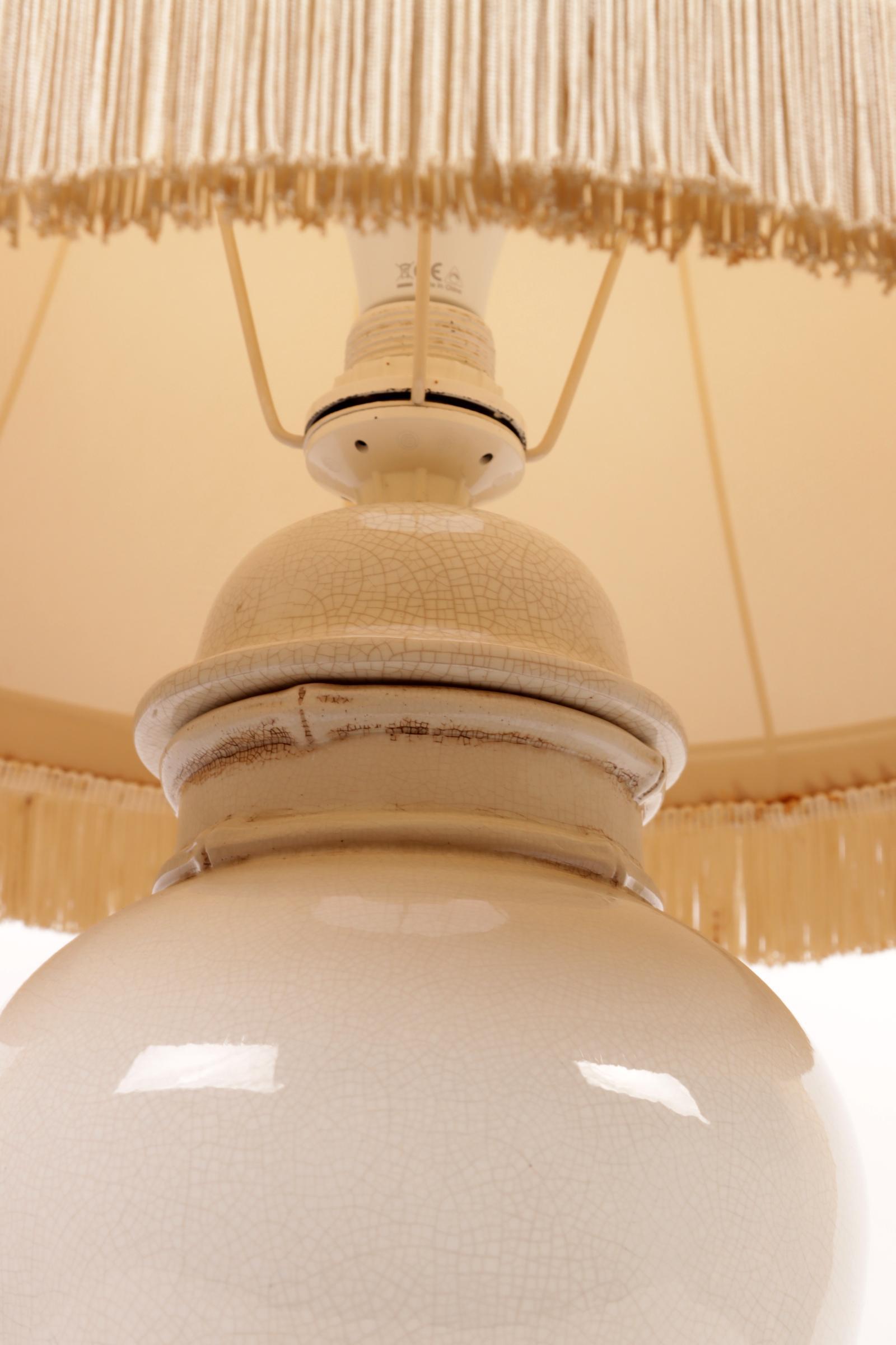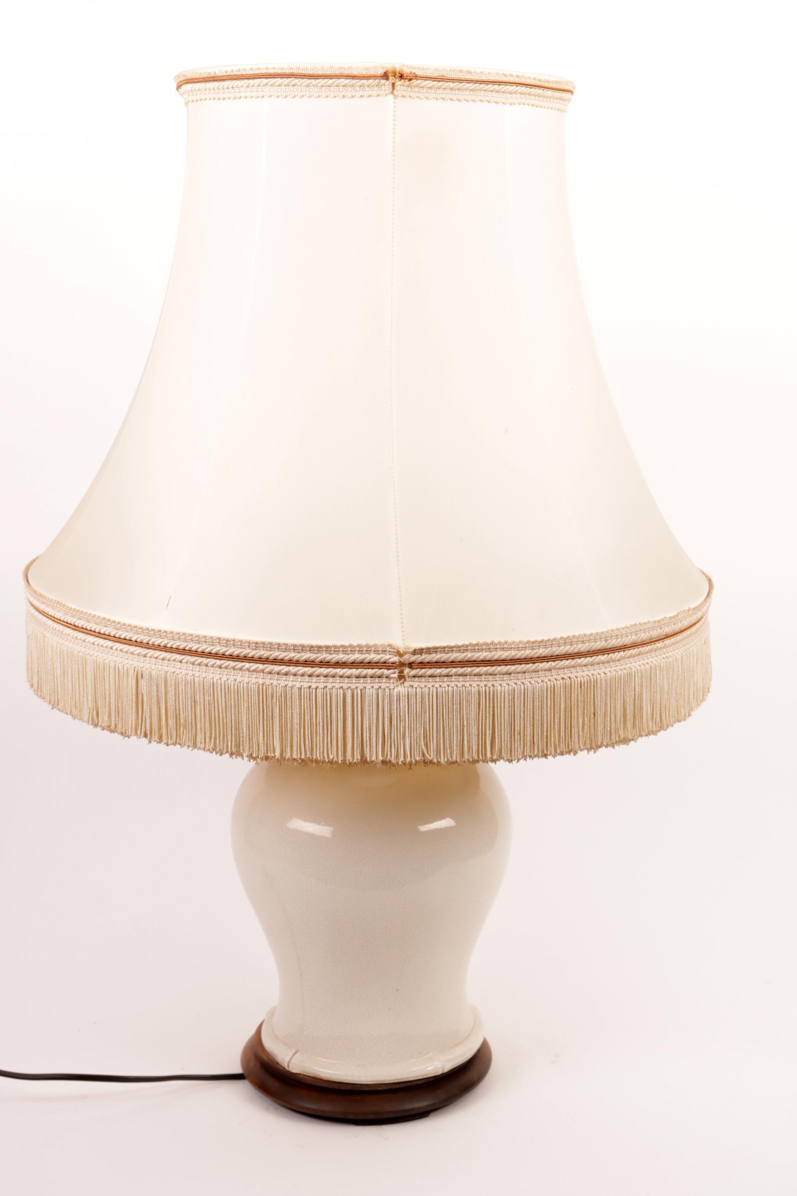 Witte keramiek schemerlampvoet met kap (gelijmd), h.75 cm.