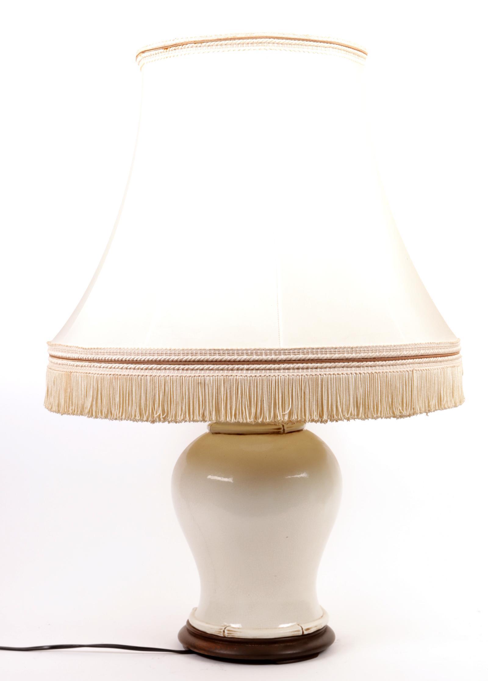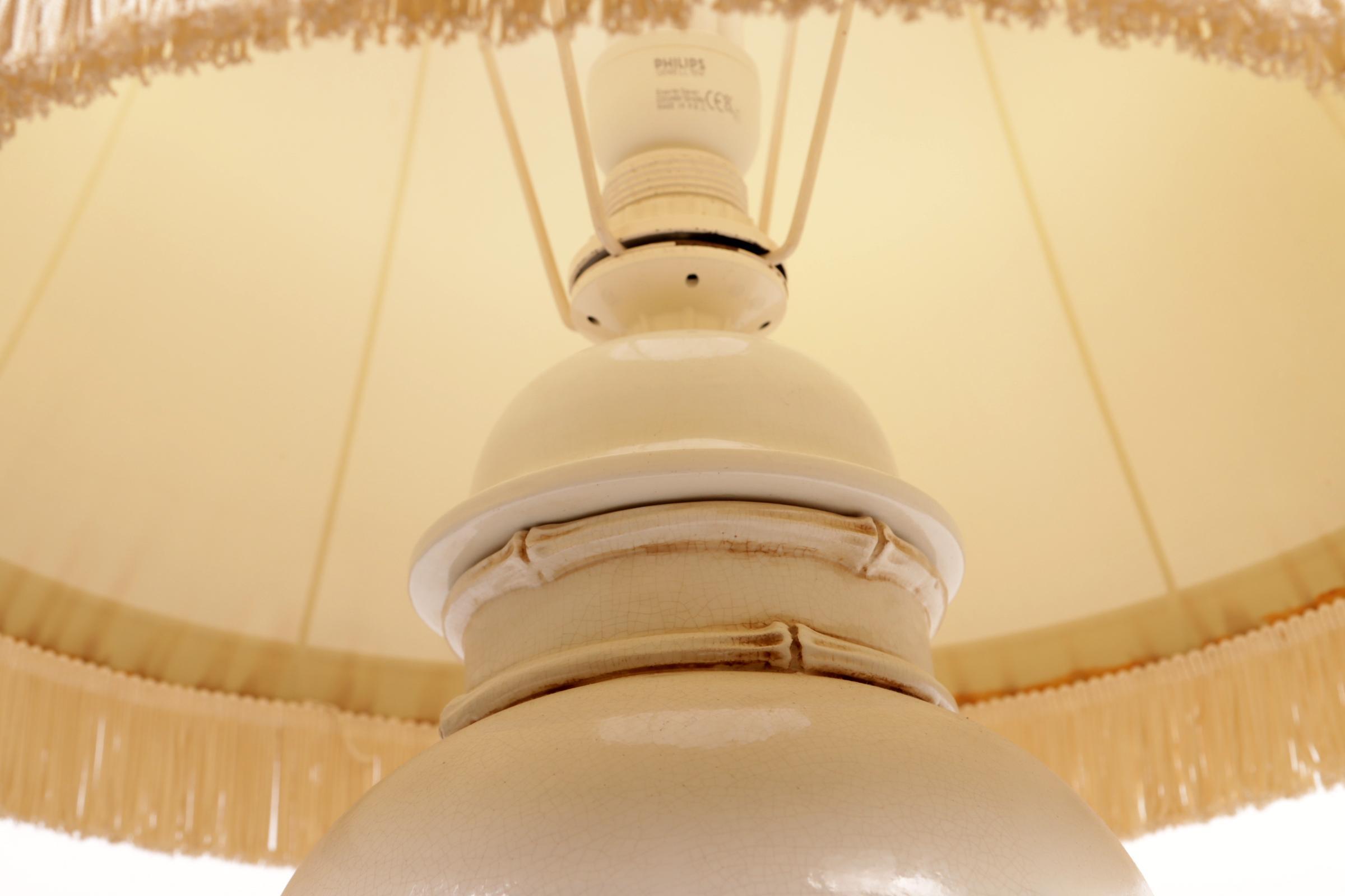 Witte keramiek schemerlampvoet met kap h.75 cm.