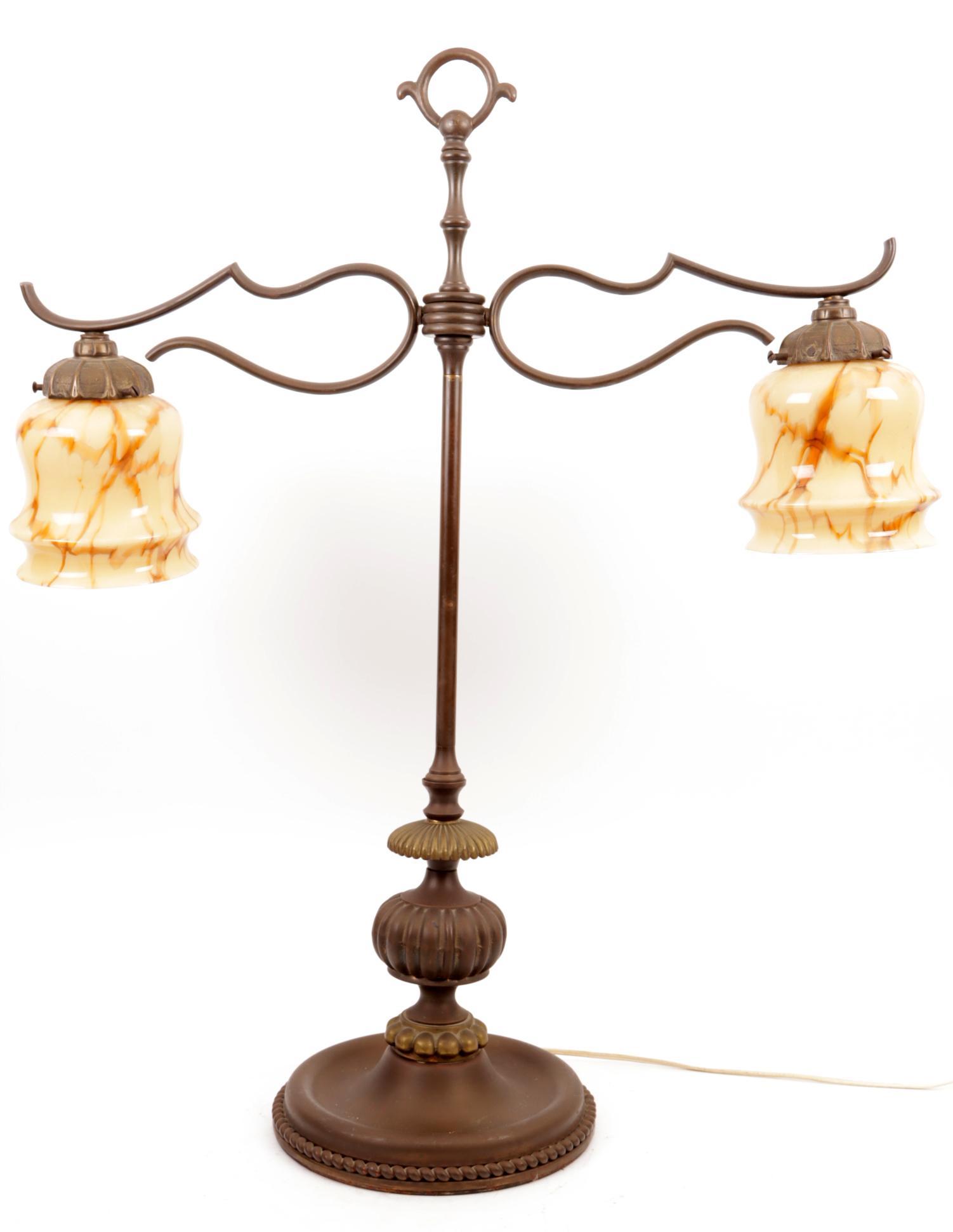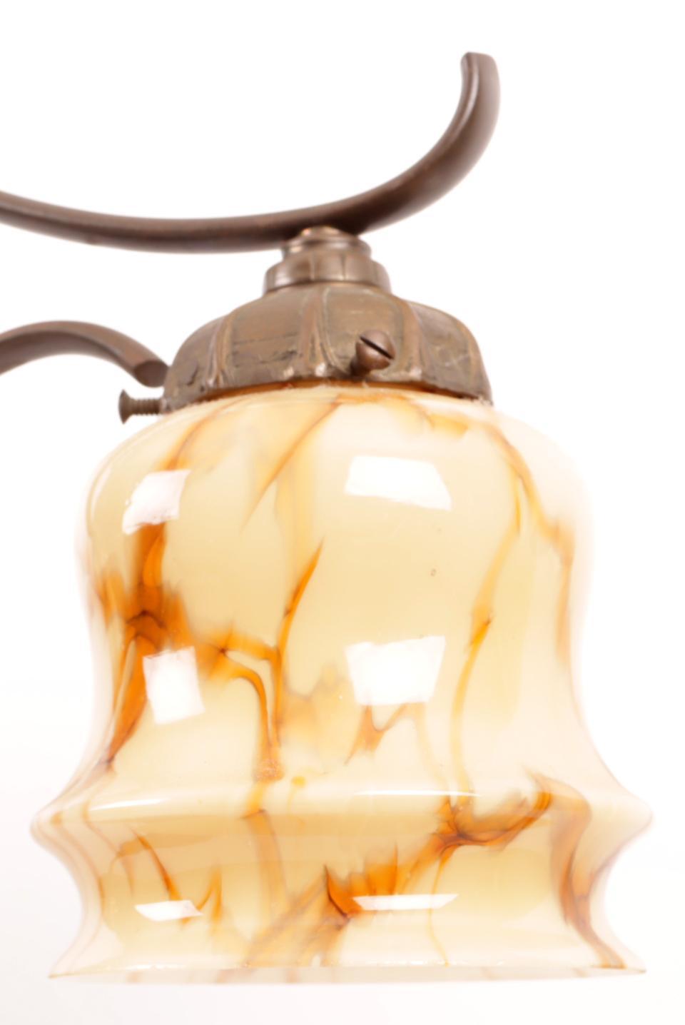 Koperen schemerlampvoet met kelkkappen, h.68 x b.66 cm.
