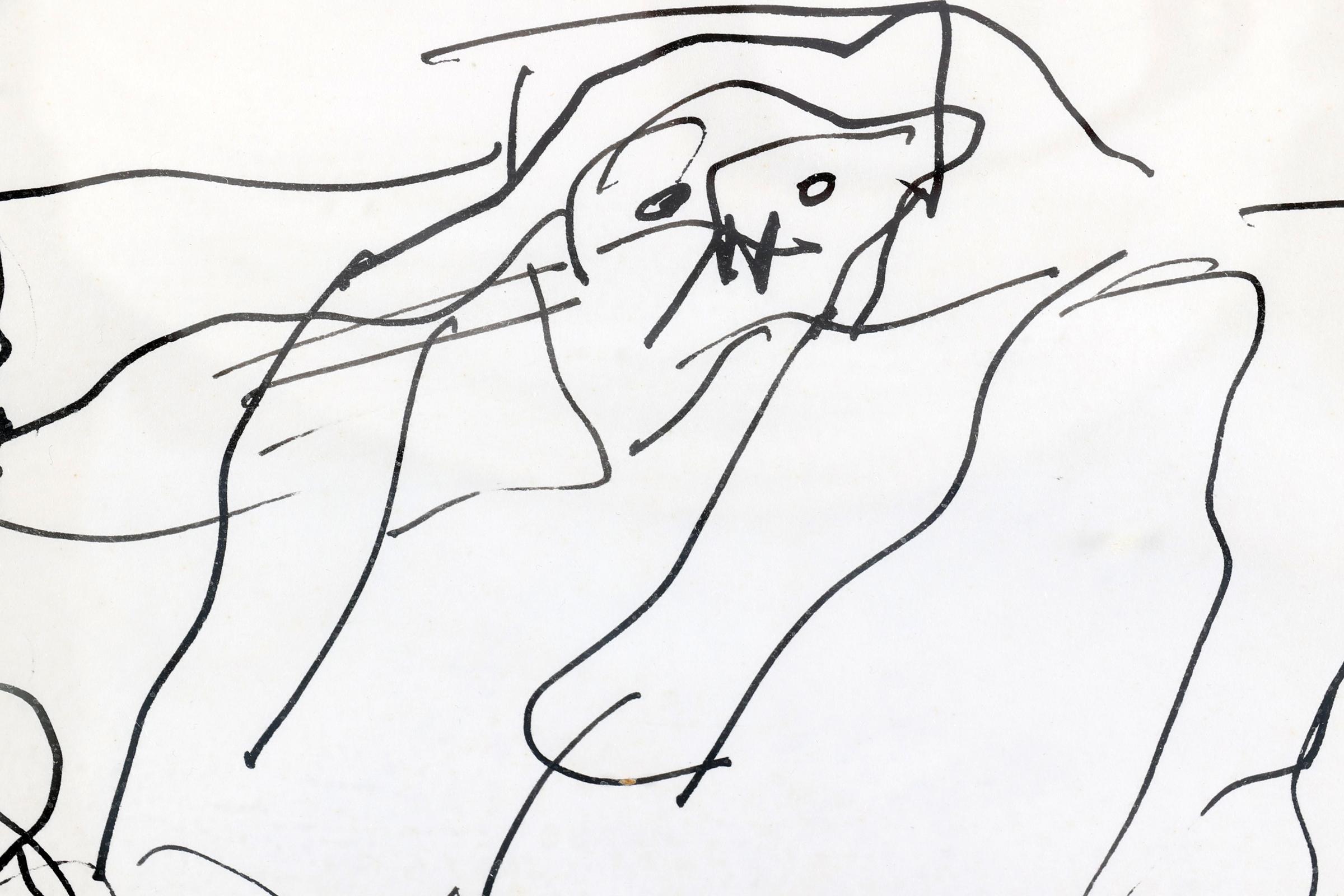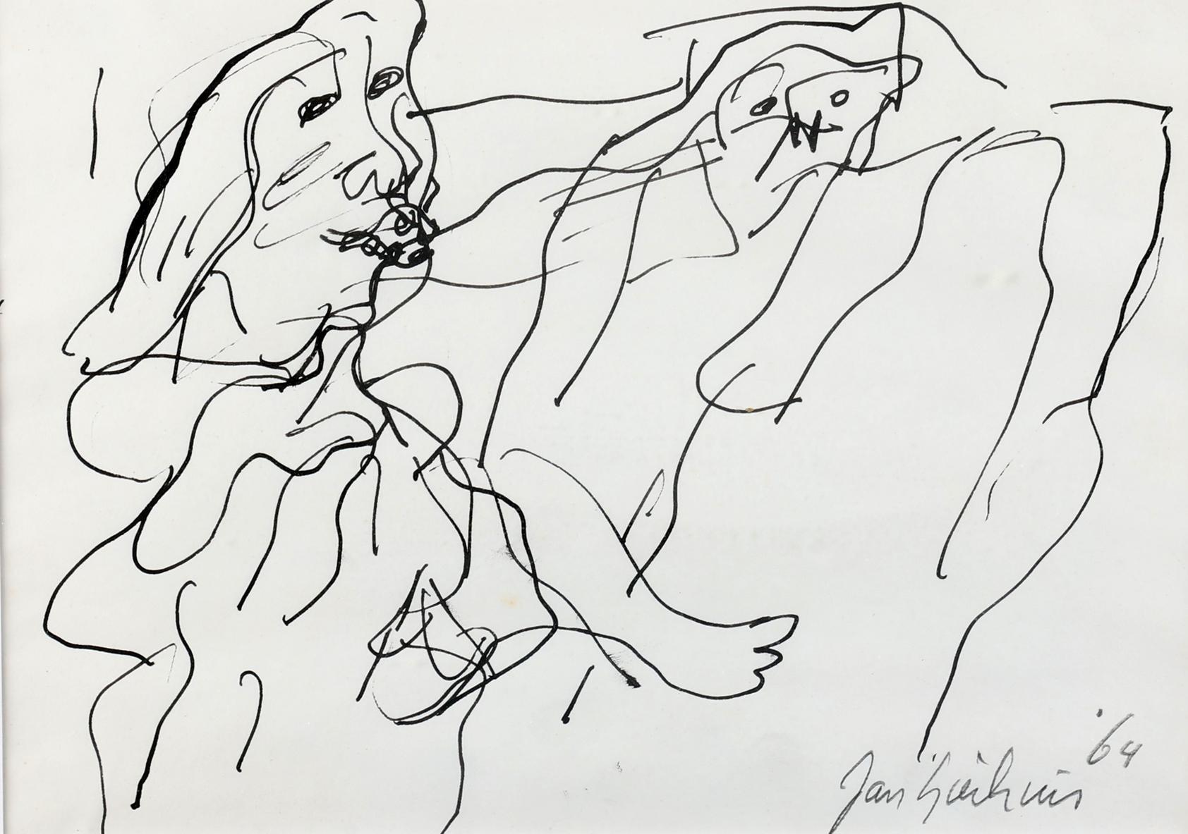 Johannes Alphonsus (Jan) Sierhuis (1928-2023), Personen, inkt op papier, gedateerd ´64, 20 x 28,5 cm.