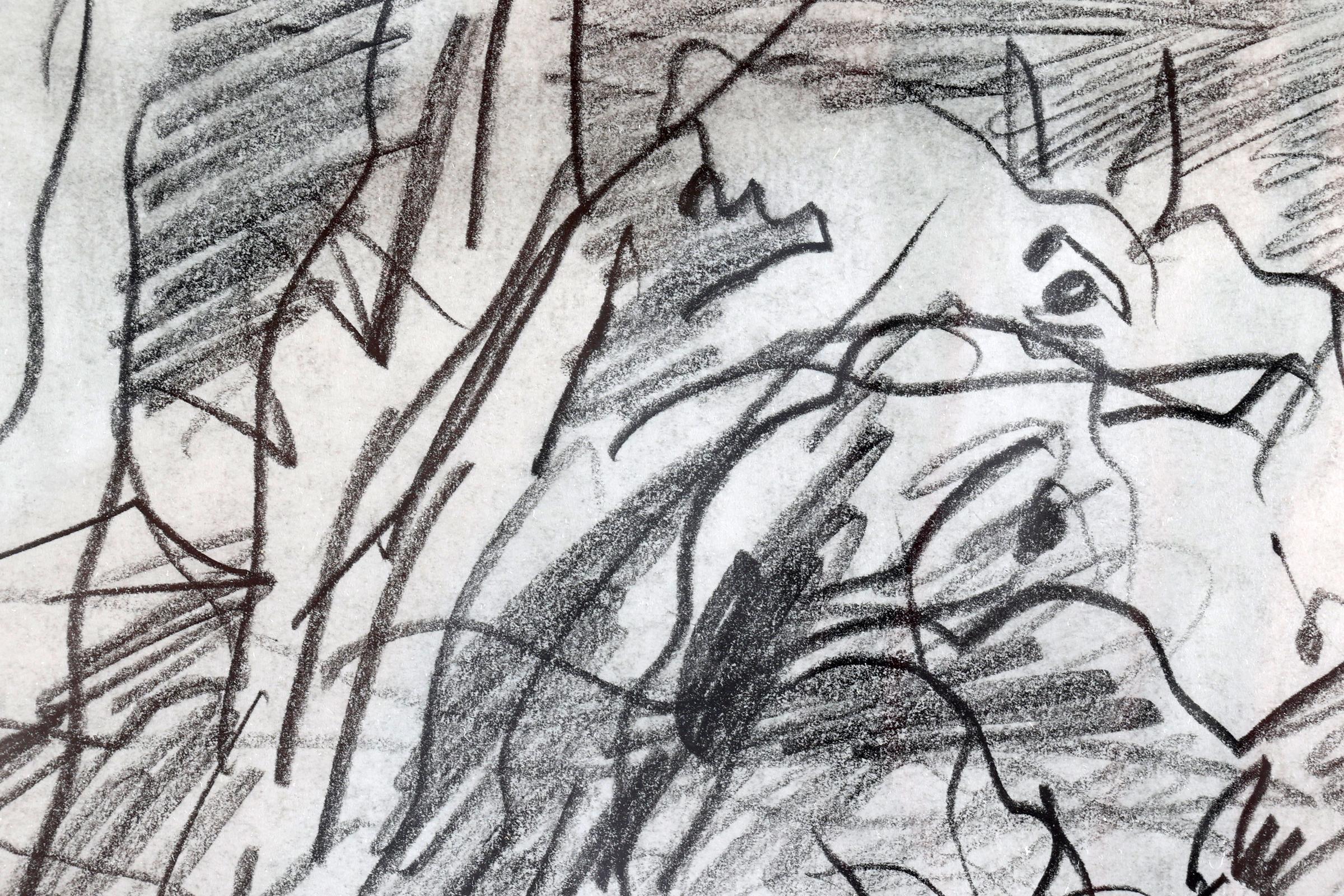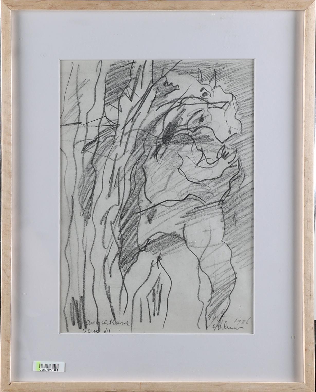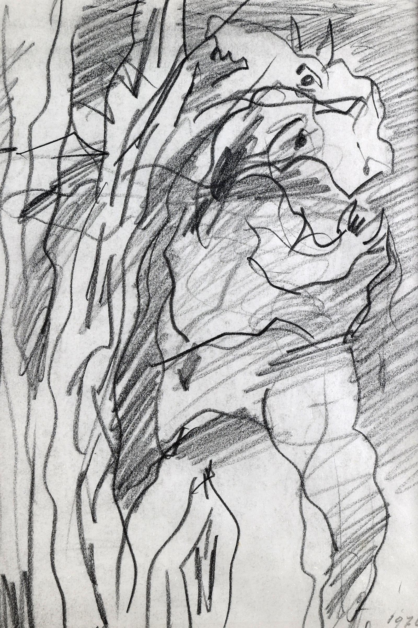 Johannes Alphonsus (Jan) Sierhuis (1928-2023), Fantasiefiguur, houtskooltekening, gedateerd 1976, 28 x 20,5 cm.