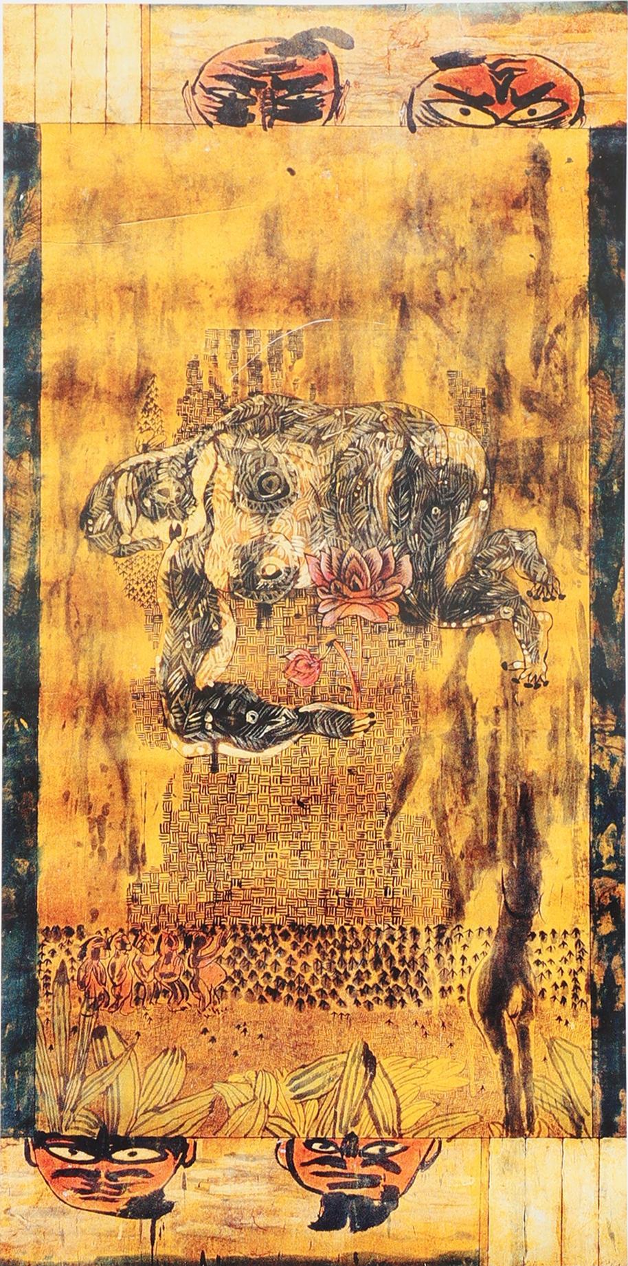 Zhuang Hong Yi (1962), Het monumentale werk van Zhuang Hong Yi, zeefdruk met publicatie, 2006, gedrukt in de grafische werkplaats van Atelier '92, door Fons van Hamersveld en Efraïm Milikowski, 100 x 210 cm. op Biotop 250 gram, genummerd en gesigneerd, oplage 66/100, catalogus en zeefdruk in linnen cassette met opdruk, 35 x 55 cm.