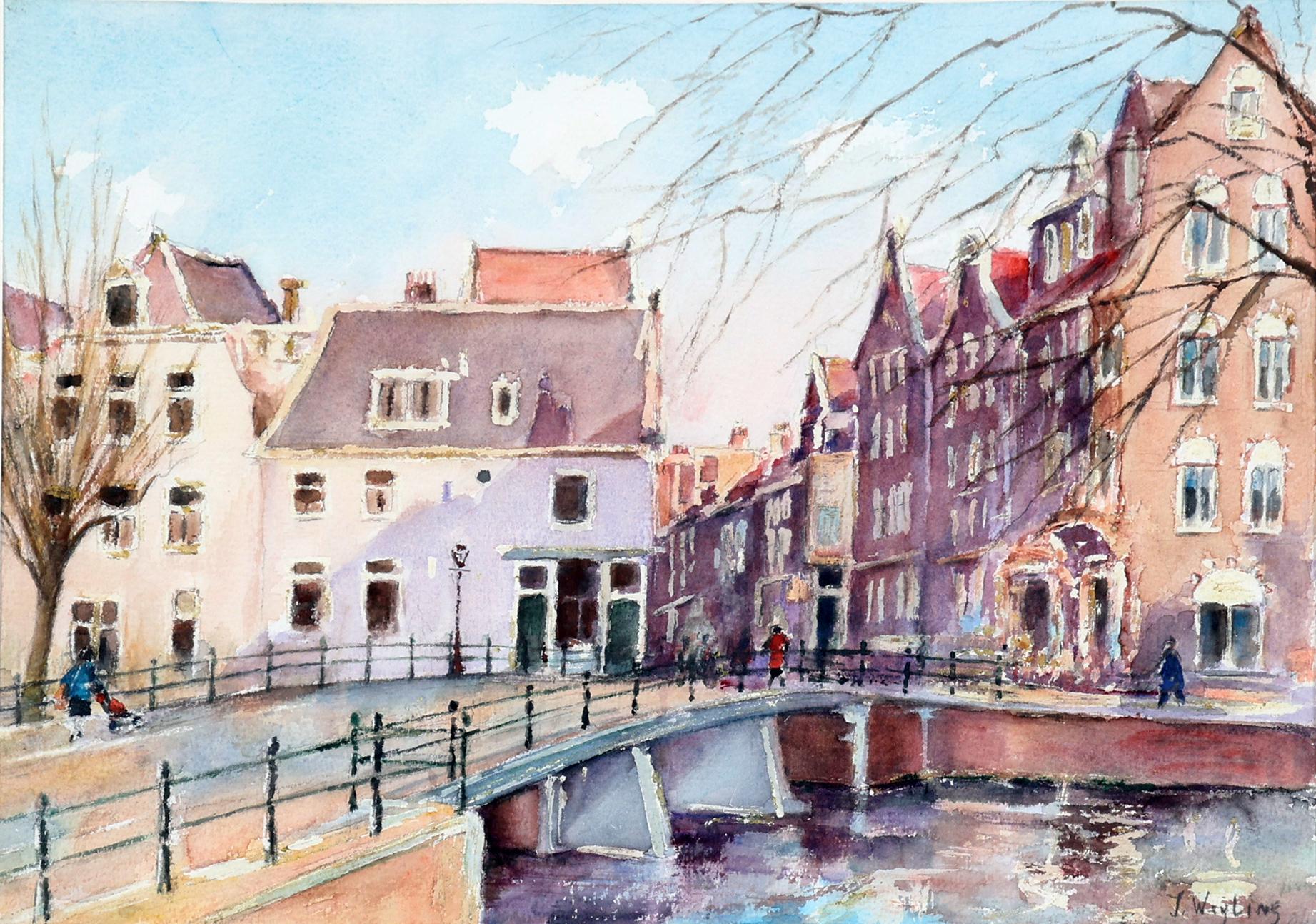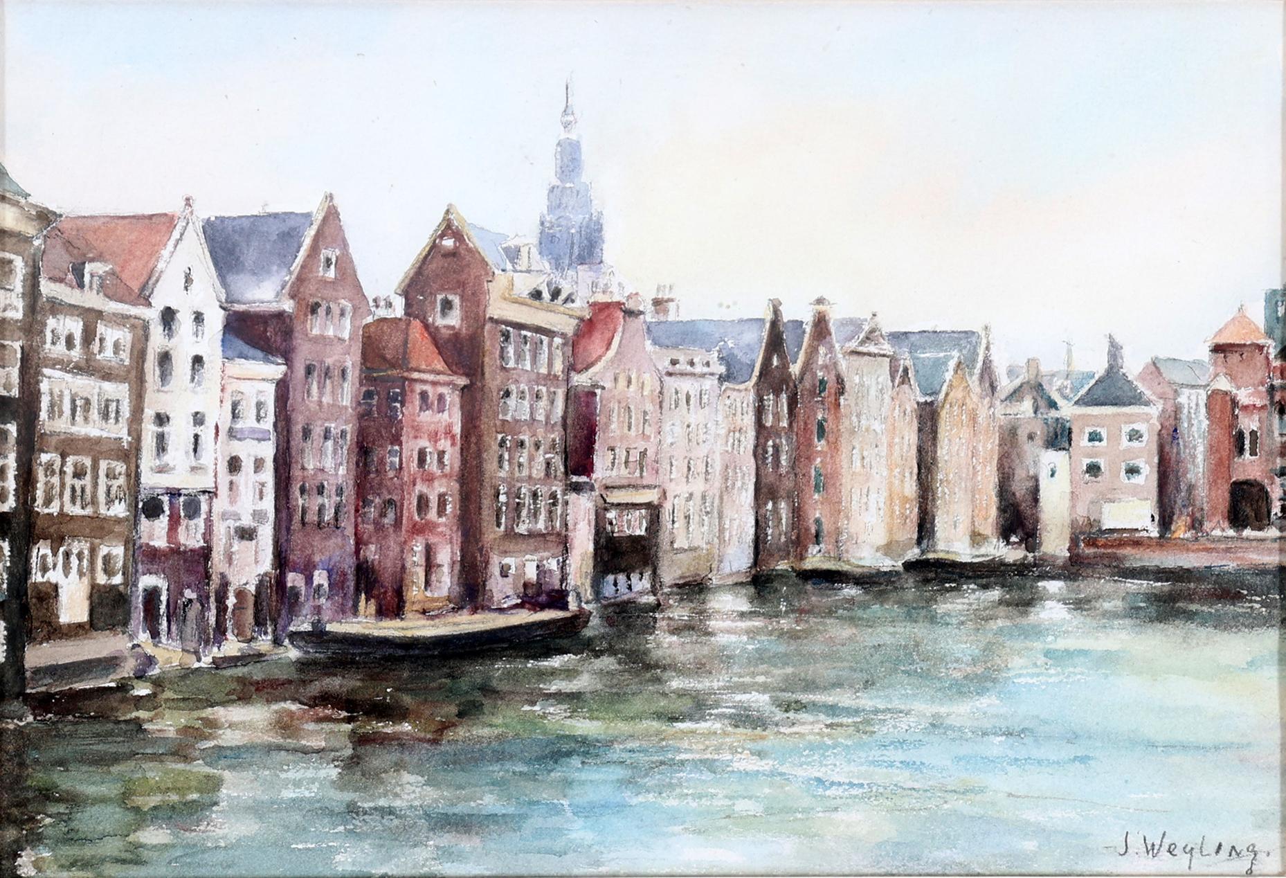 J. Welling, 4 Amsterdamse stadsgezichten, aquarellen, 36 x 29 cm.