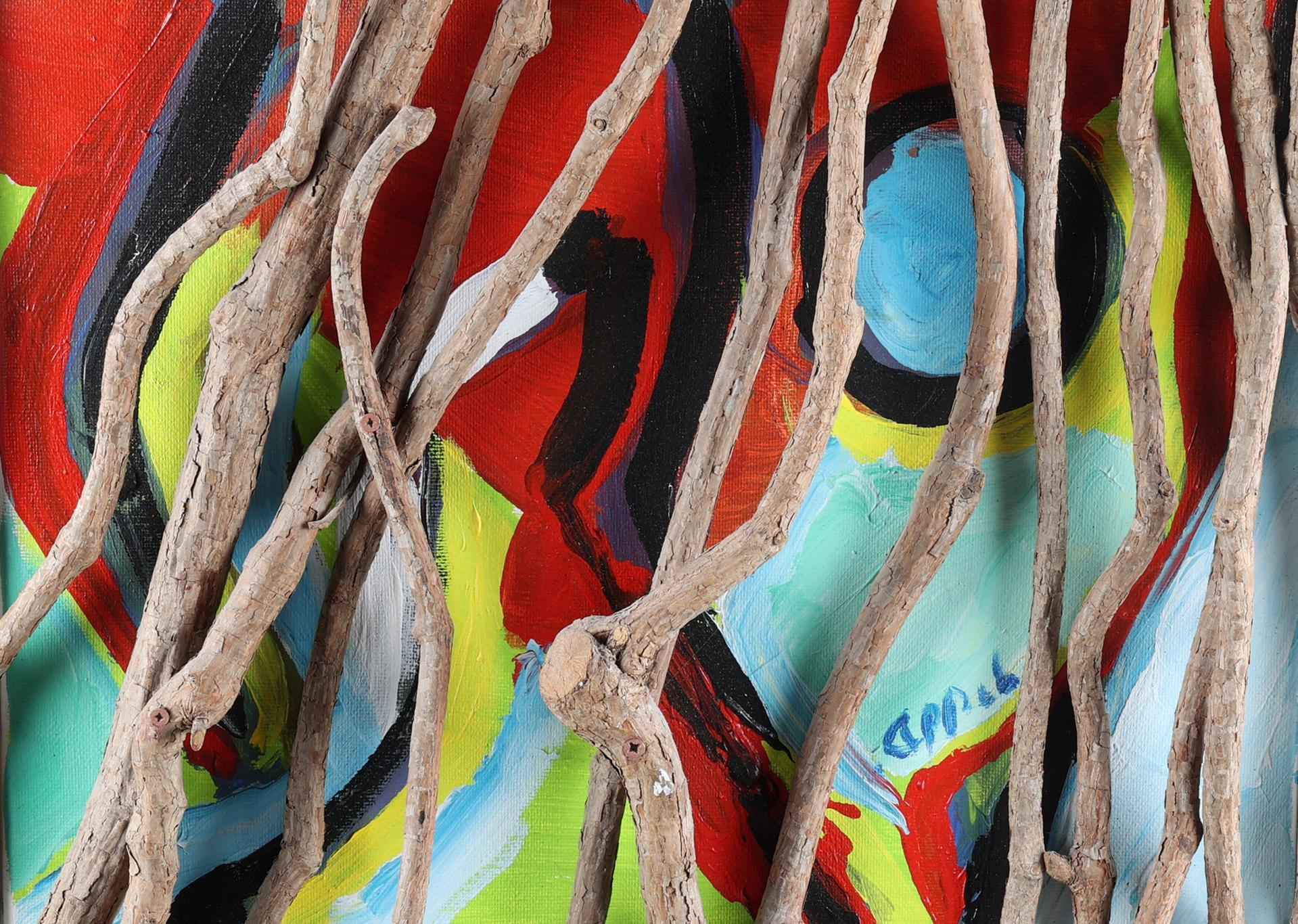 Christiaan (Karel) Appel (1921-2006), Tuinen Amsterdam gezien door het Amsterdamse bos, acryl en hout op doek, gedateerd 2004, 53 x 46 x 7 cm. Provenance: privé collectie / rechtstreeks verworven van de kunstenaar door diens tuinman (nota bene: het kunstwerk is geregistreerd bij de Karel Appel Foundation onder nummer KA.2004.26