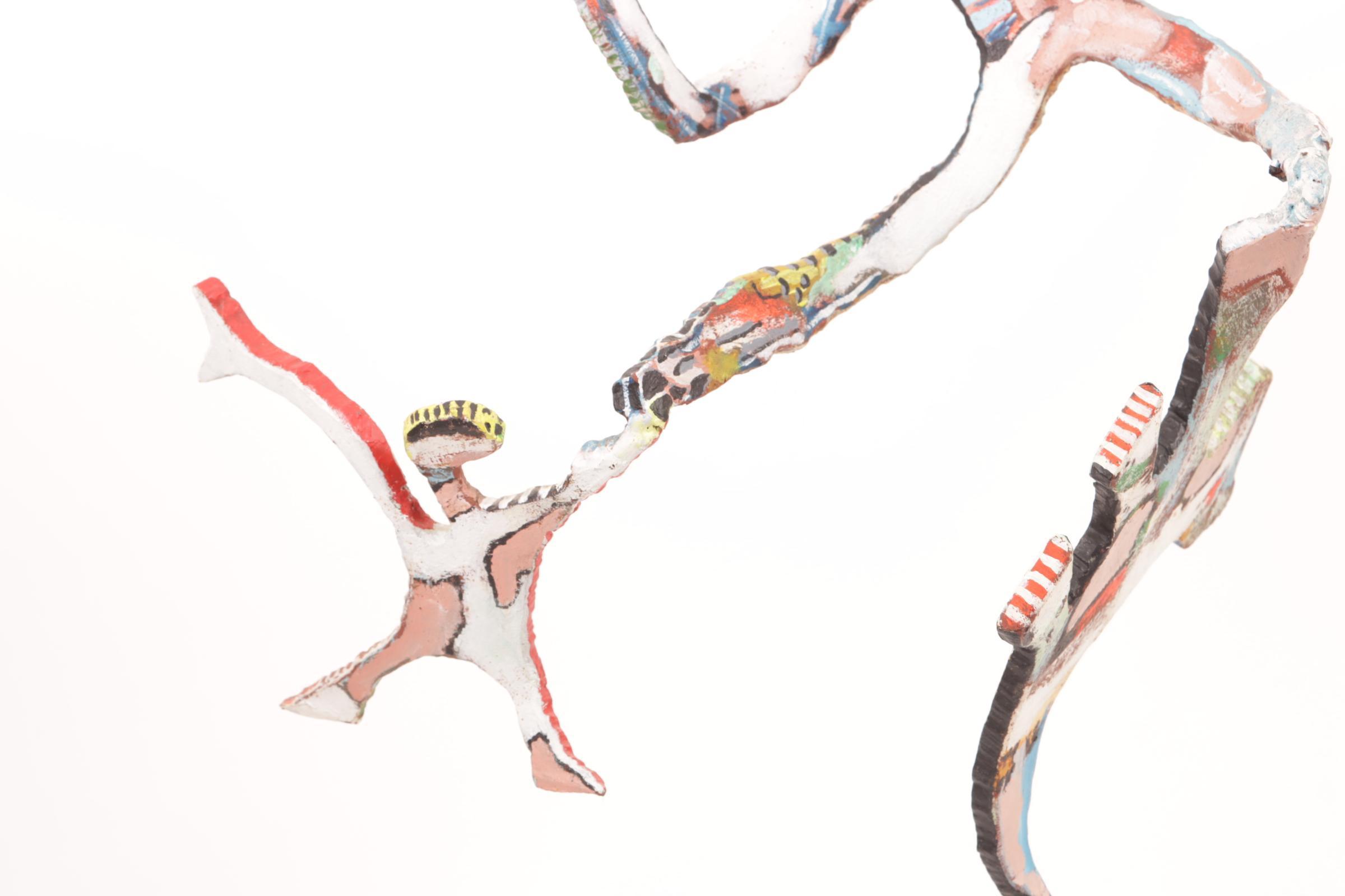 Frans Muhren (1949), polychroom beschilderde metalen abstracte sculptuur, h.74 cm.