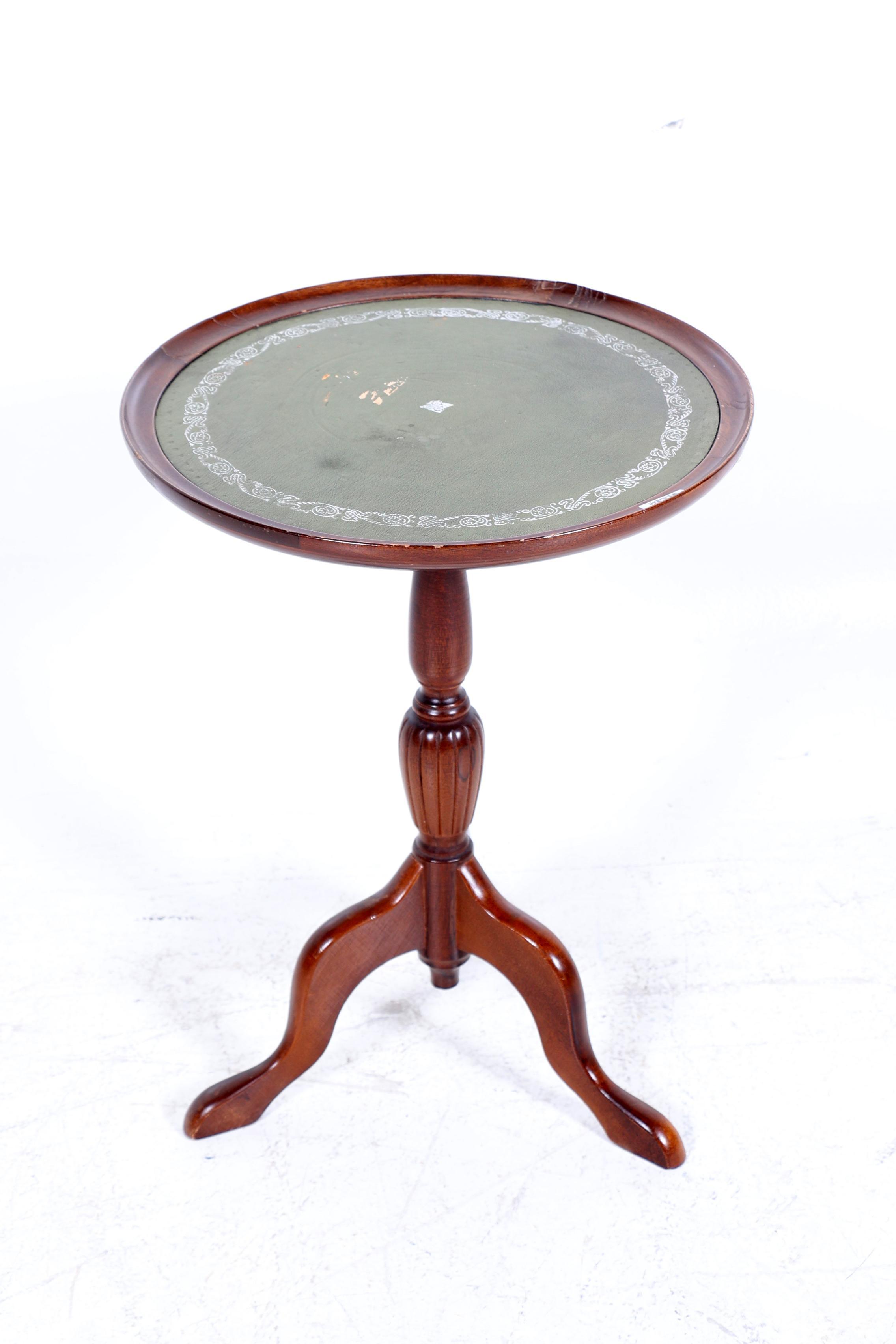Ingelegde notenhouten wijntafel, h.52 cm., diam. 39 cm.