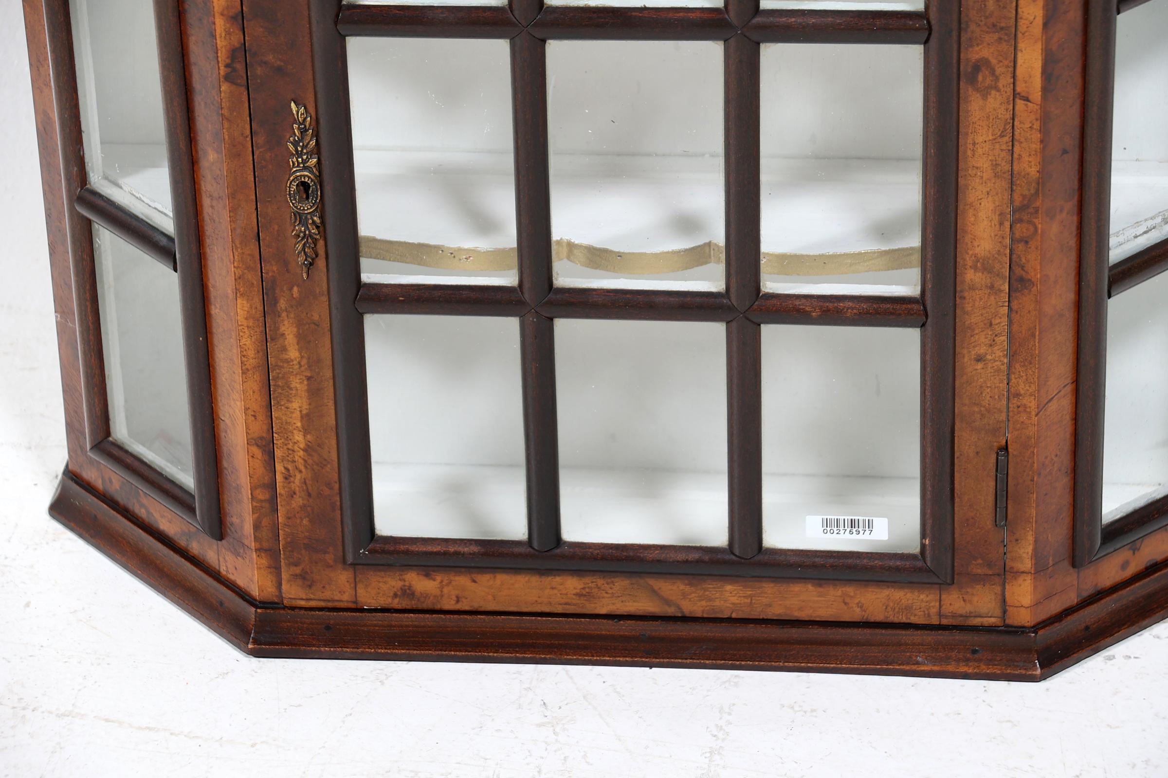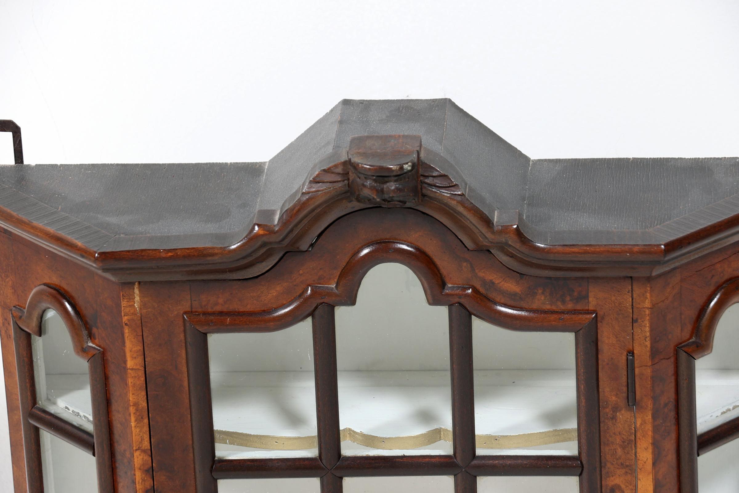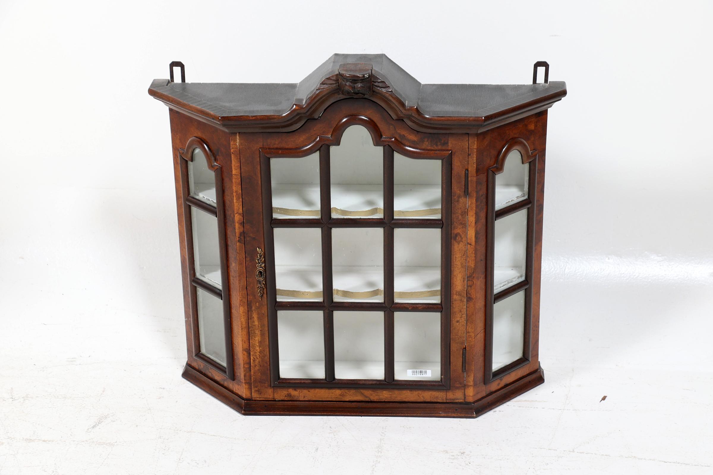 Wortelnotenhouten 1-deurs hangvitrinekastje, h.50 x b.52 x d.17 cm.