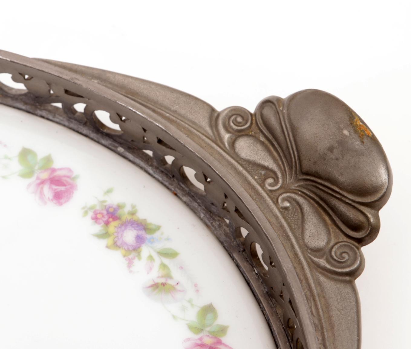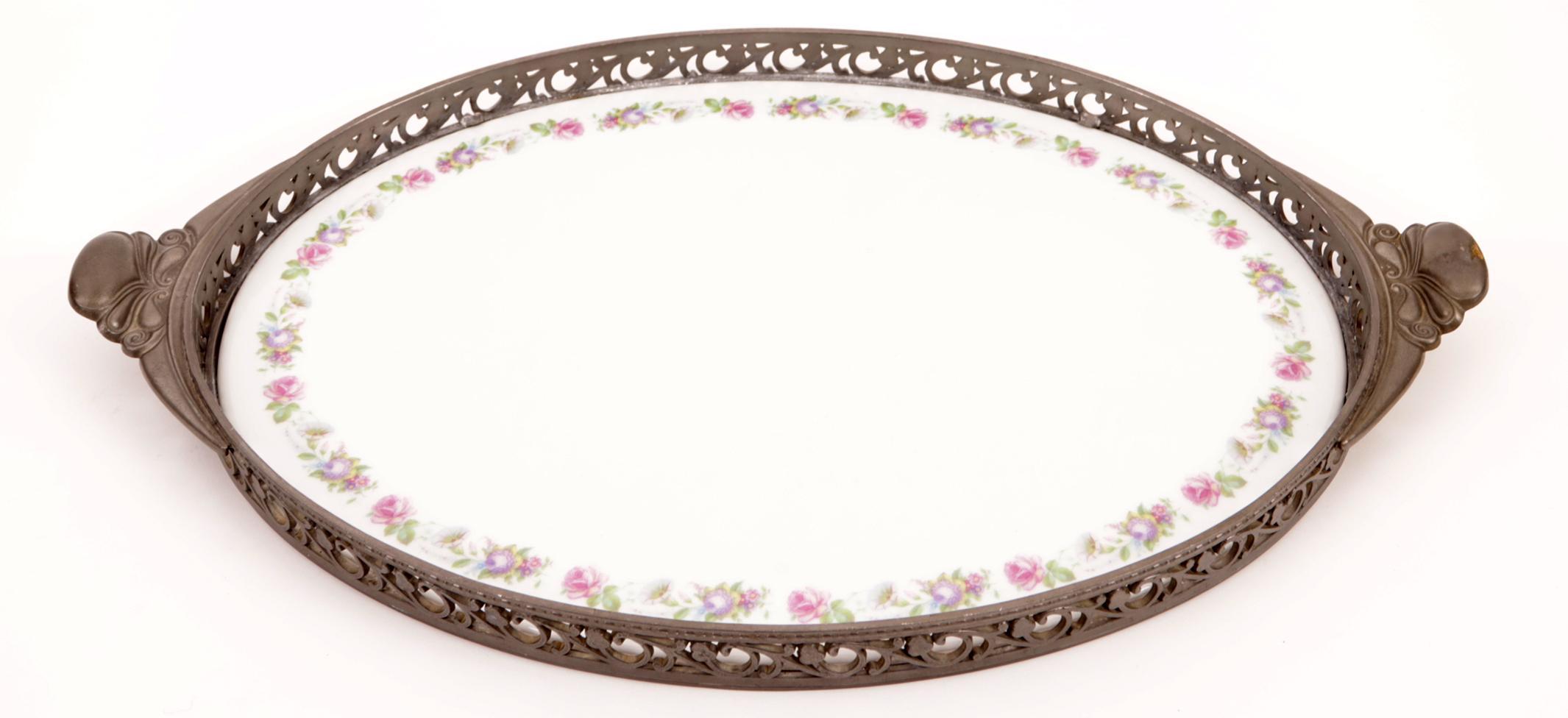 Porseleinen dienblad met tinnen rand