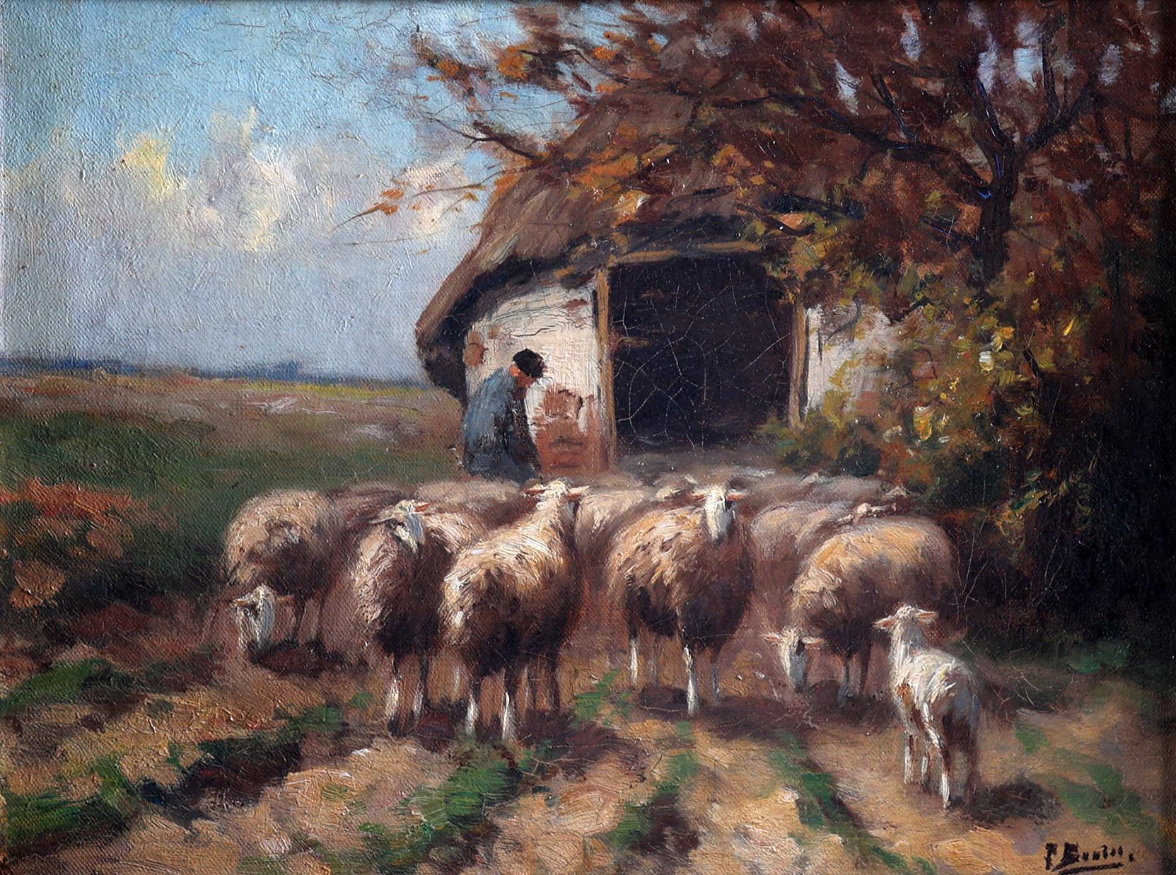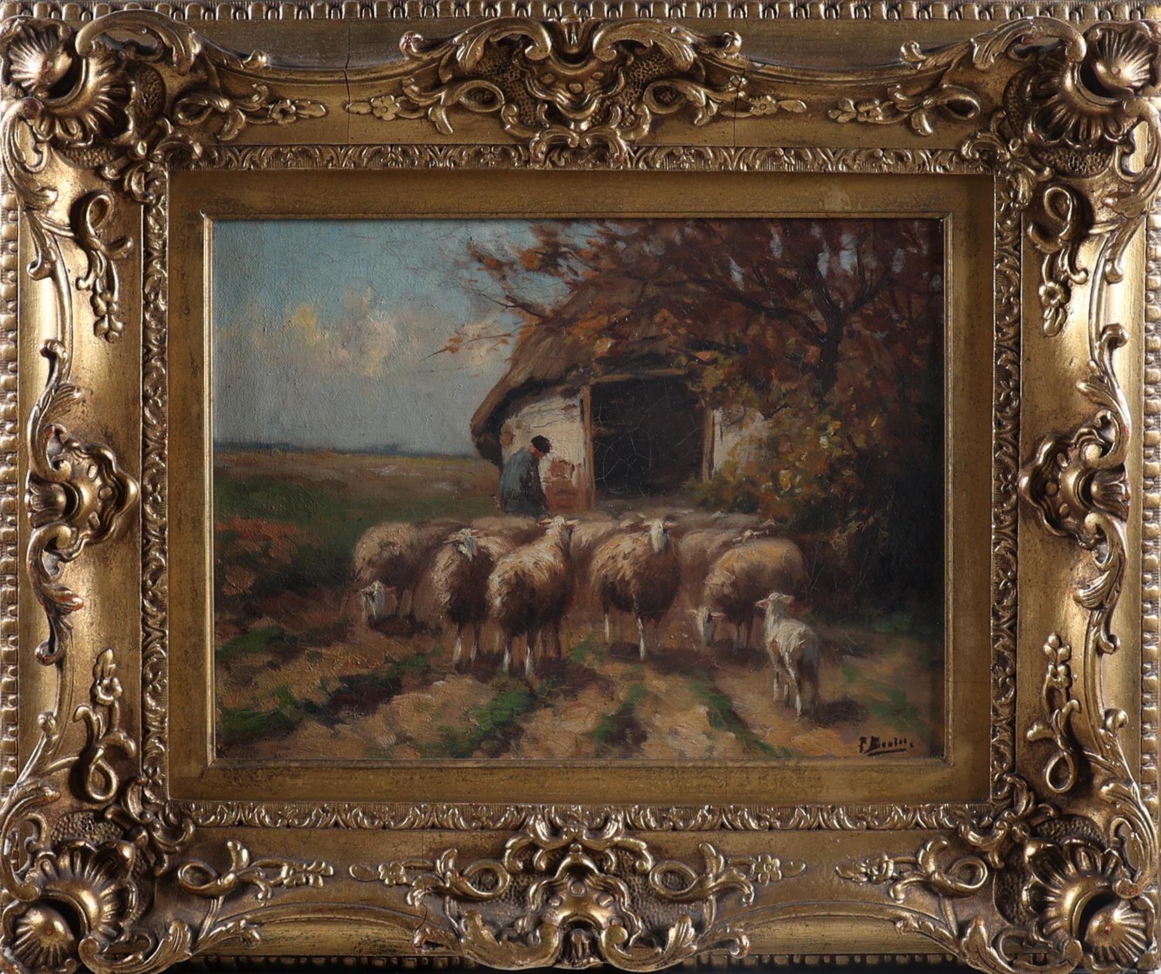Piet Bouter (1887-1968), Boer met schapen, olieverf op doek, 30 x 40 cm.