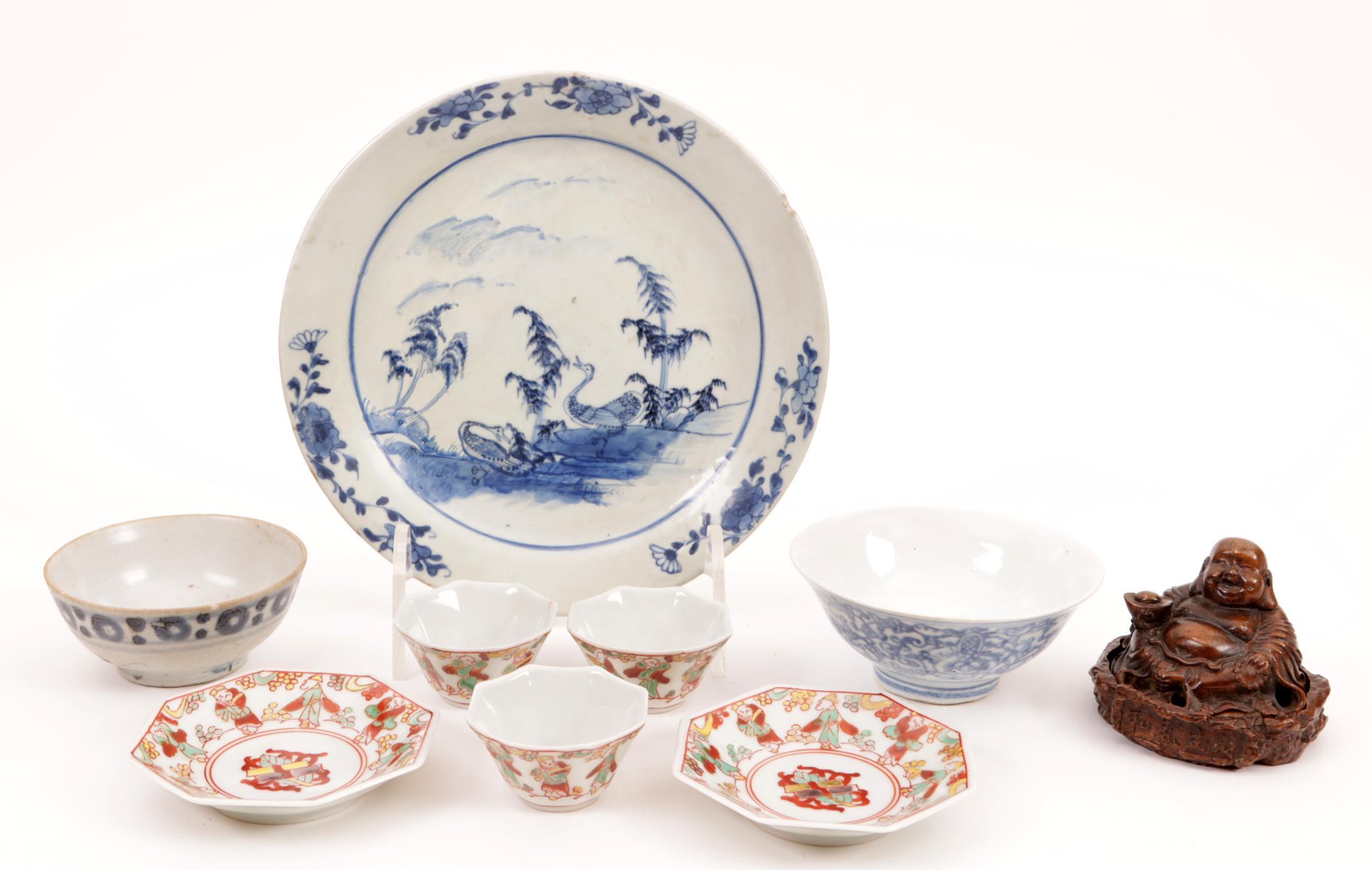Koopje divers Chinees porselein en een koperen Boeddha beeld