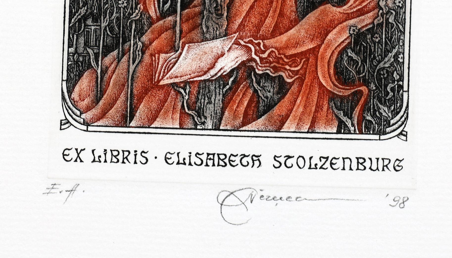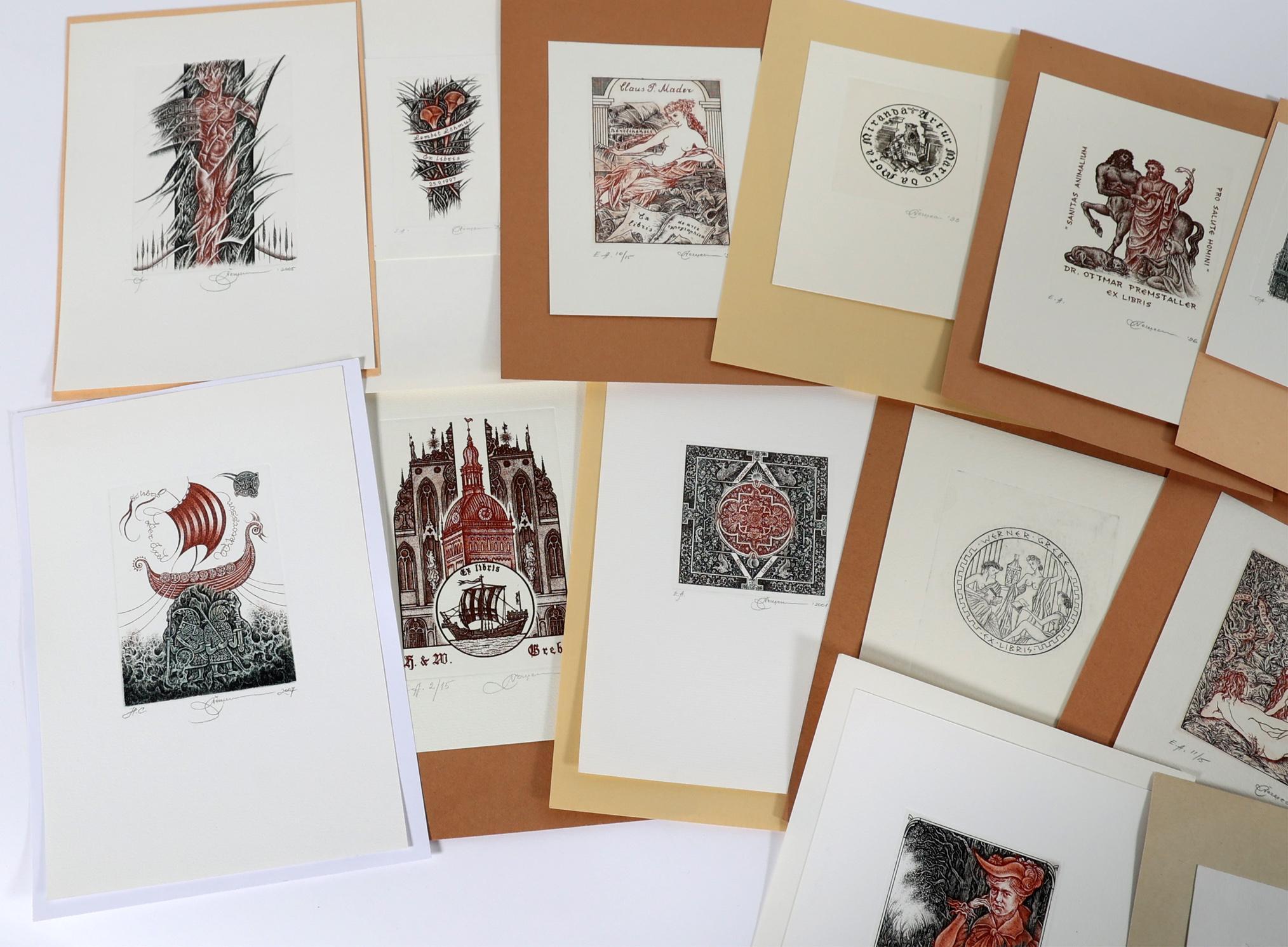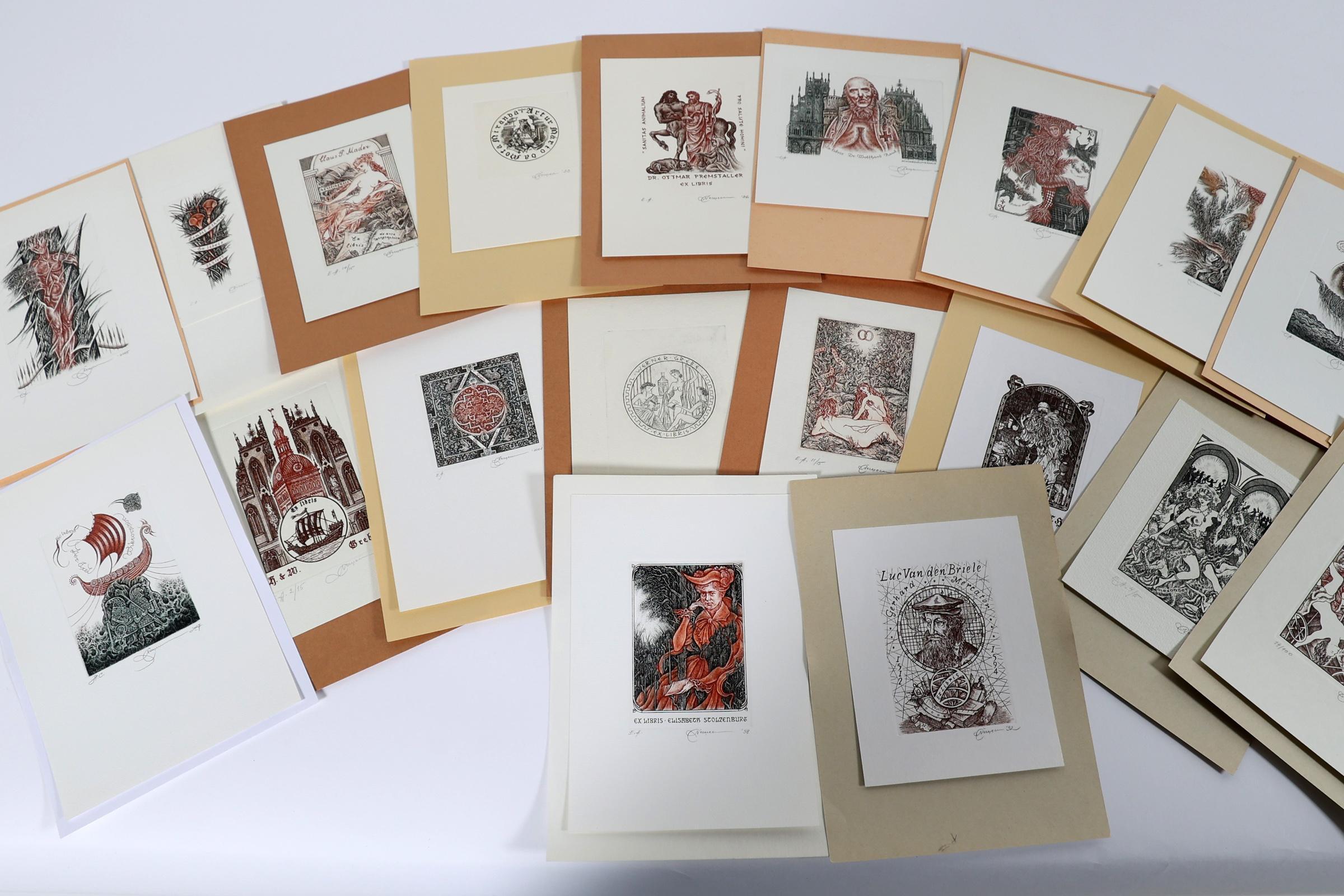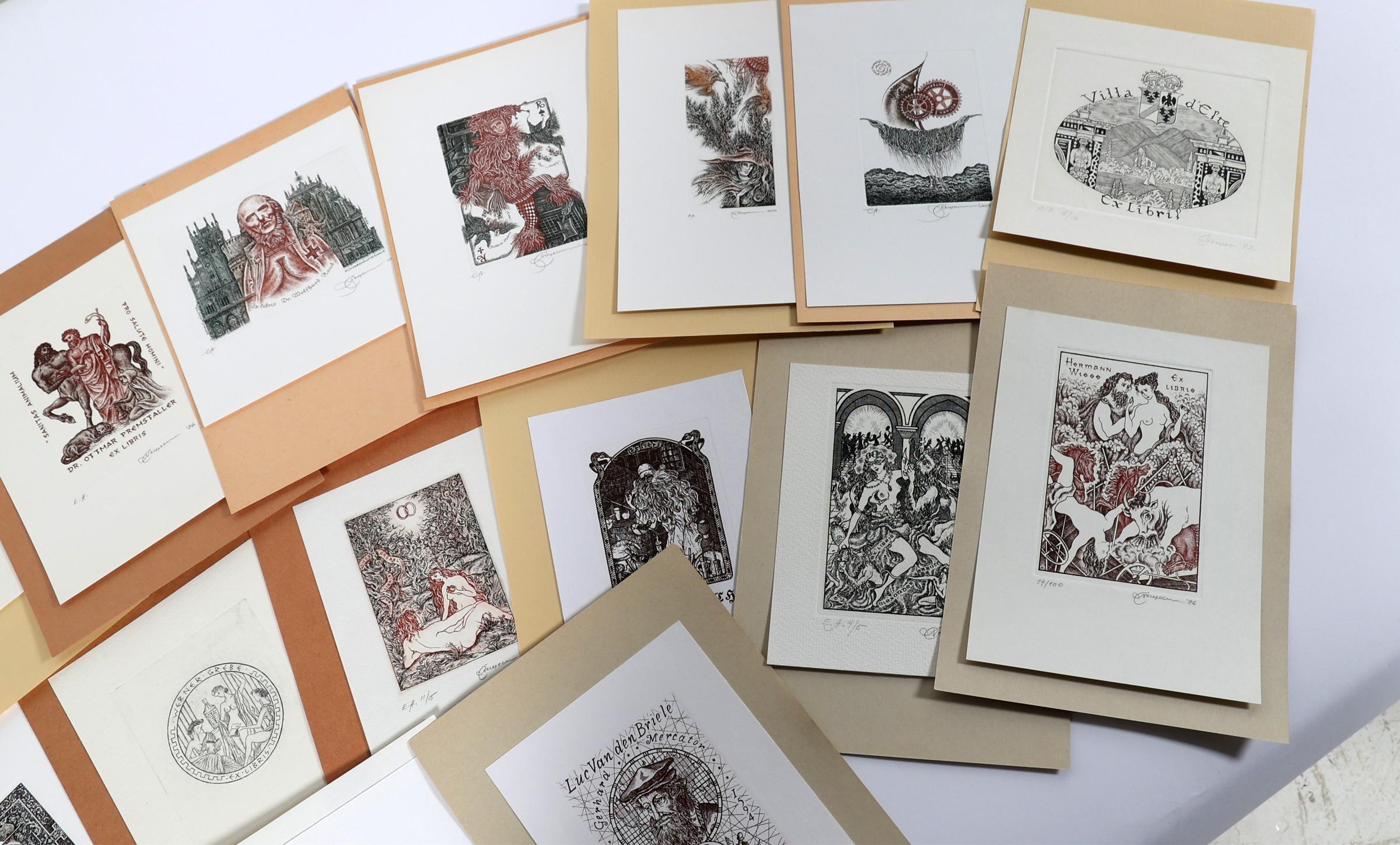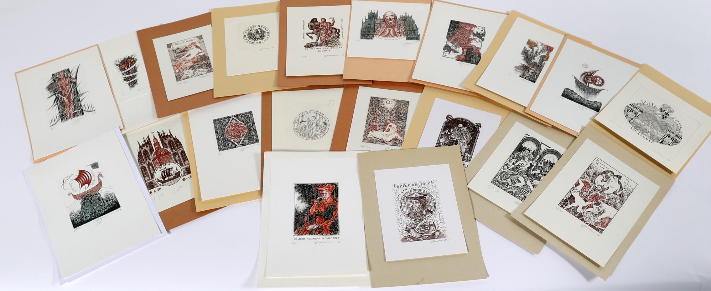 Chernetsova, N., plm. 20 exlibris, diepdrukken, alle gesigneerd. Opgeplakt.